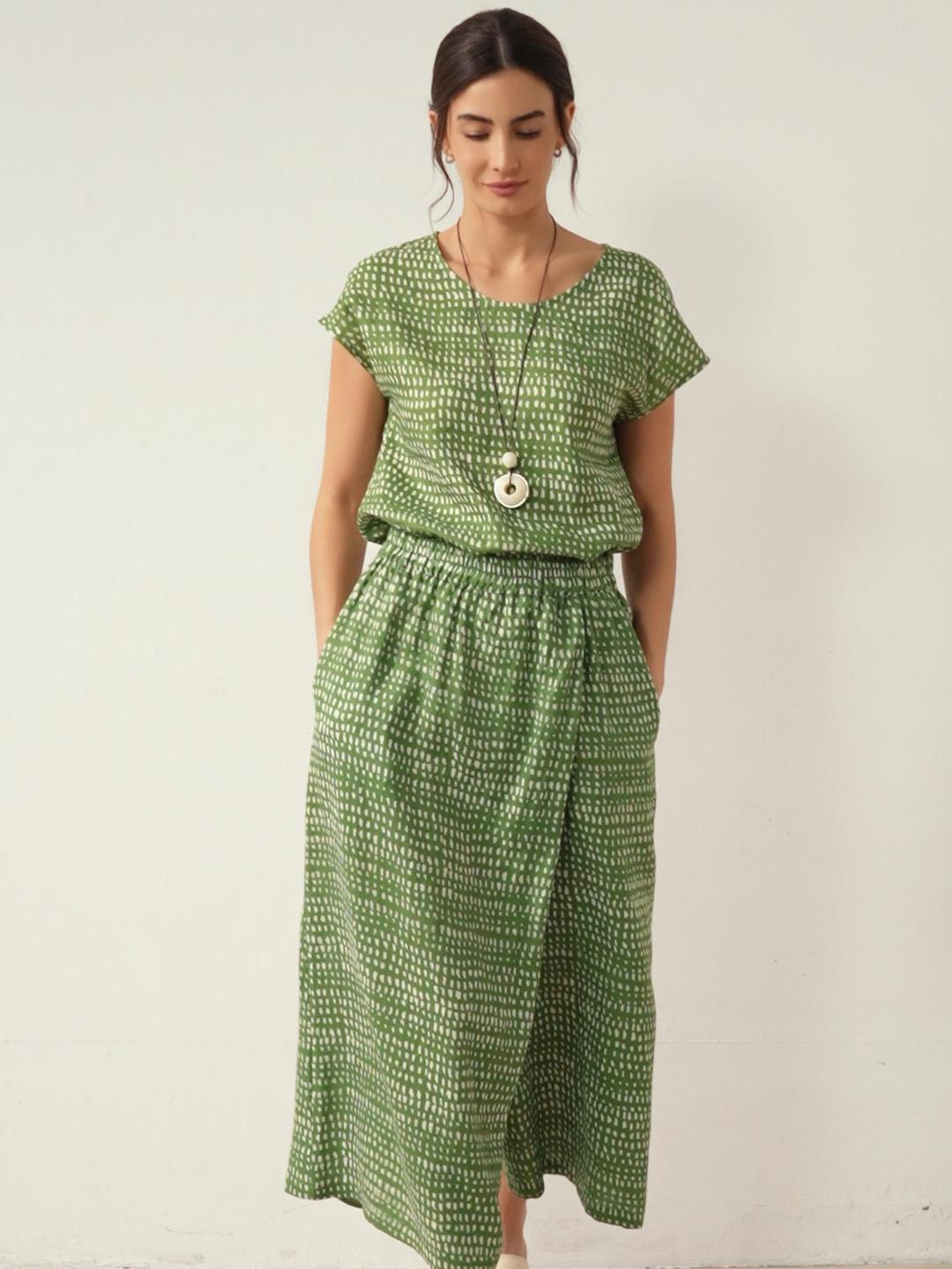 100% Linen Dot Skirt-Pants with Elastic Waist LUMI