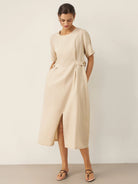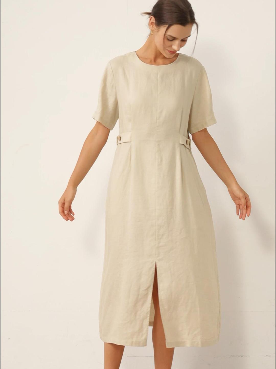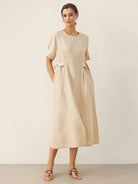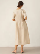 100% Linen Round Neck Button-Tie Maxi Dress XANDRA