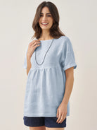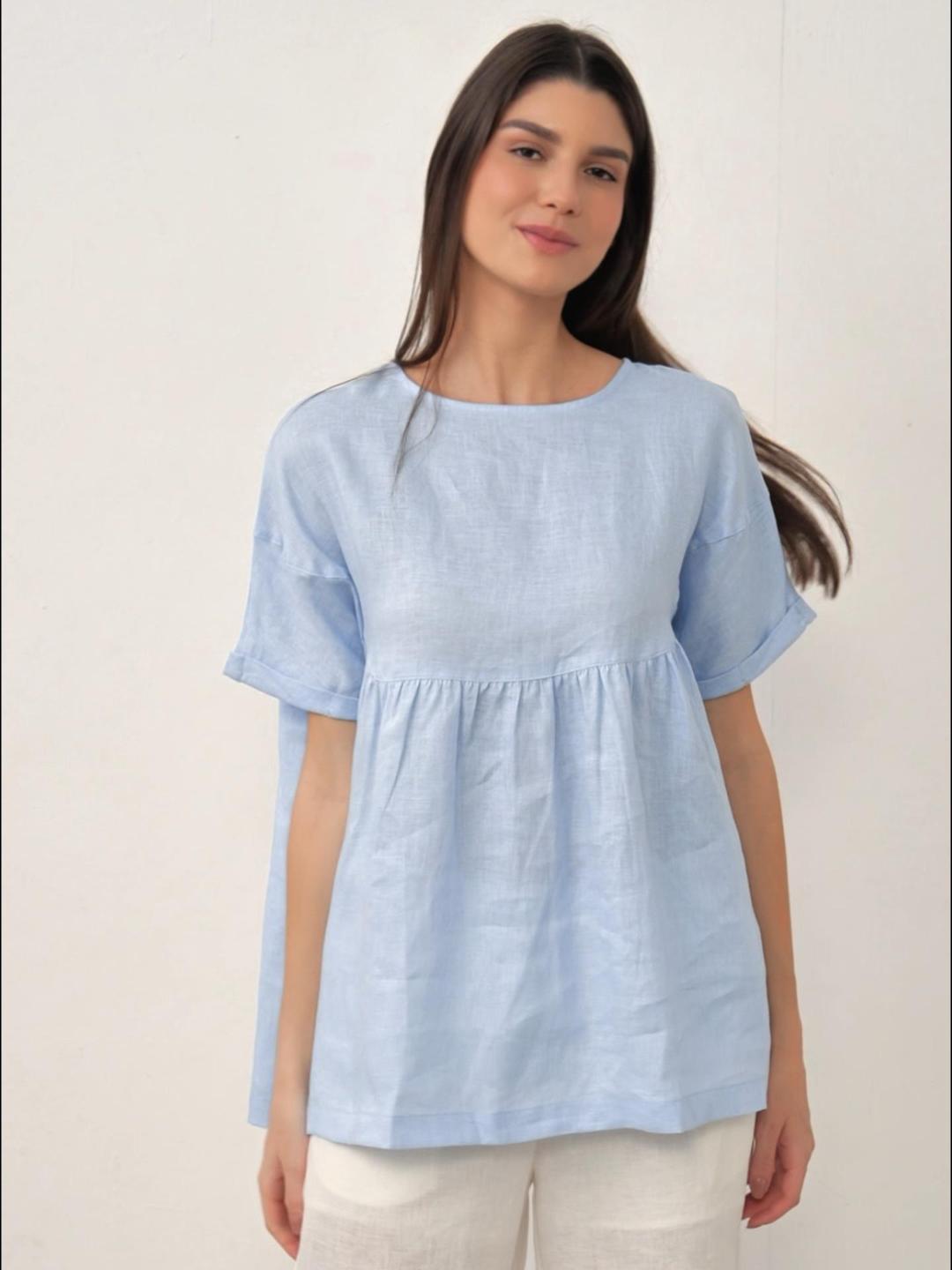 100% Linen Round Neck Pleated Pullover Top QUINLAN