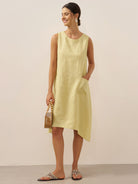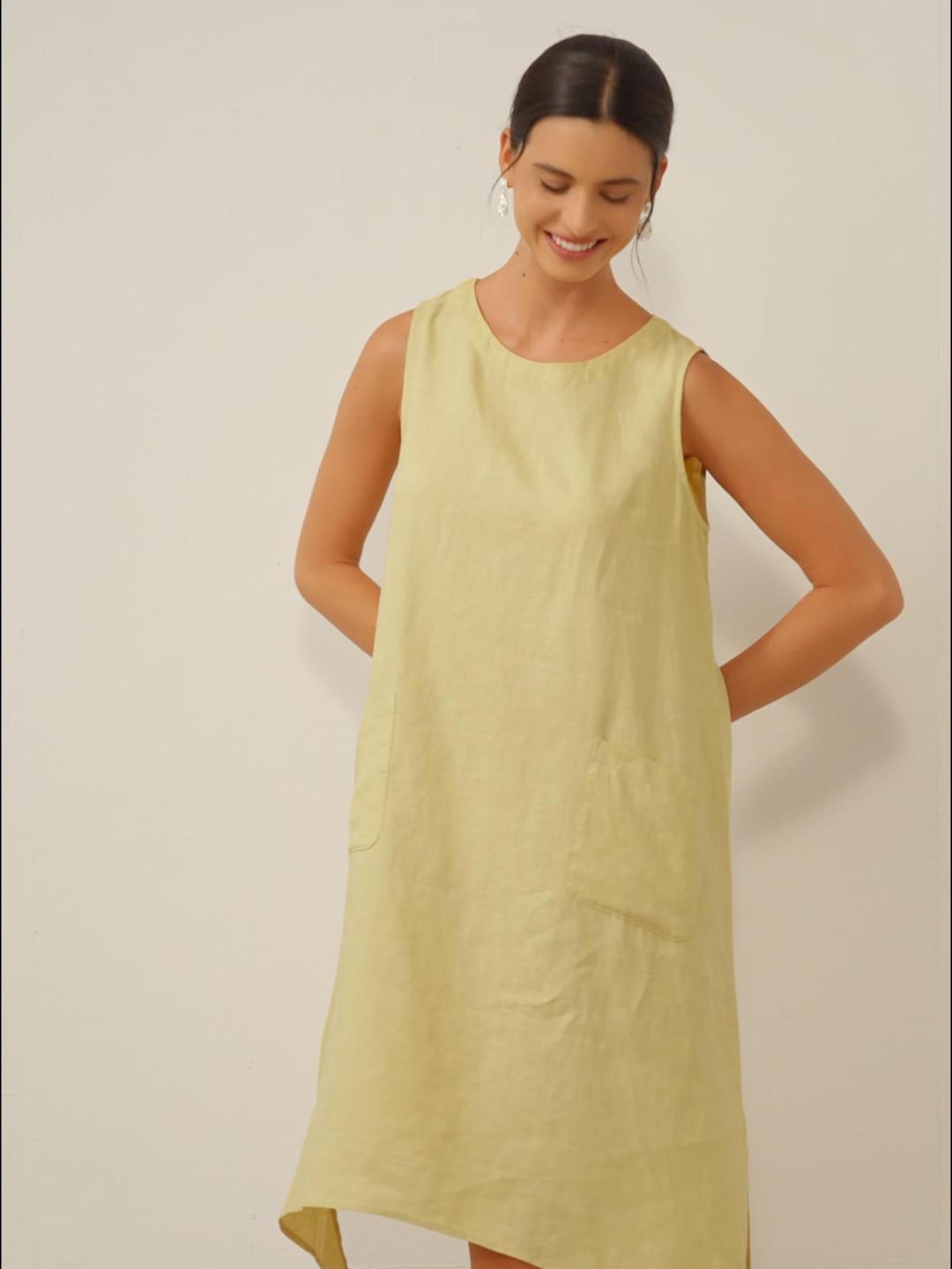 100% Linen Sleeveless Pocket A-Line Mini Dress LUZ