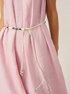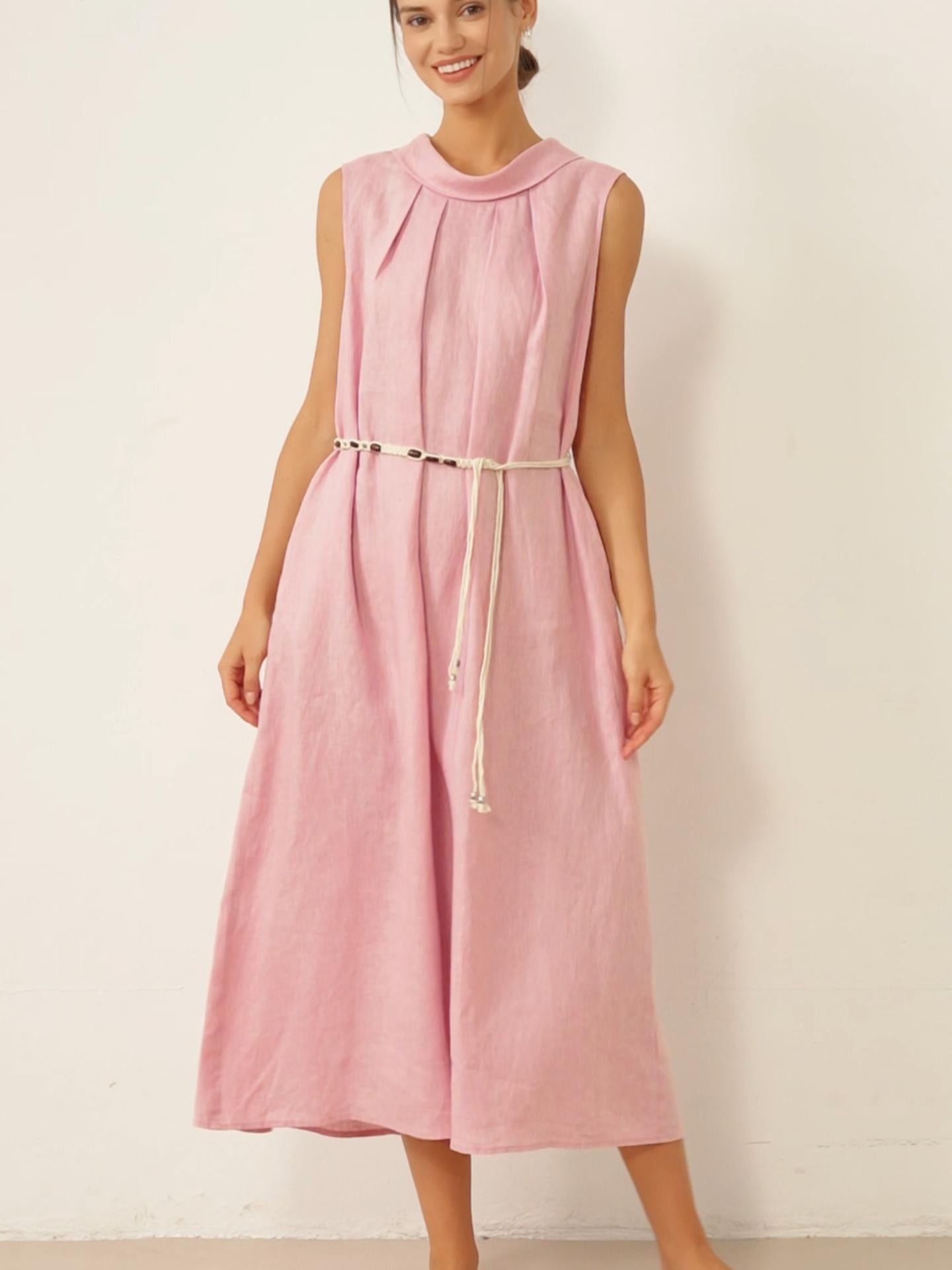 100% Linen Structured Collar Sleeveless Maxi Dress with Belt OPAL