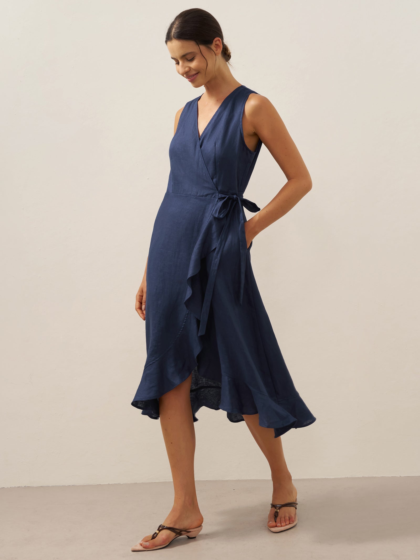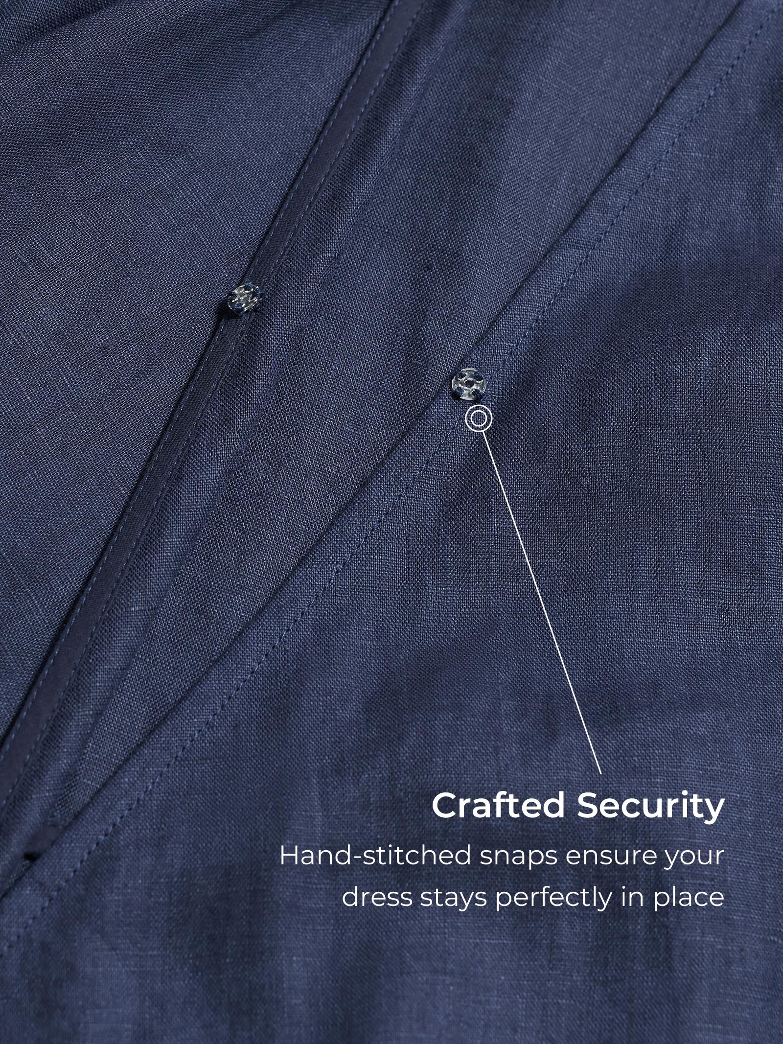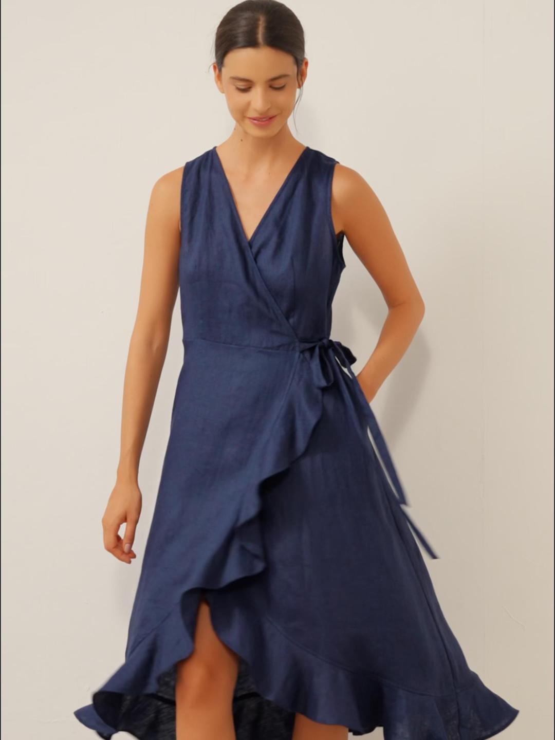 Romantic elegance meets thoughtful design in this flowing linen dress.