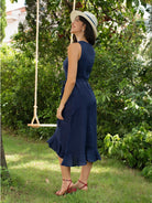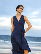 100% Linen V-Neck One-Piece Ruffle Hem Maxi Dress MAYA