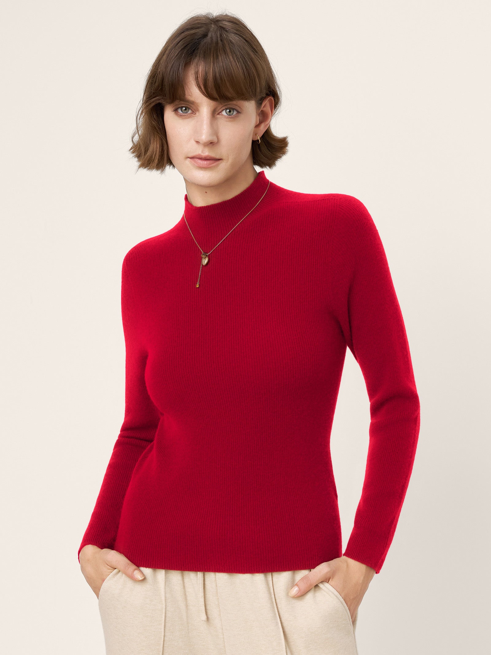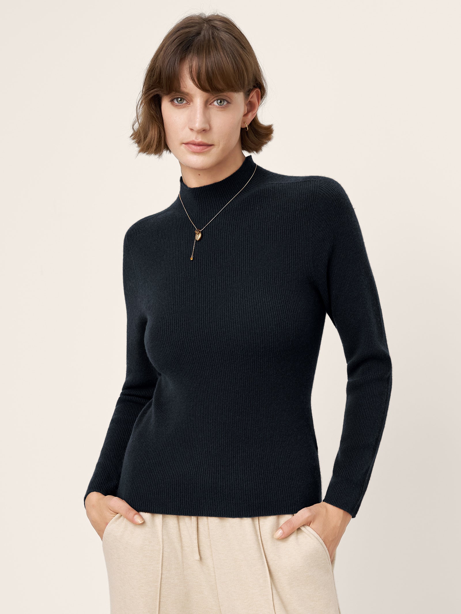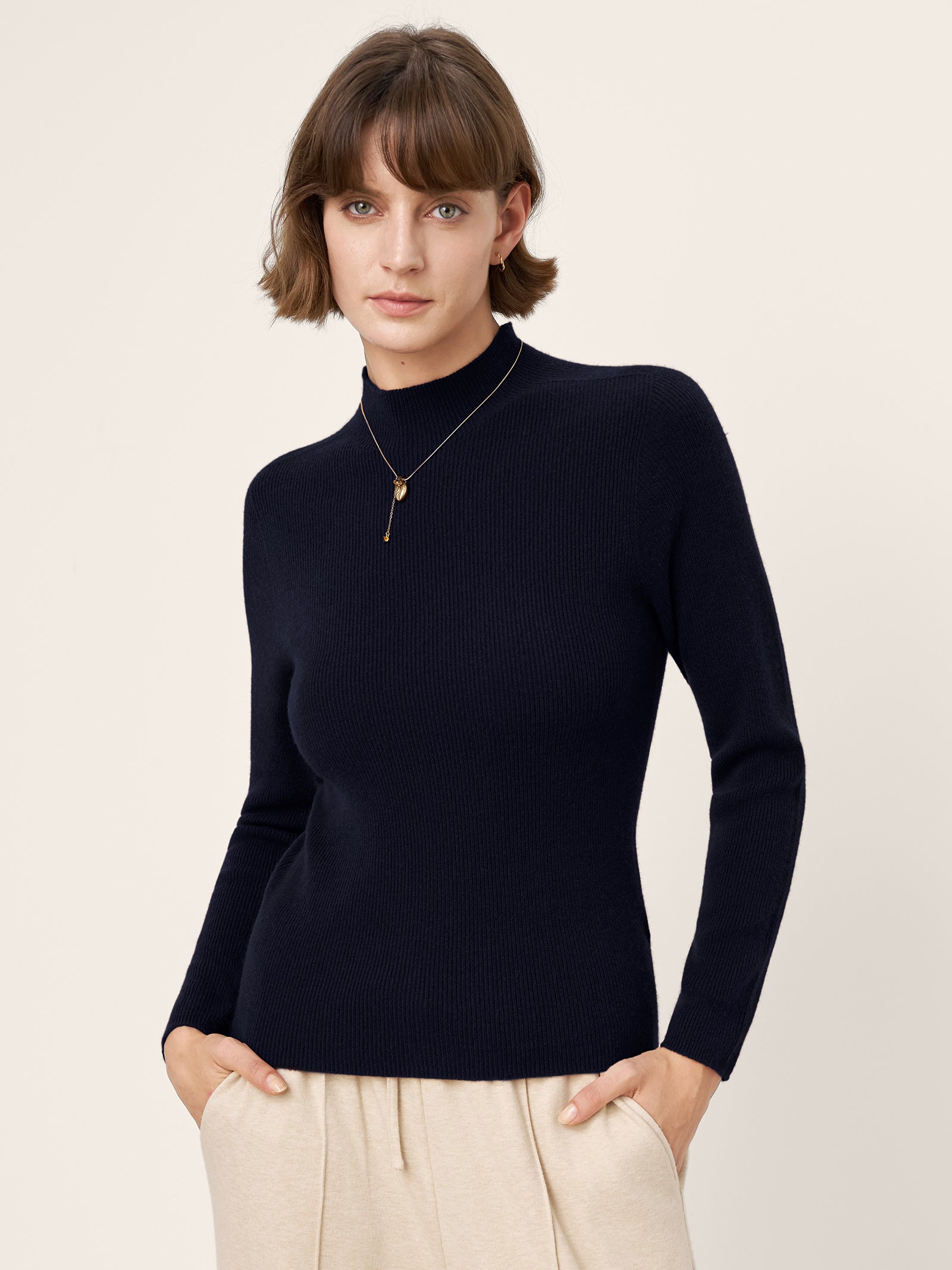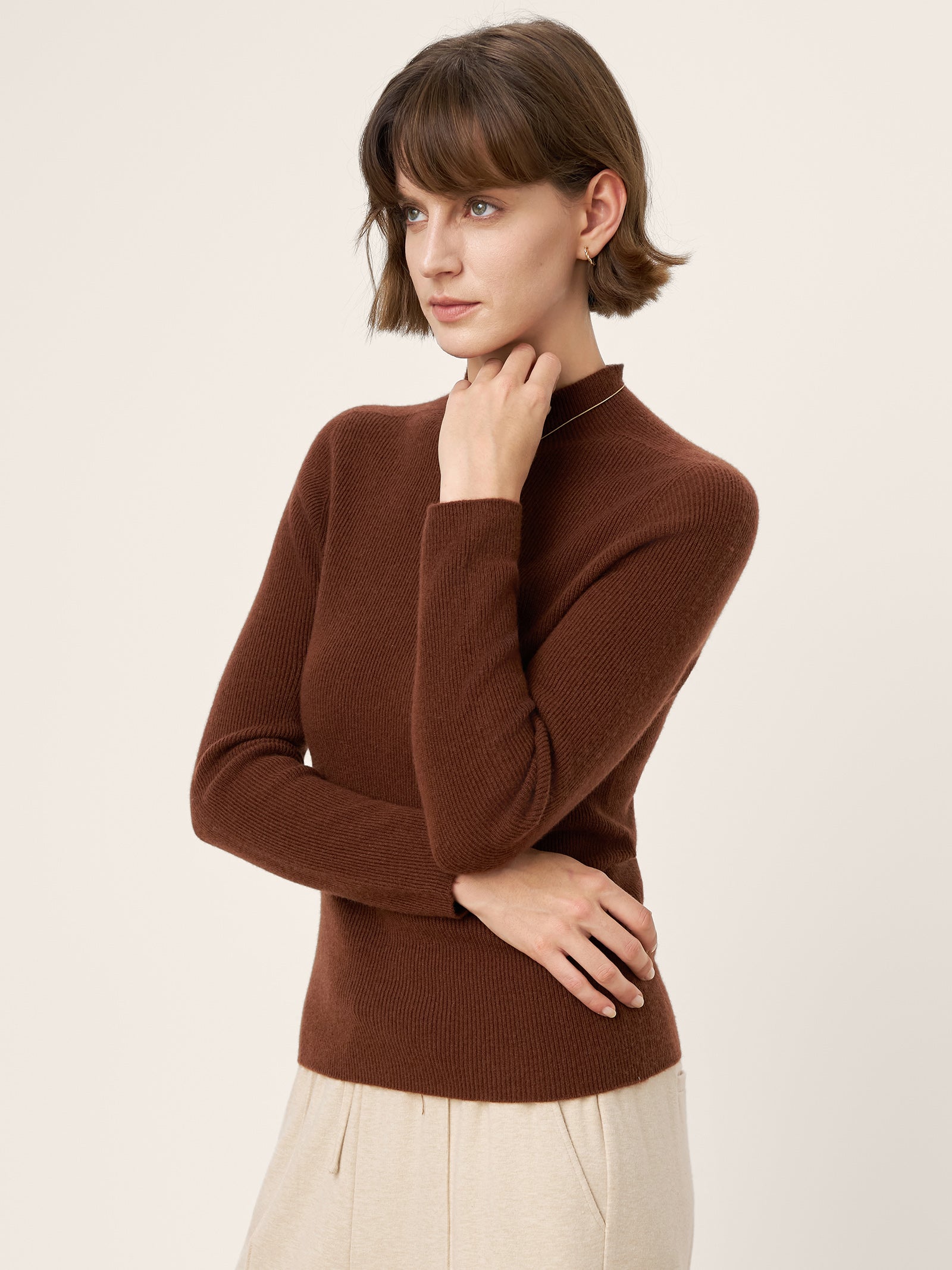 100% Mongolian Cashmere Seamless Tailored Mock Sweater RAYA