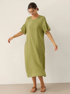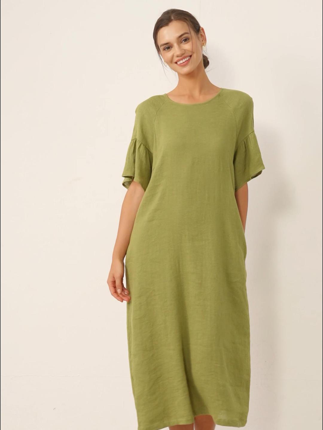 Linen Round Neck Flutter Sleeve Maxi Dress WINNIE