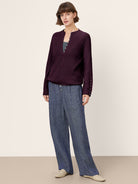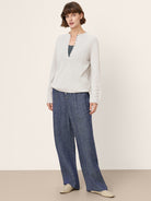 Mongolian Cashmere and Mulberry Silk Henley Knit Top PEARL