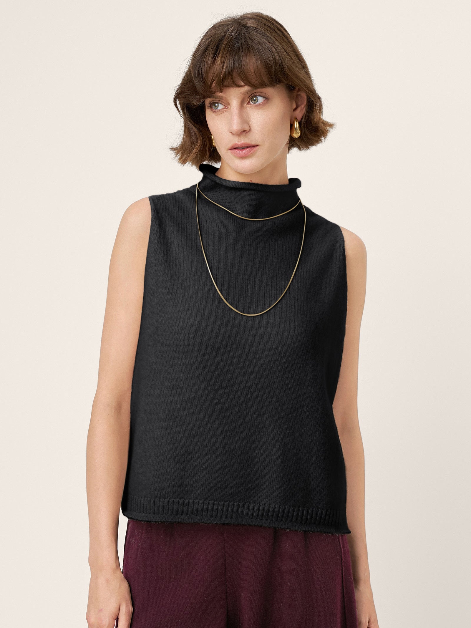 100% Mongolian Cashmere Hand-Finished Rolled Edge Sleeveless Turtleneck Knit Top DAISY