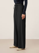 Wool Lyocell Sculpted Pin-Tuck Drawstring Straight Trousers TAMSIN
