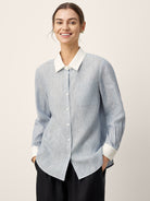 100% Linen Striped Patchwork Pleat Shirt THEA