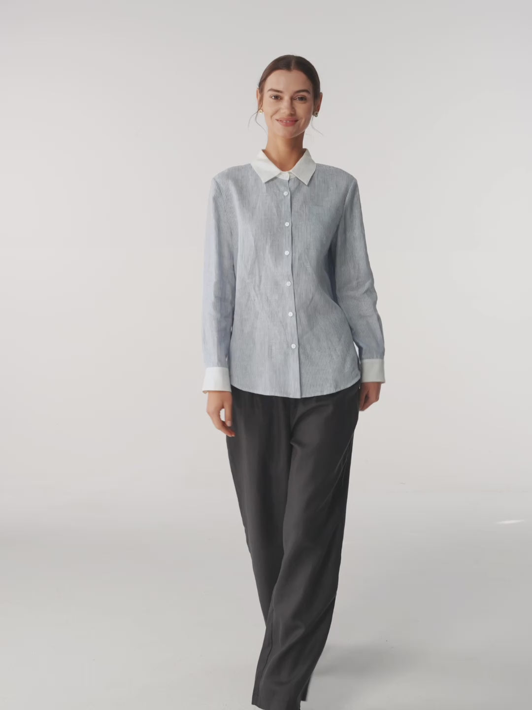 - Natural Shell Button Closure: Eco-friendly pearlescent fasteners mirror collar accents, uniting function with understated luxury.