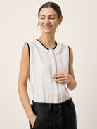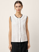 Linen-Lyocell Contrast Trim Pleated Sleeveless Top JUNIPER