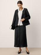 - Hidden Button Placket: Seamless front closure maintains minimalist sophistication while ensuring smooth layering.