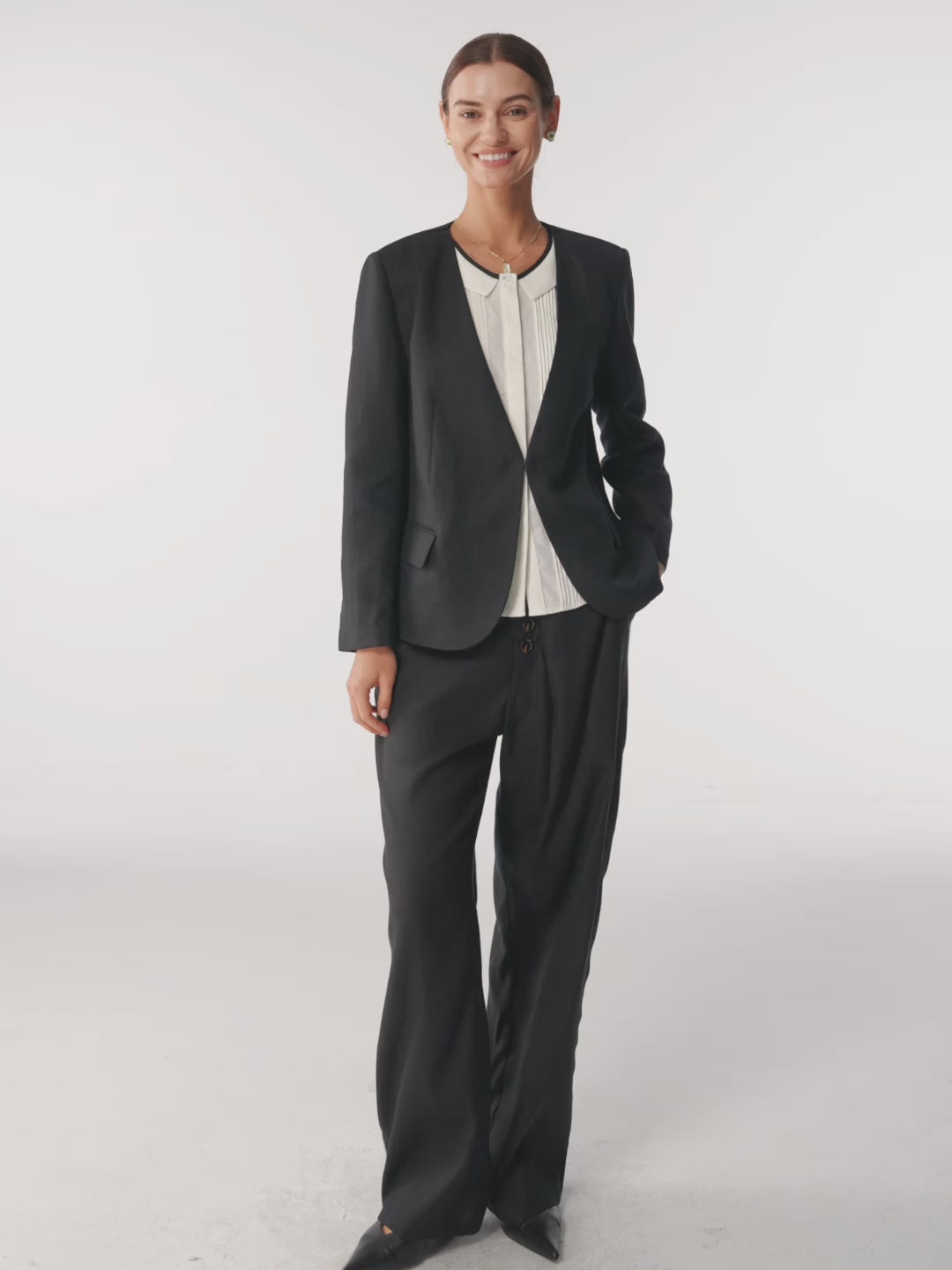 Linen-Lyocell Relaxed V-neck Tailored Blazer VERITY