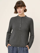 Mongolian Cashmere and Mulberry Silk Henley Knit Top PEARL