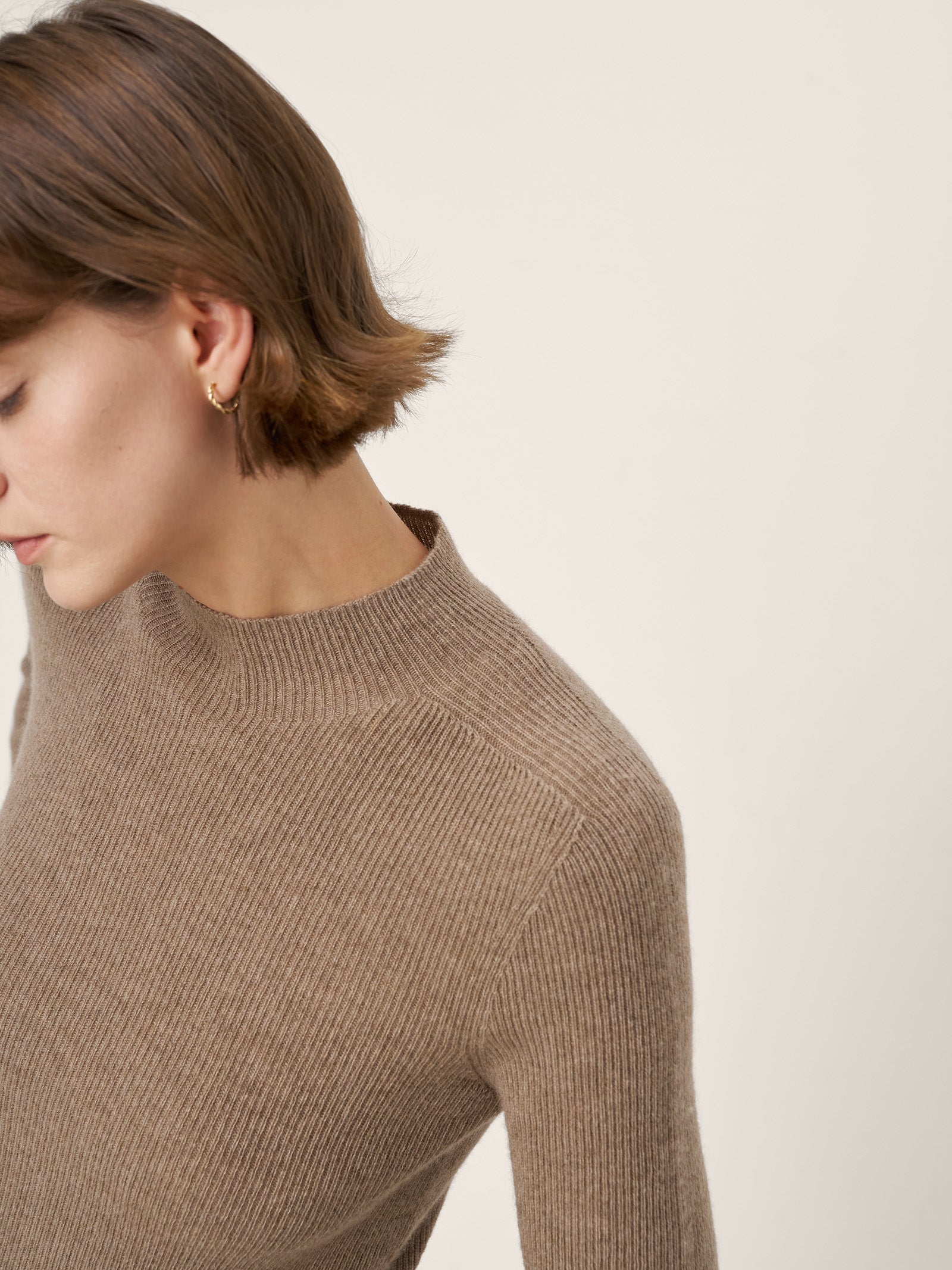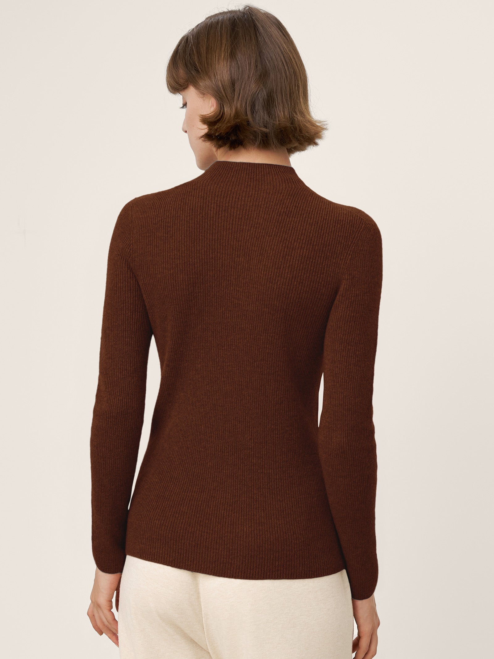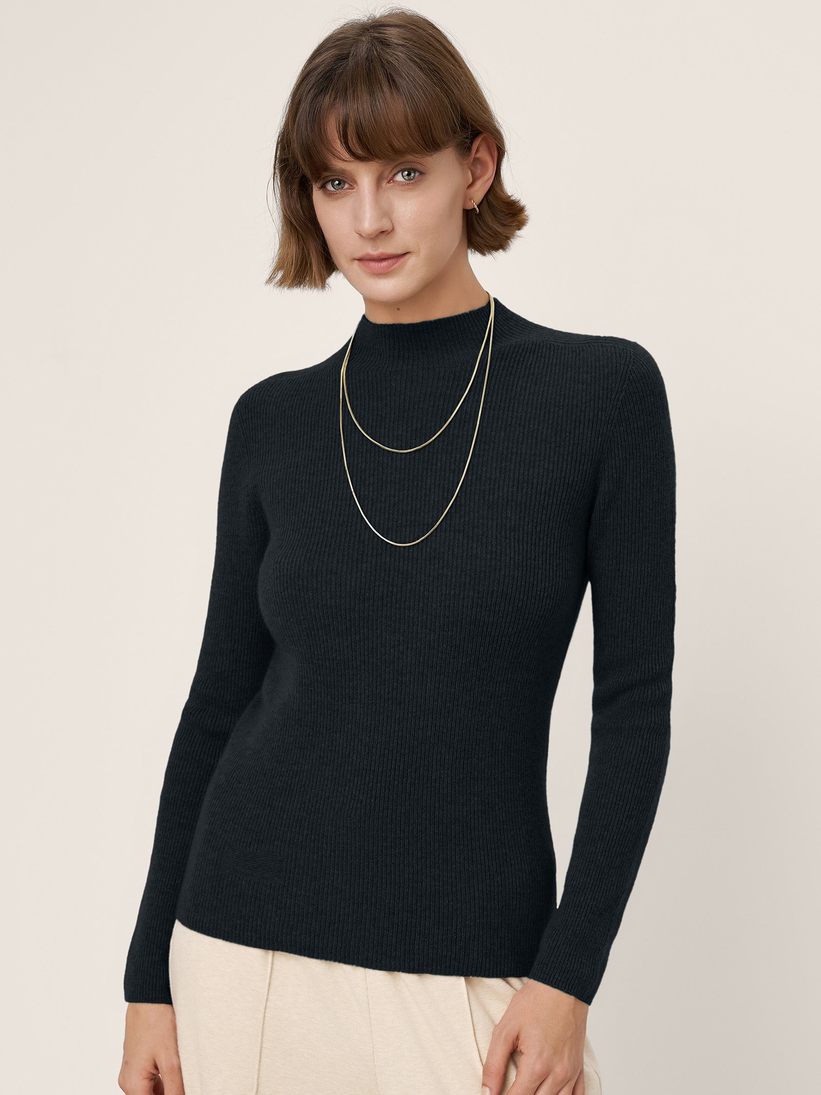 Premium Cashmere Blend Hand-Finished Seamless Fitted Mock Neck Sweater ZINA