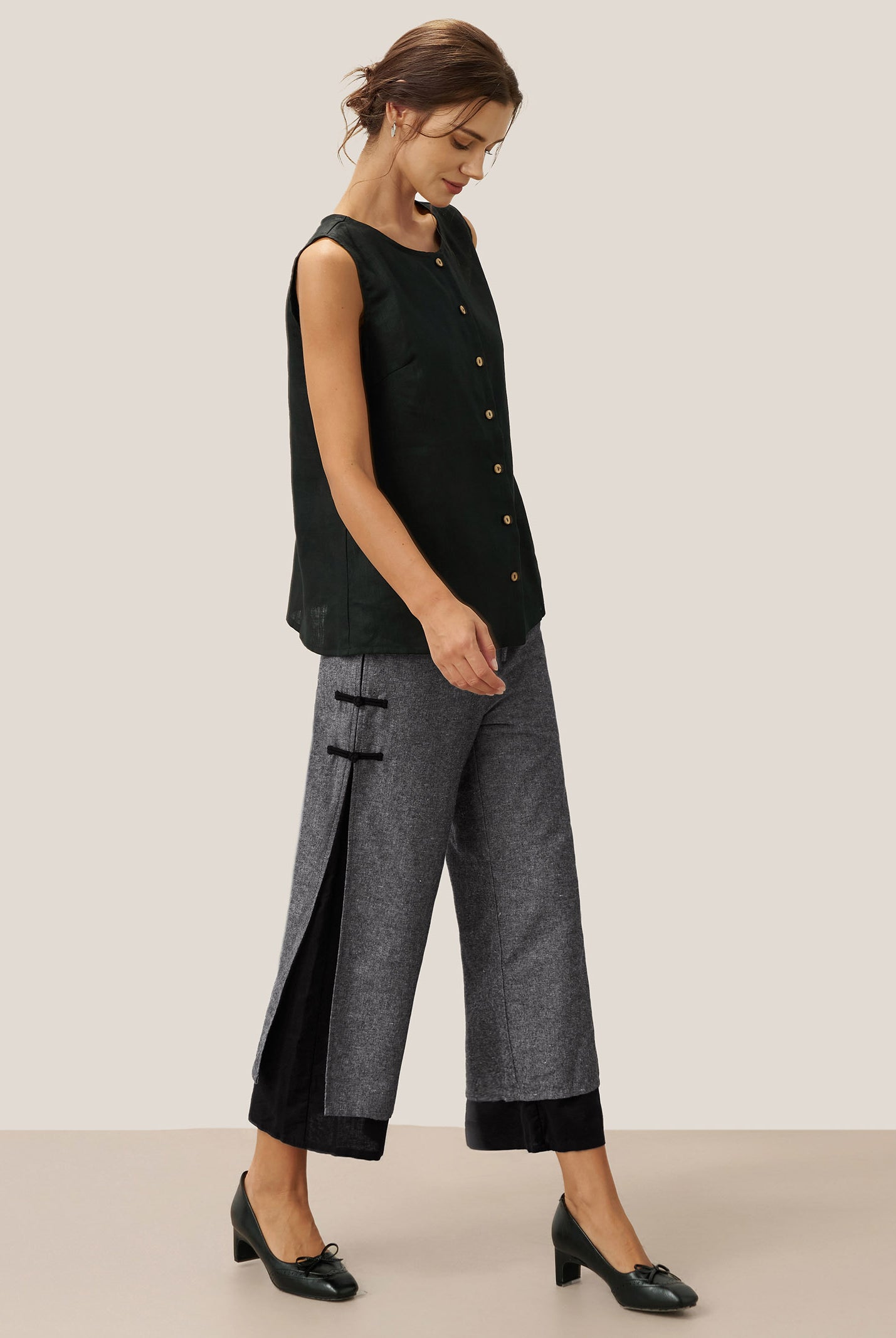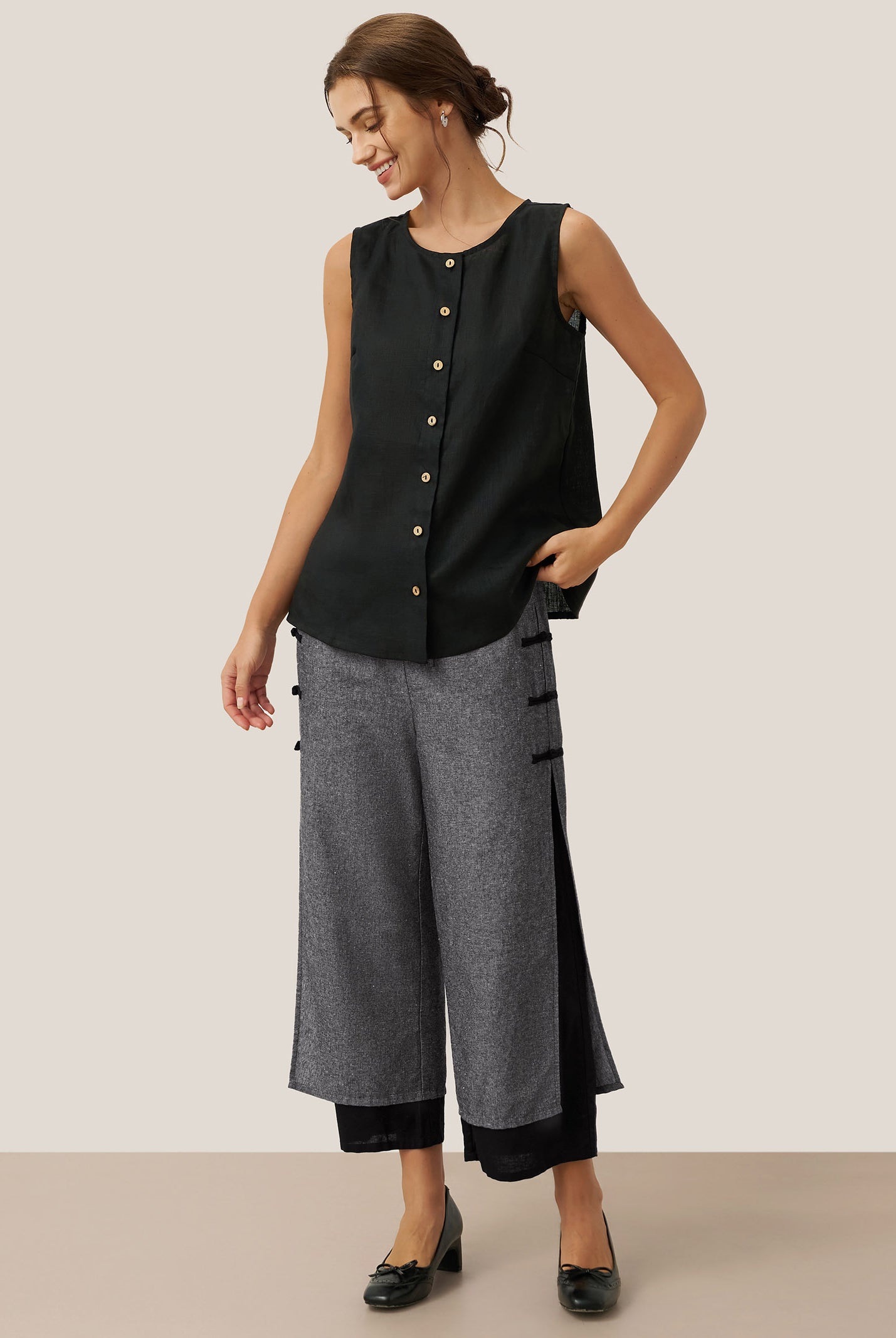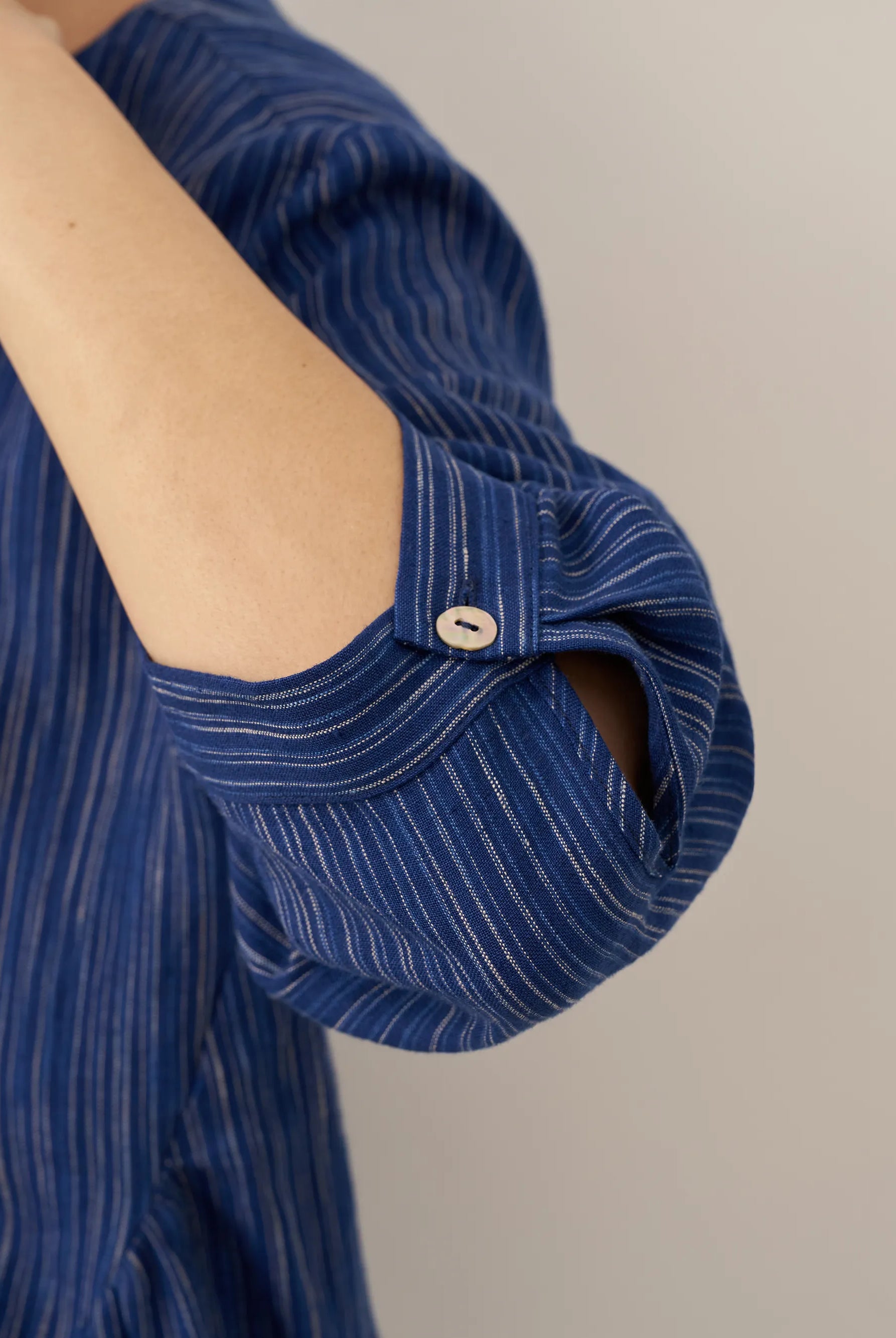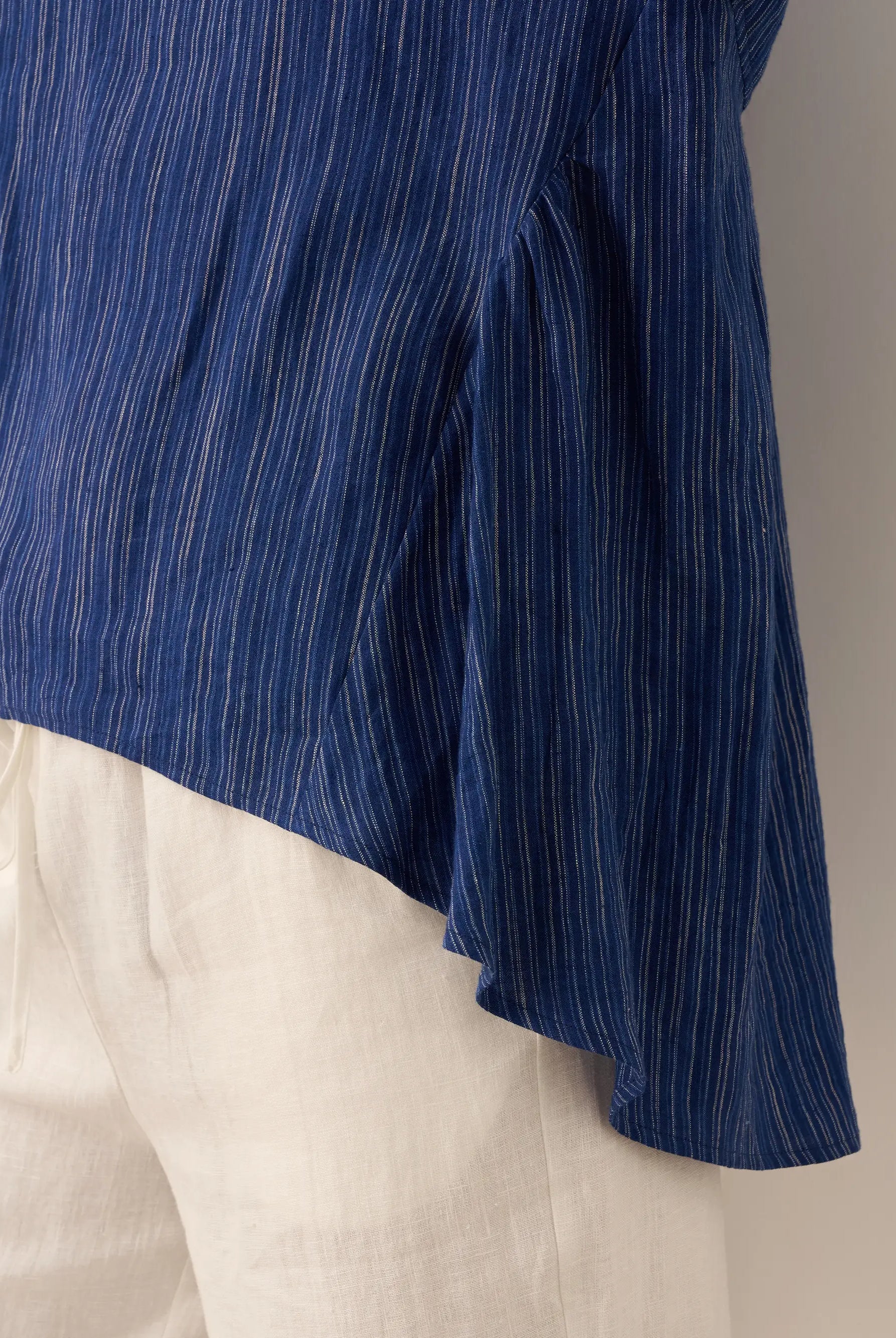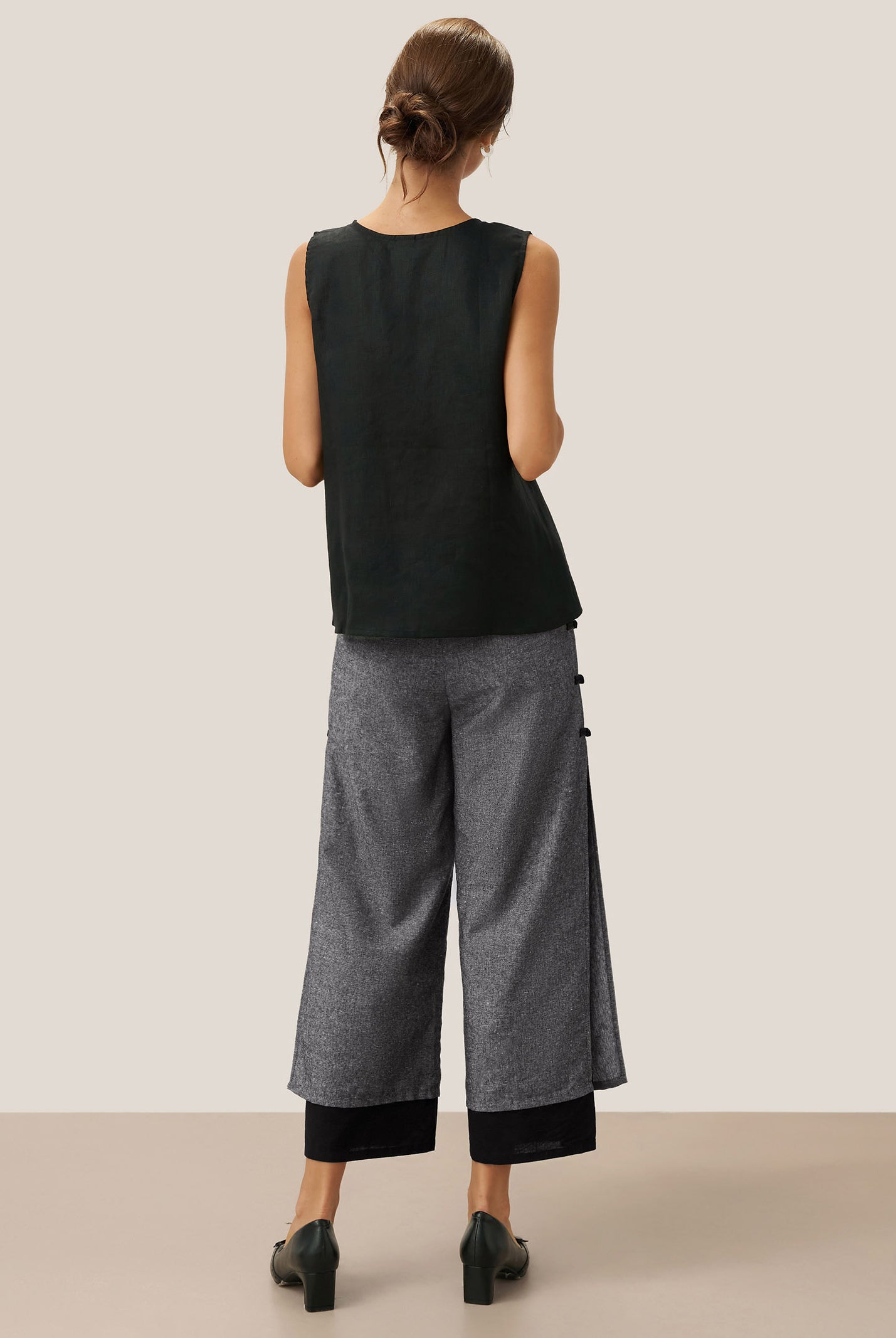 Linen Gingham Checked Round Soft-Fold Collar Top LAURA