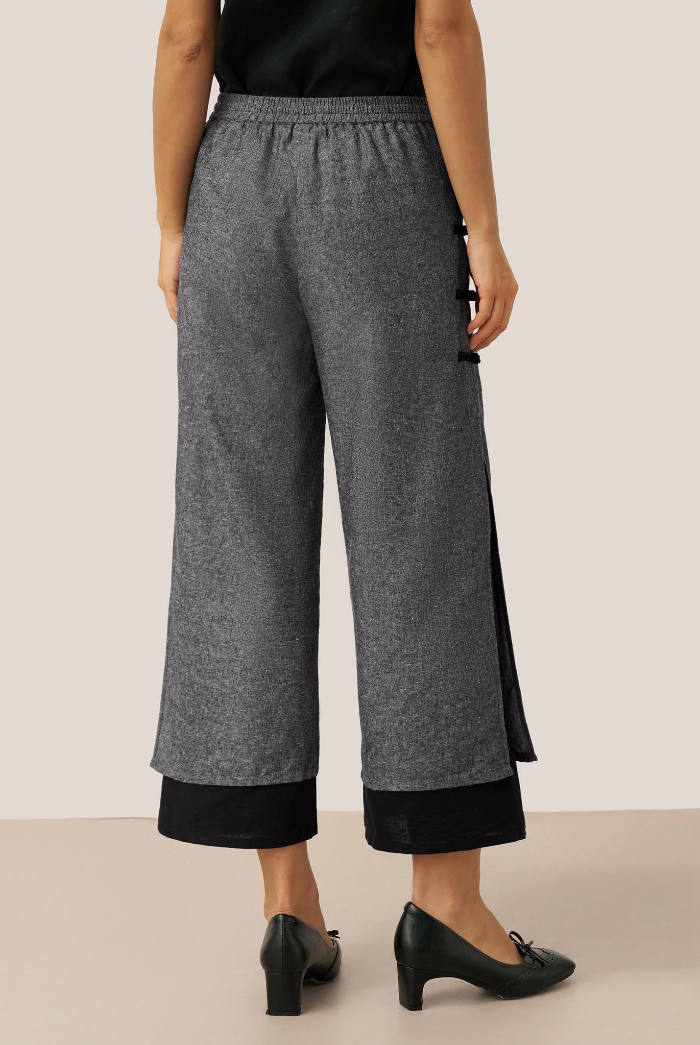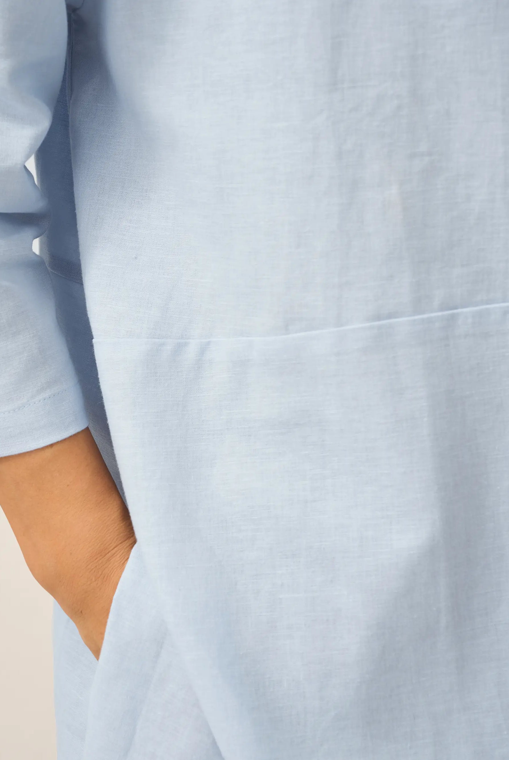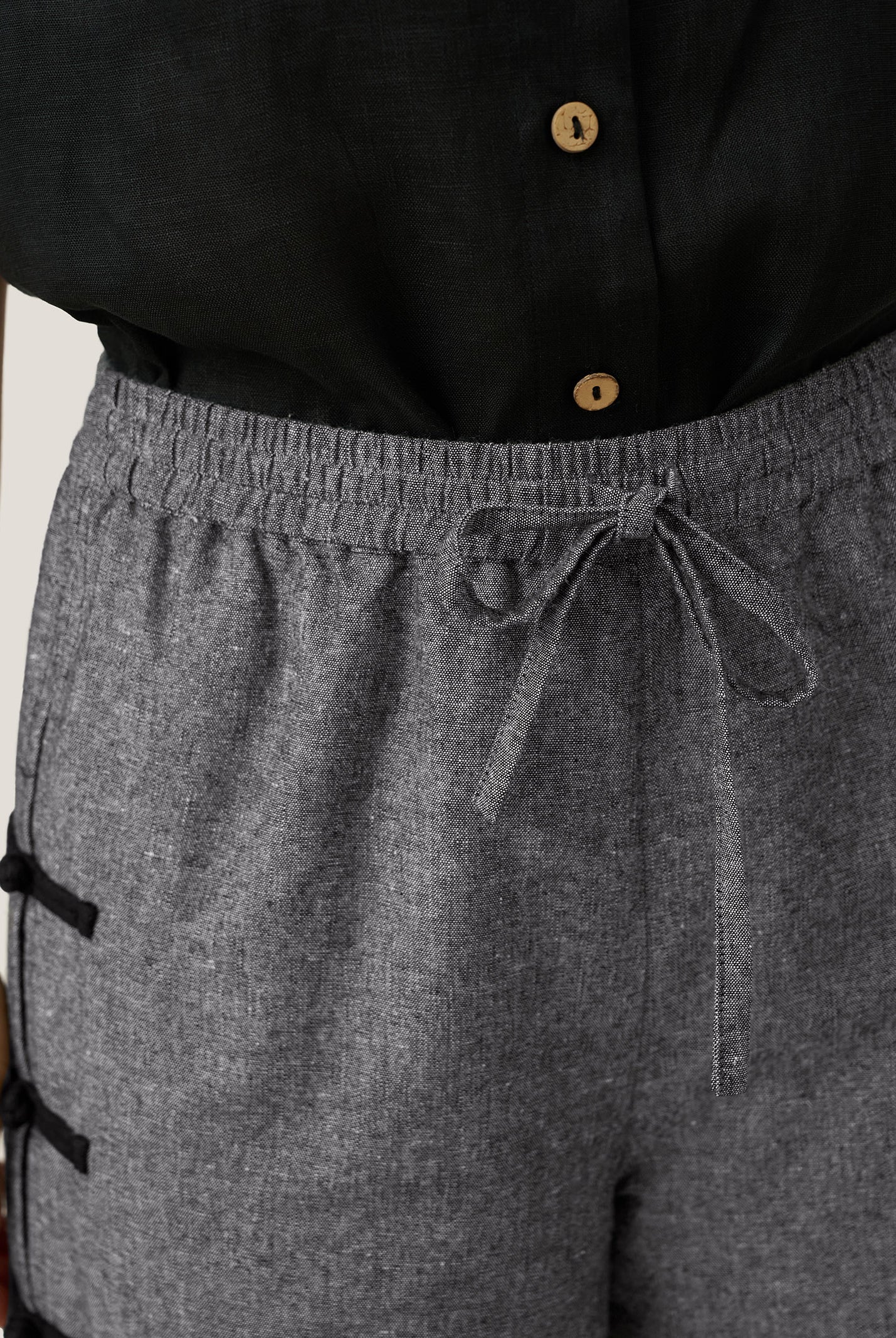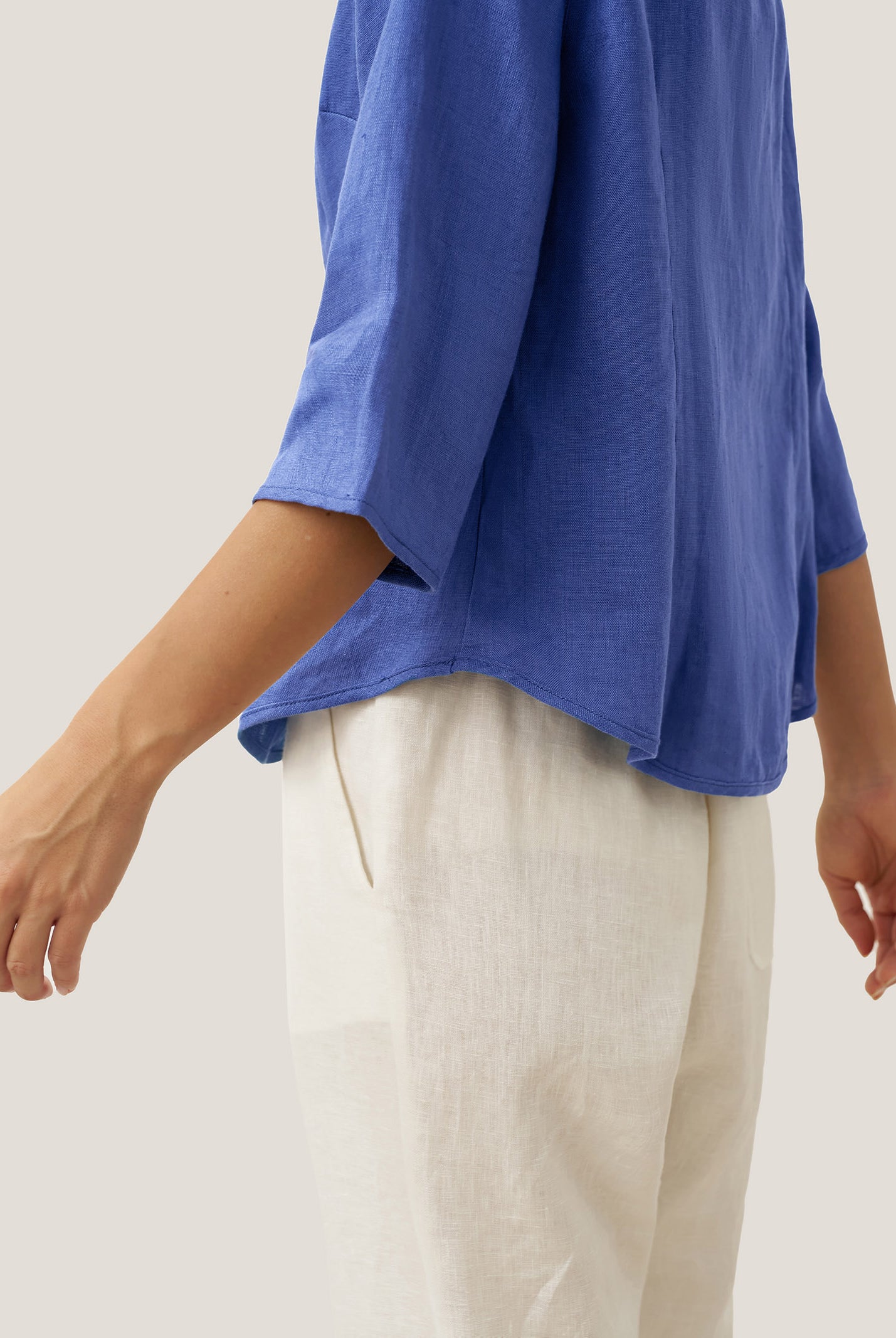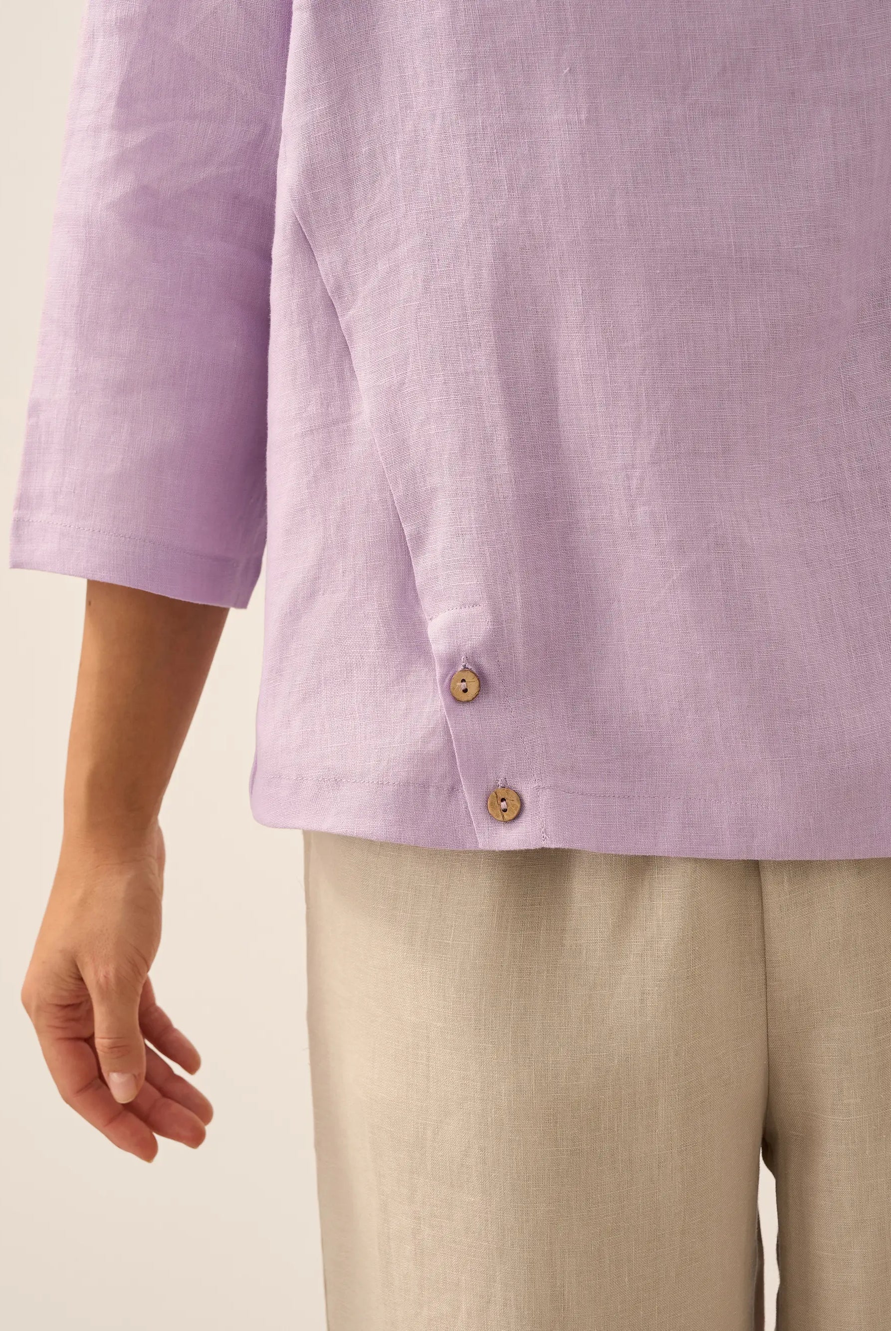 Linen Gingham Checked Round Soft-Fold Collar Top LAURA