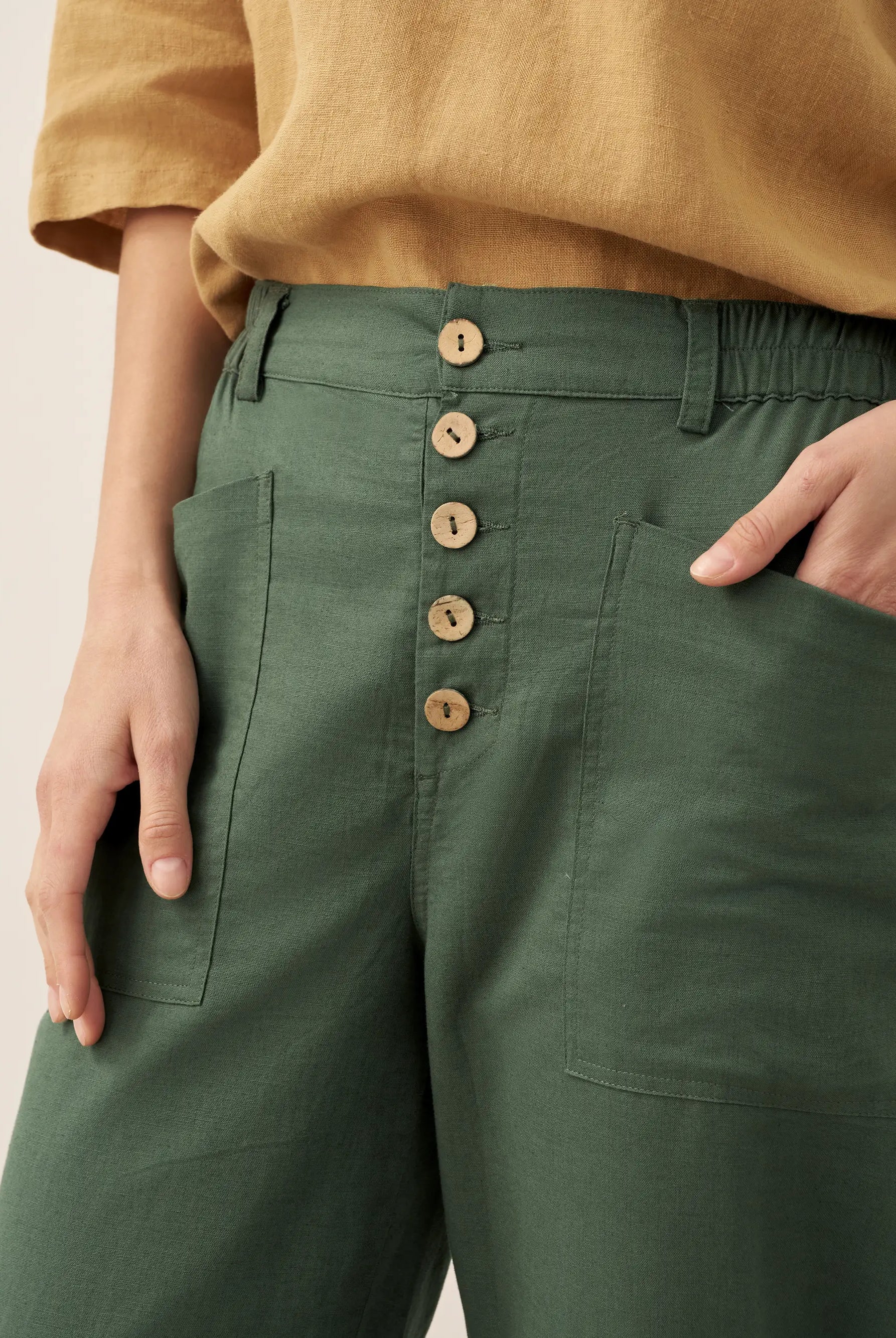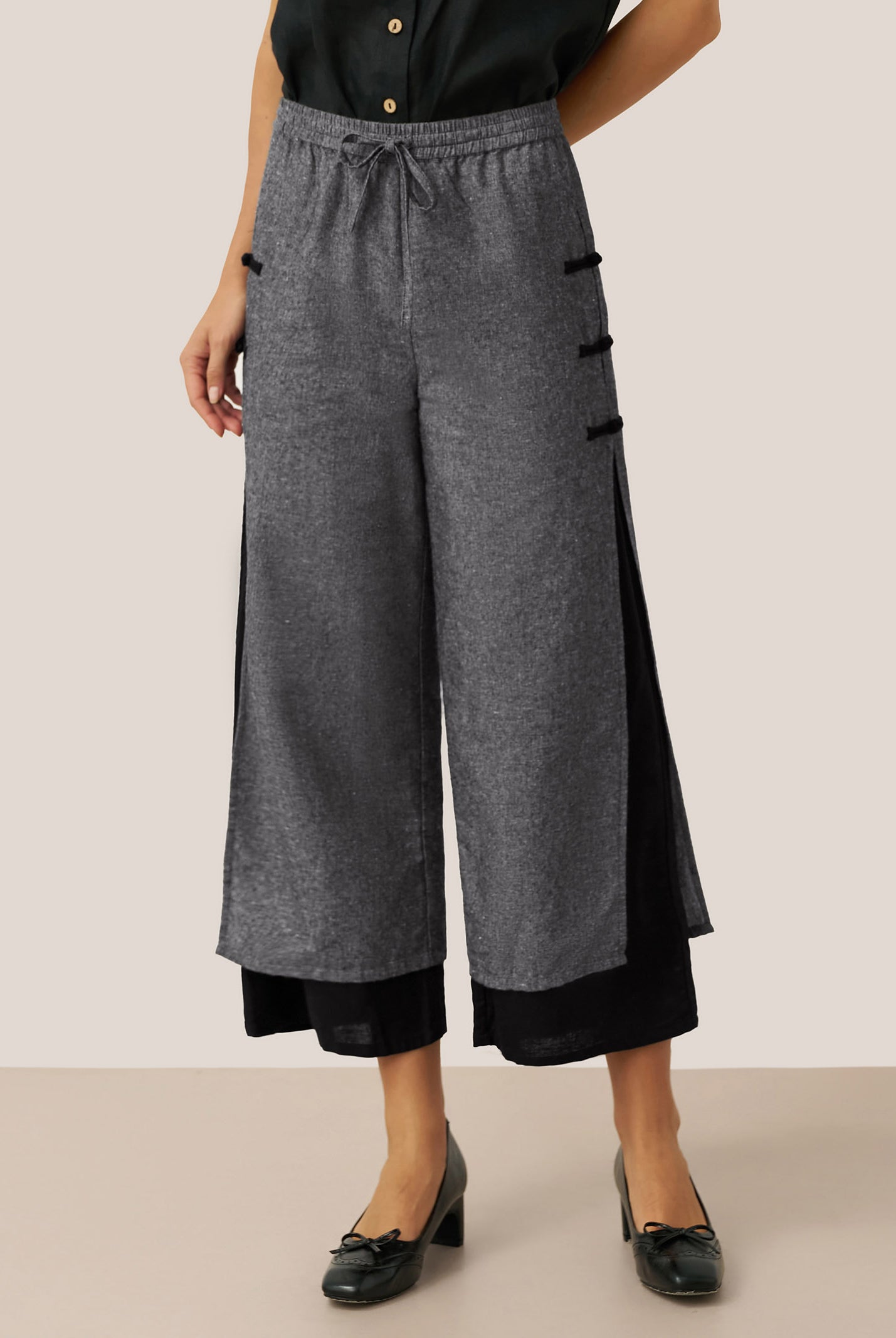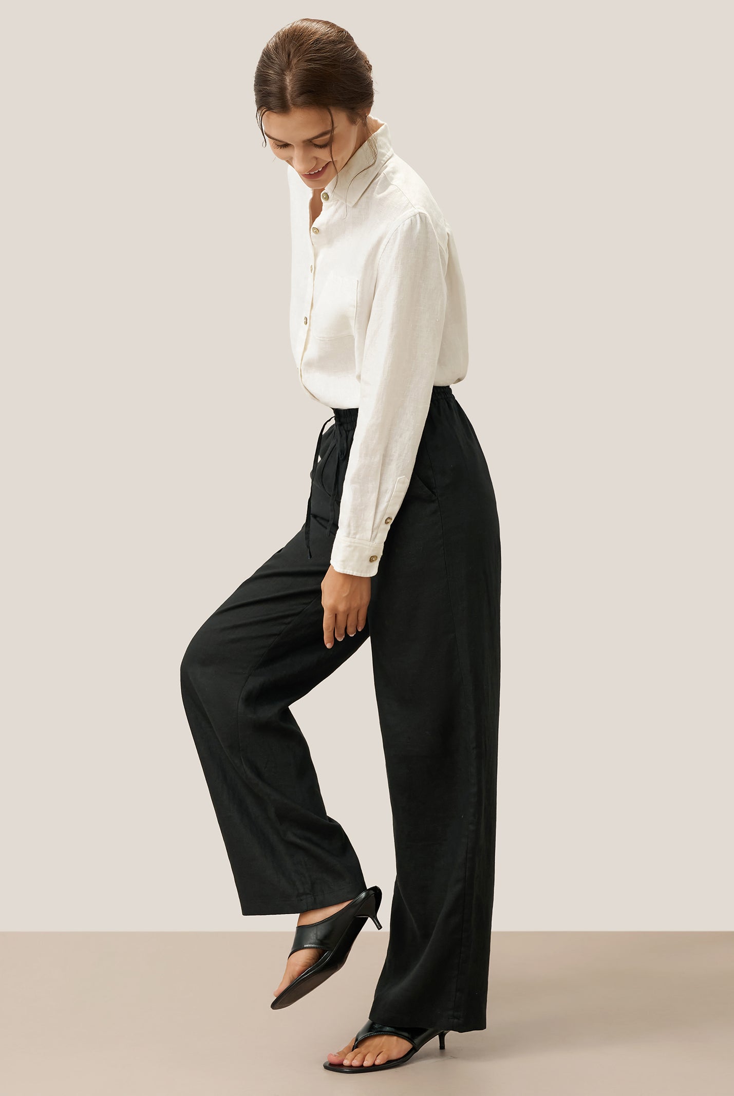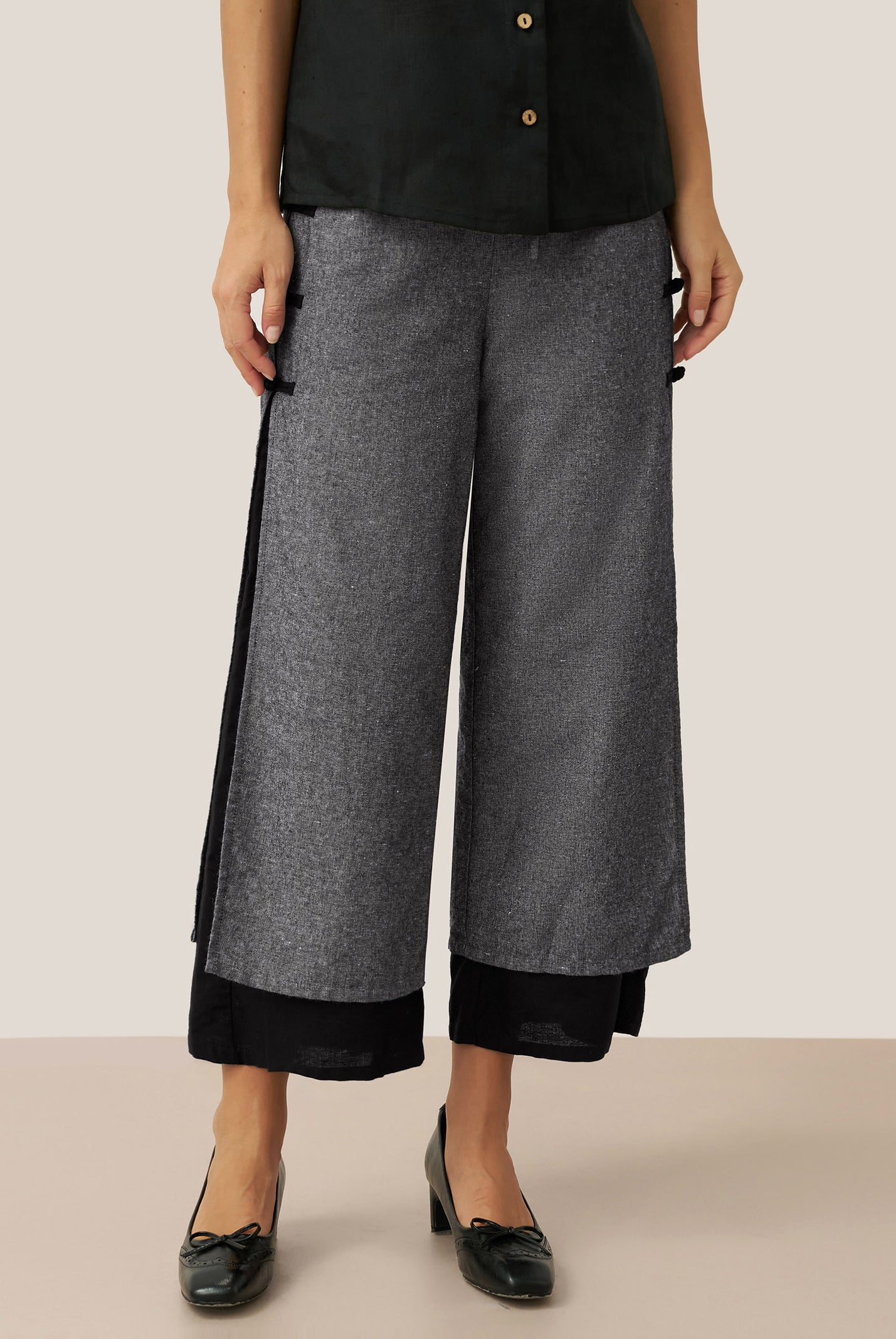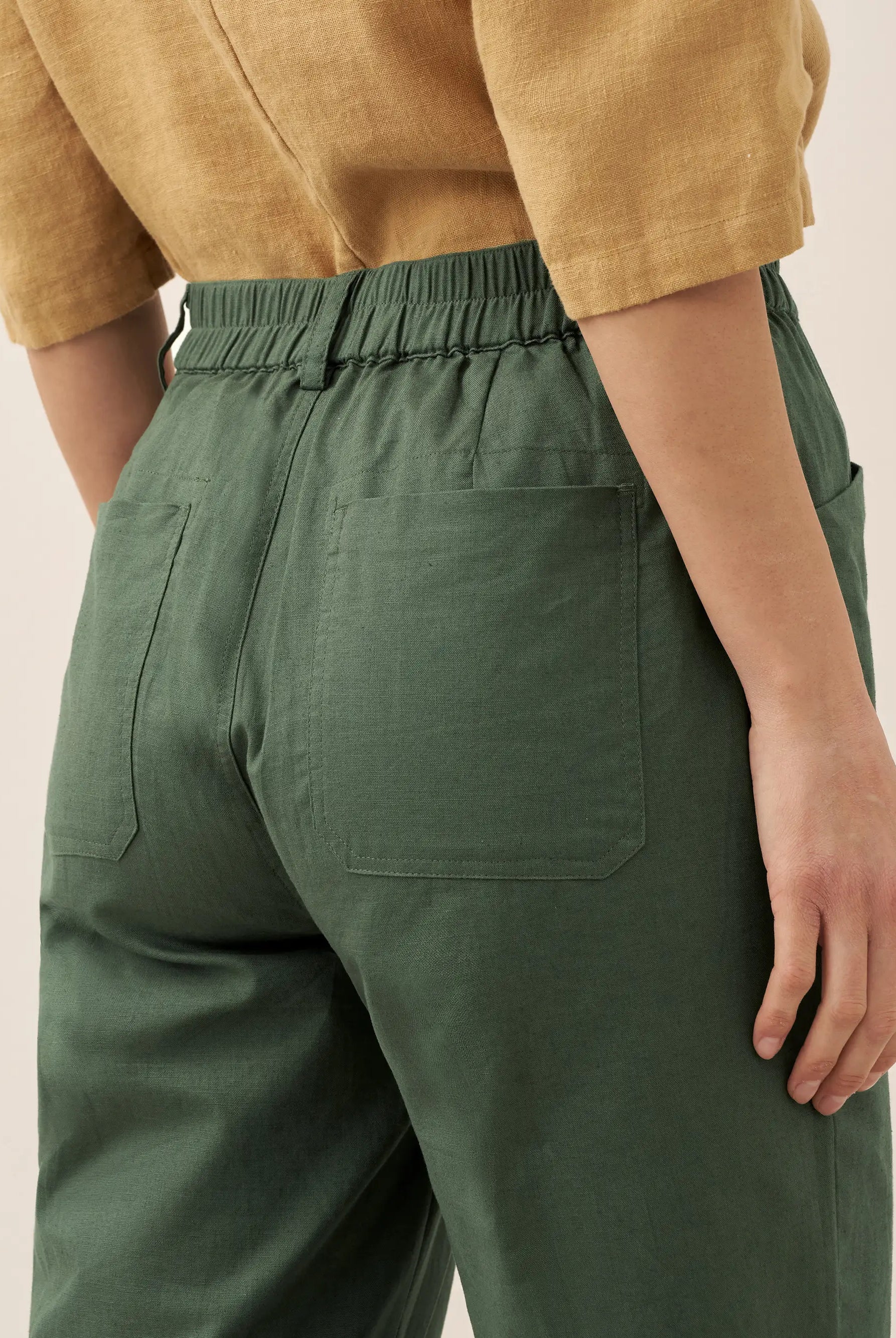 Linen Gingham Checked Round Soft-Fold Collar Top LAURA