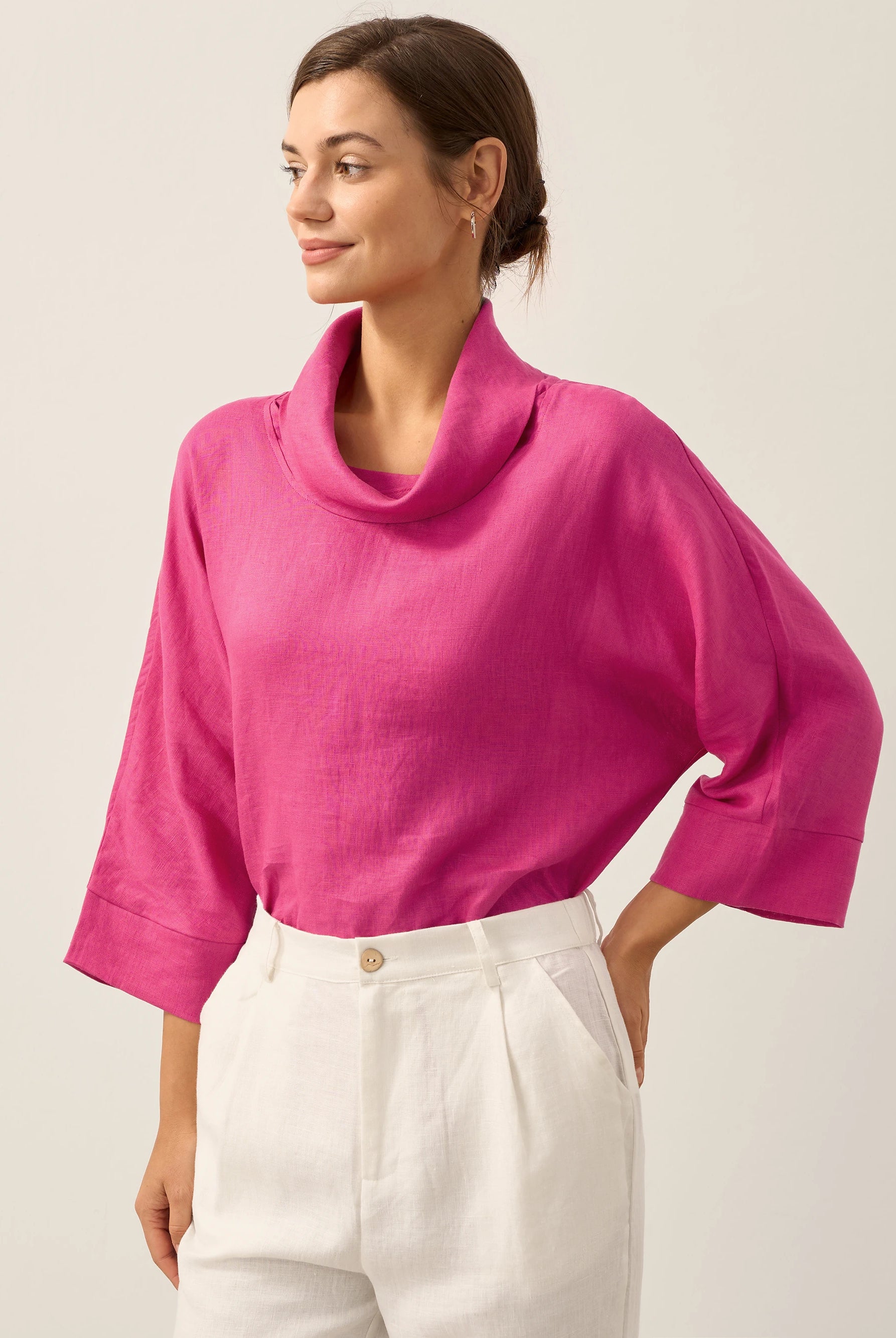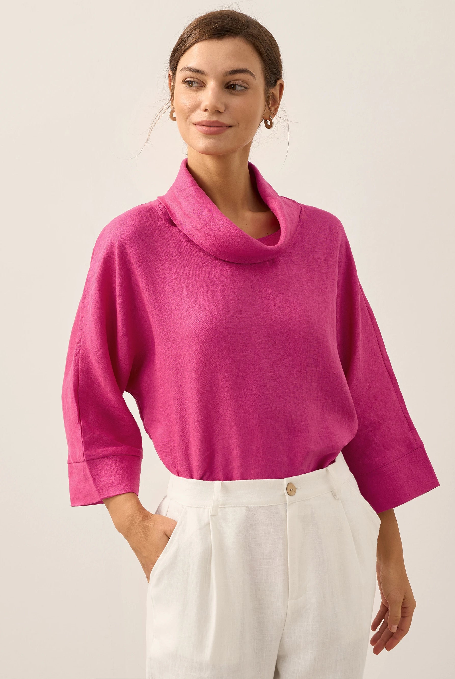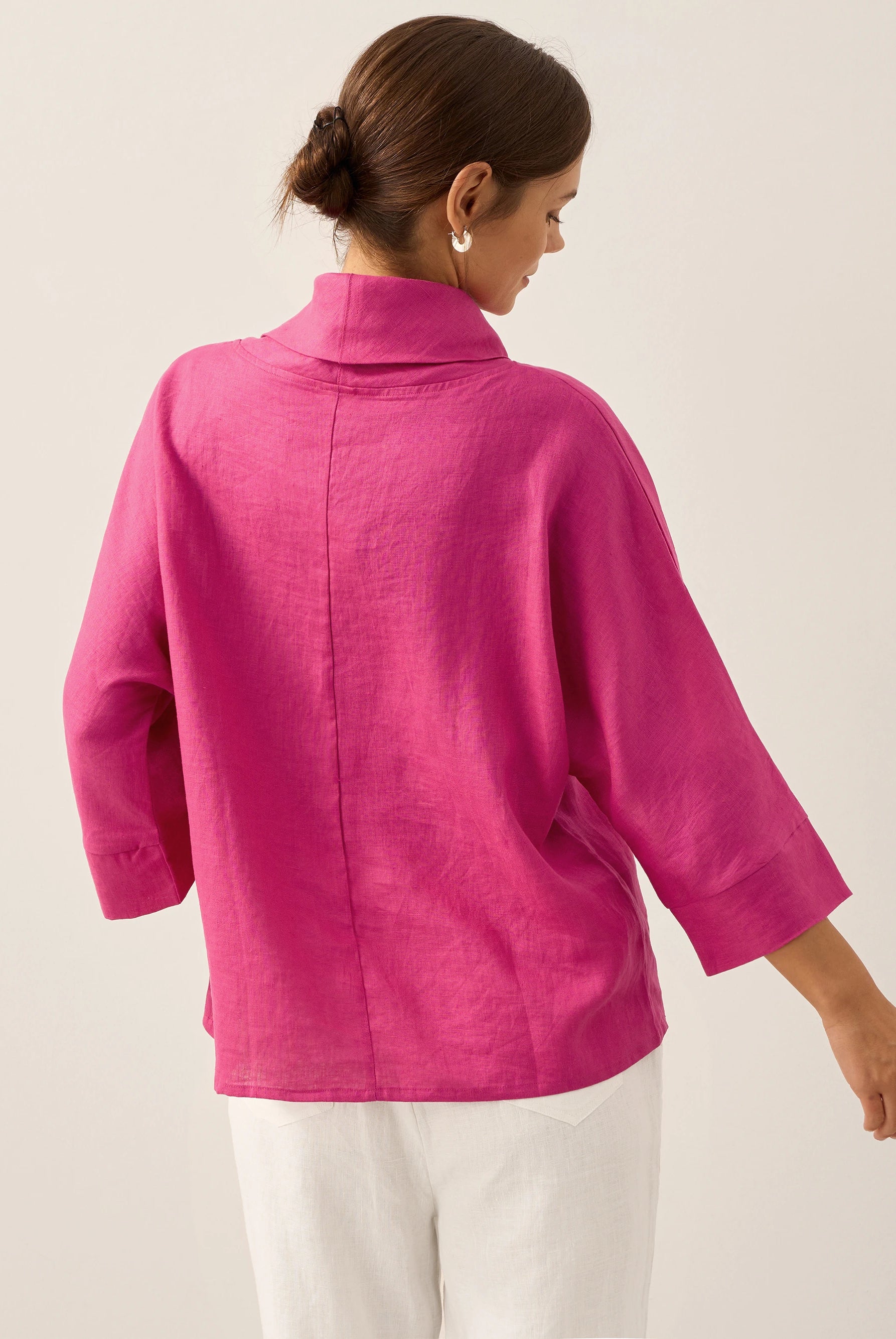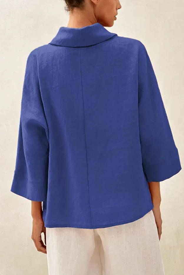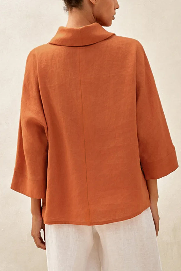 100% Linen Shawl V-Neck Half Sleeve Top JADE
