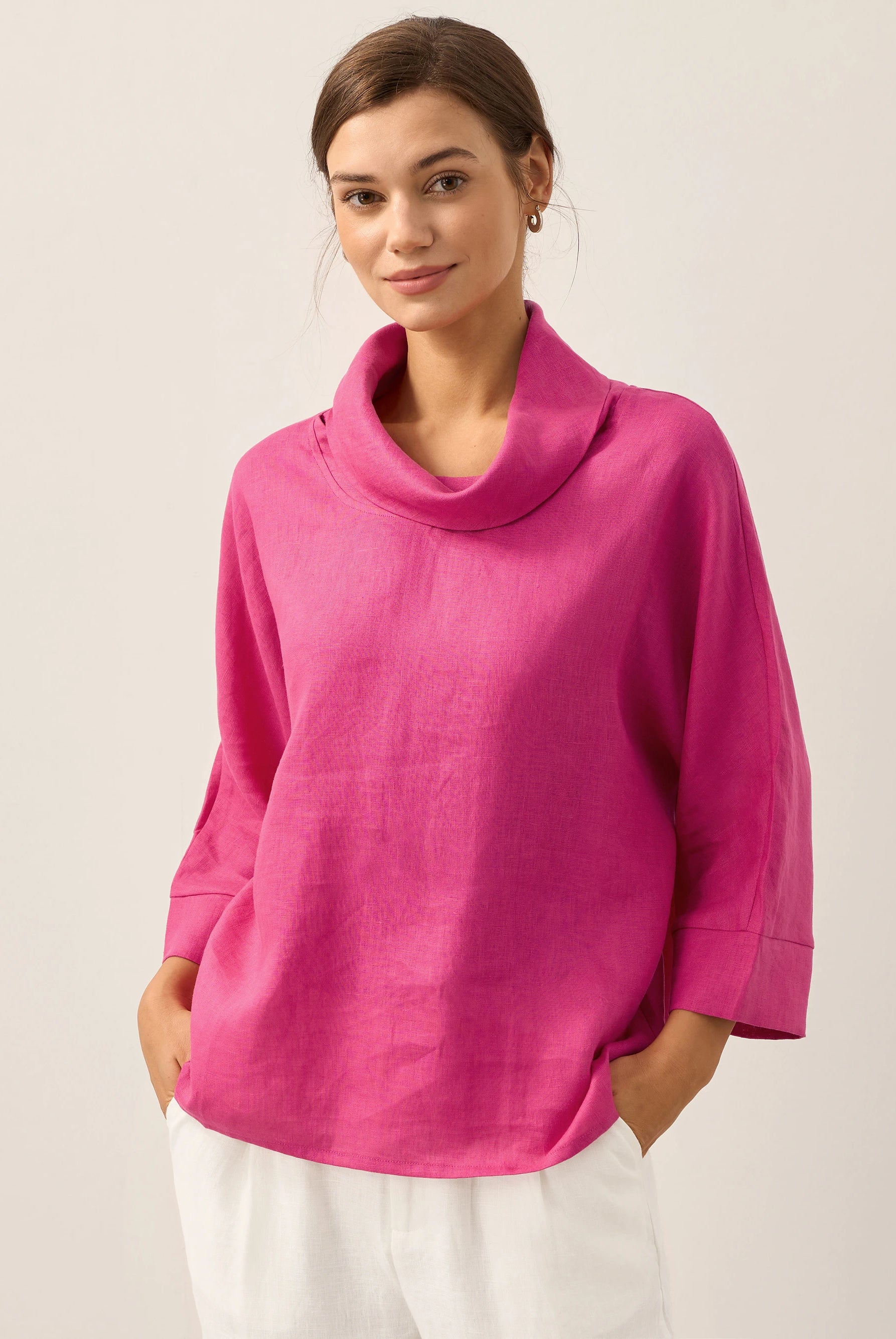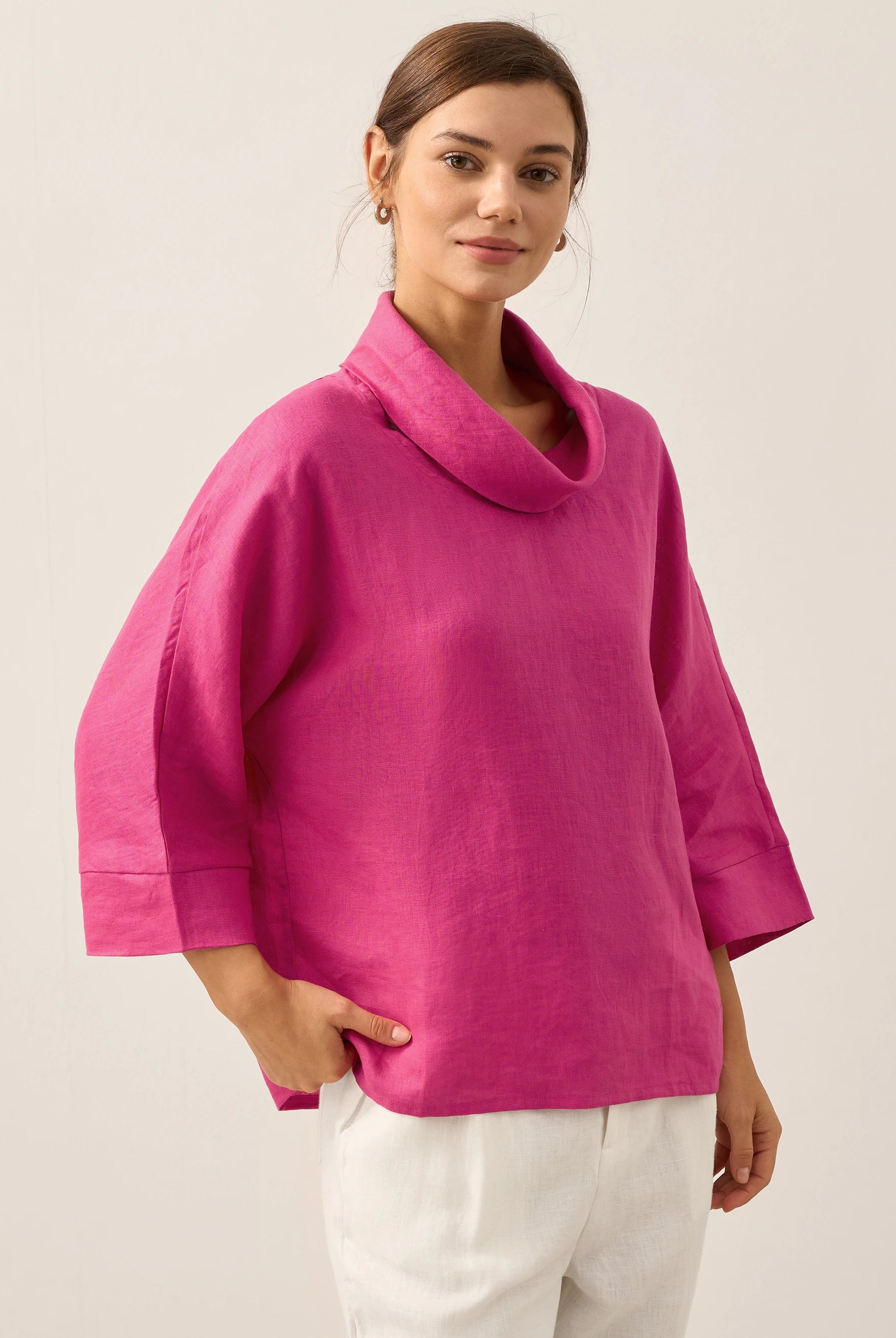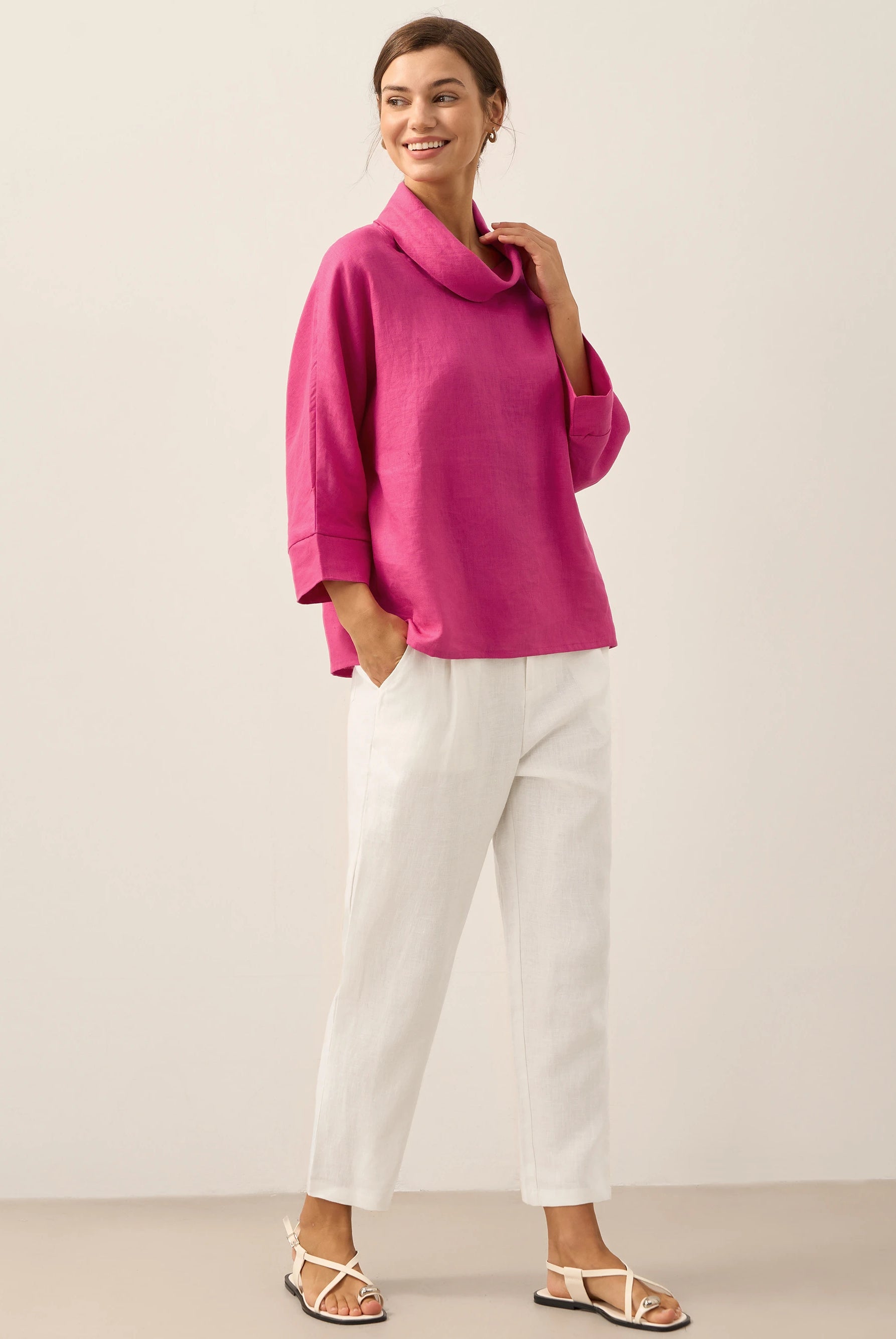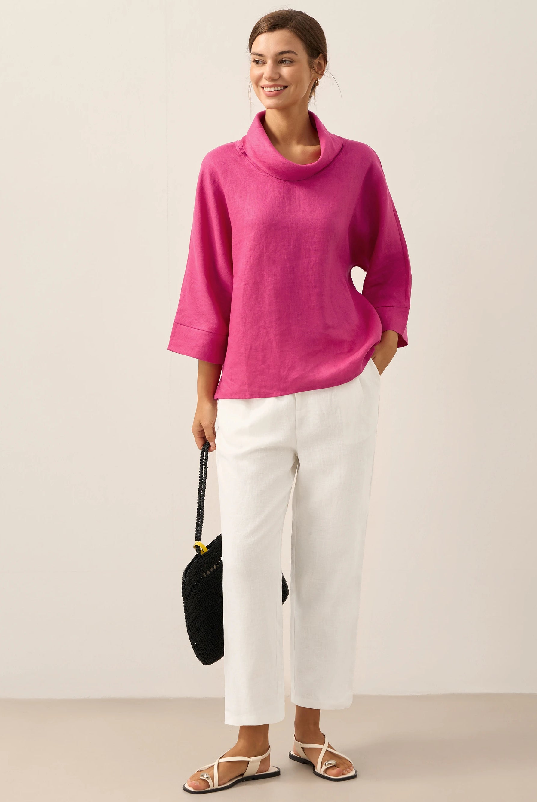 100% Linen Shawl V-Neck Half Sleeve Top JADE