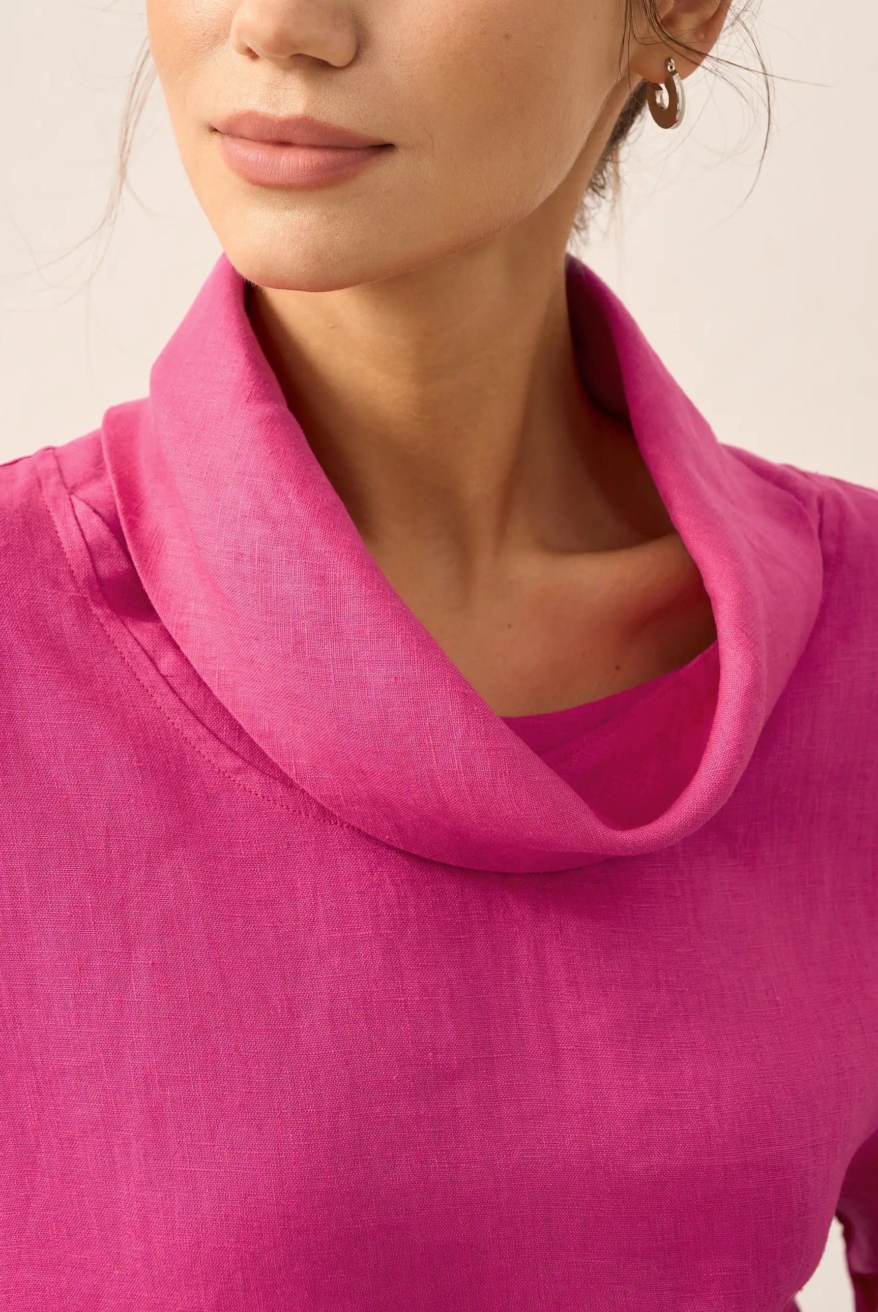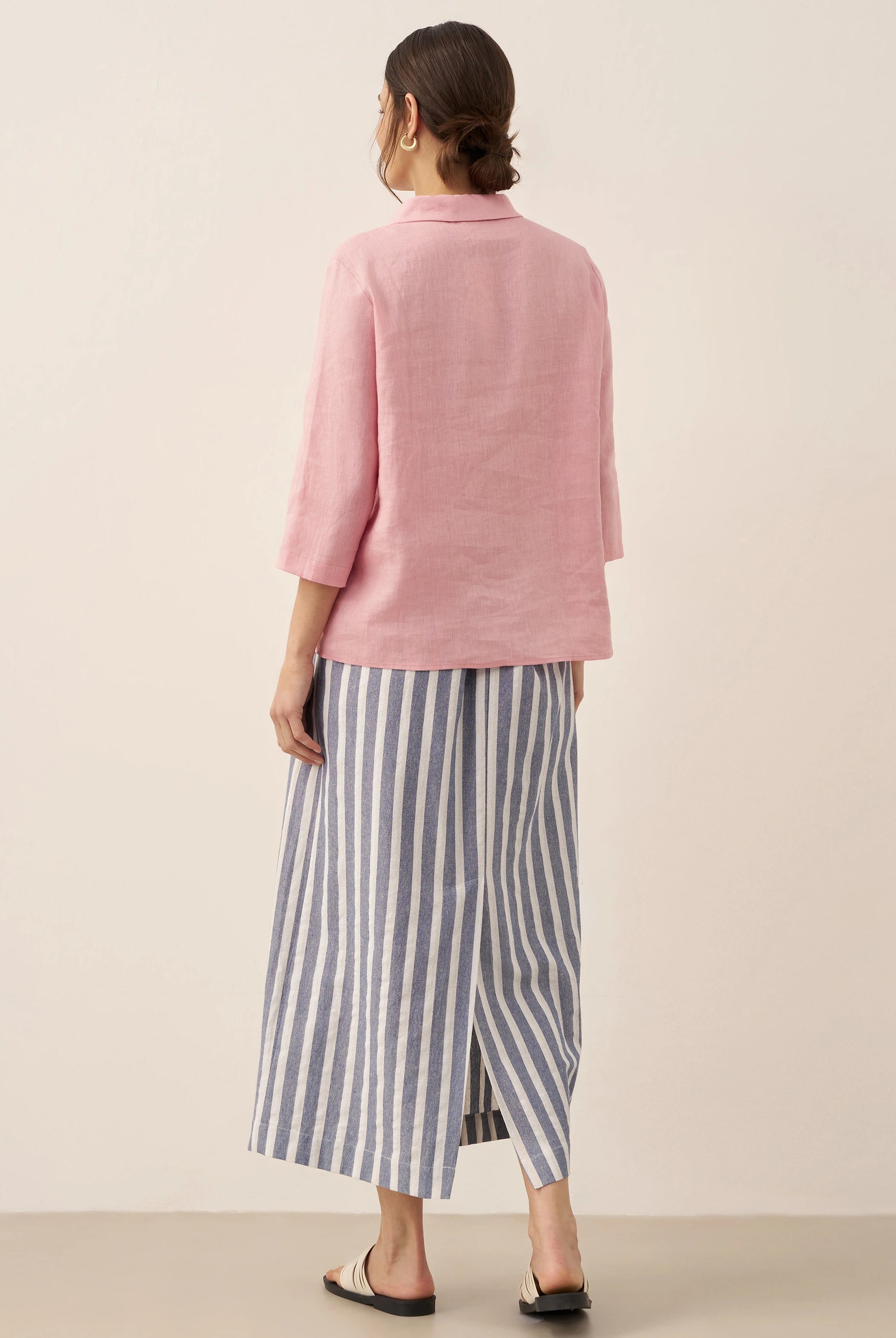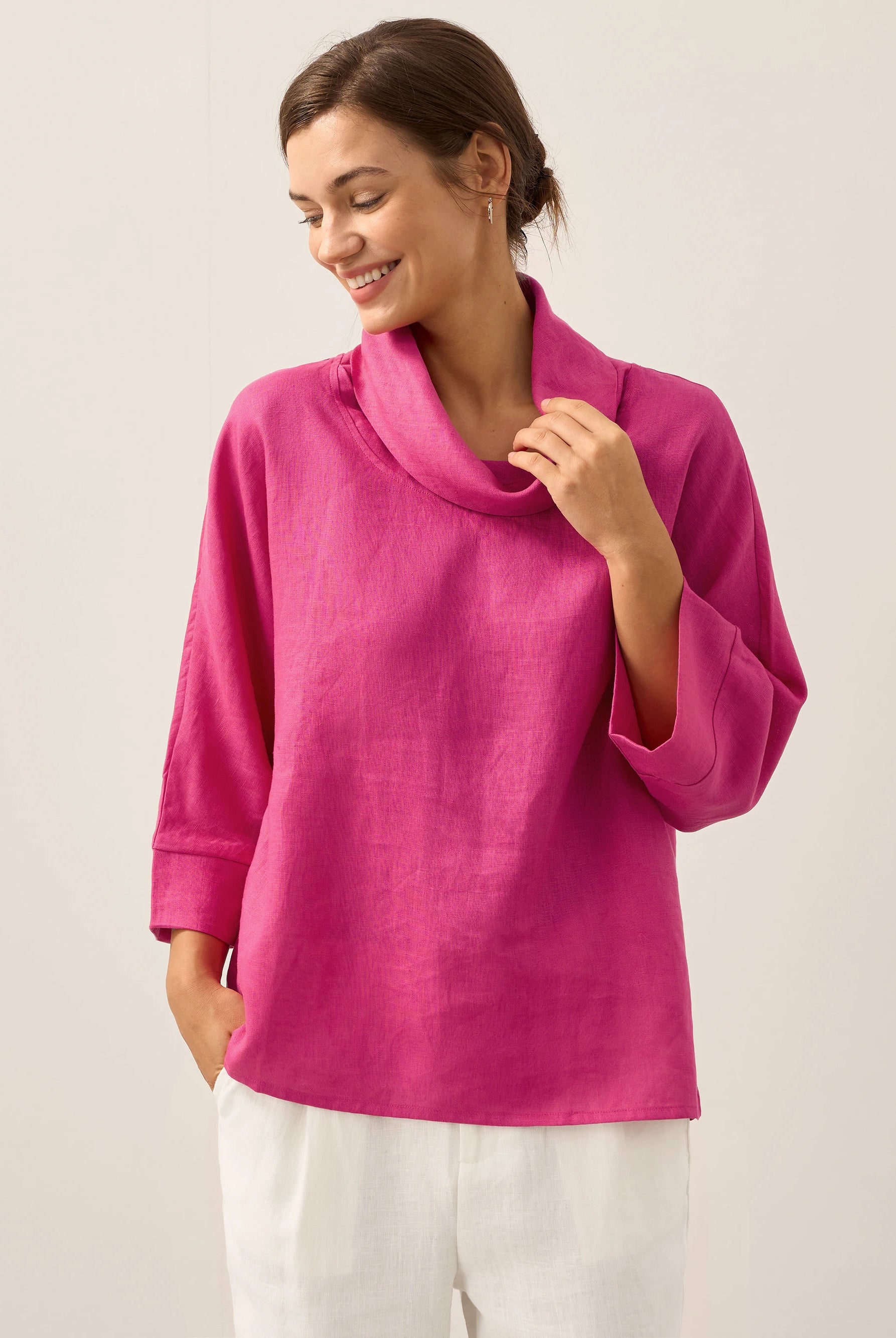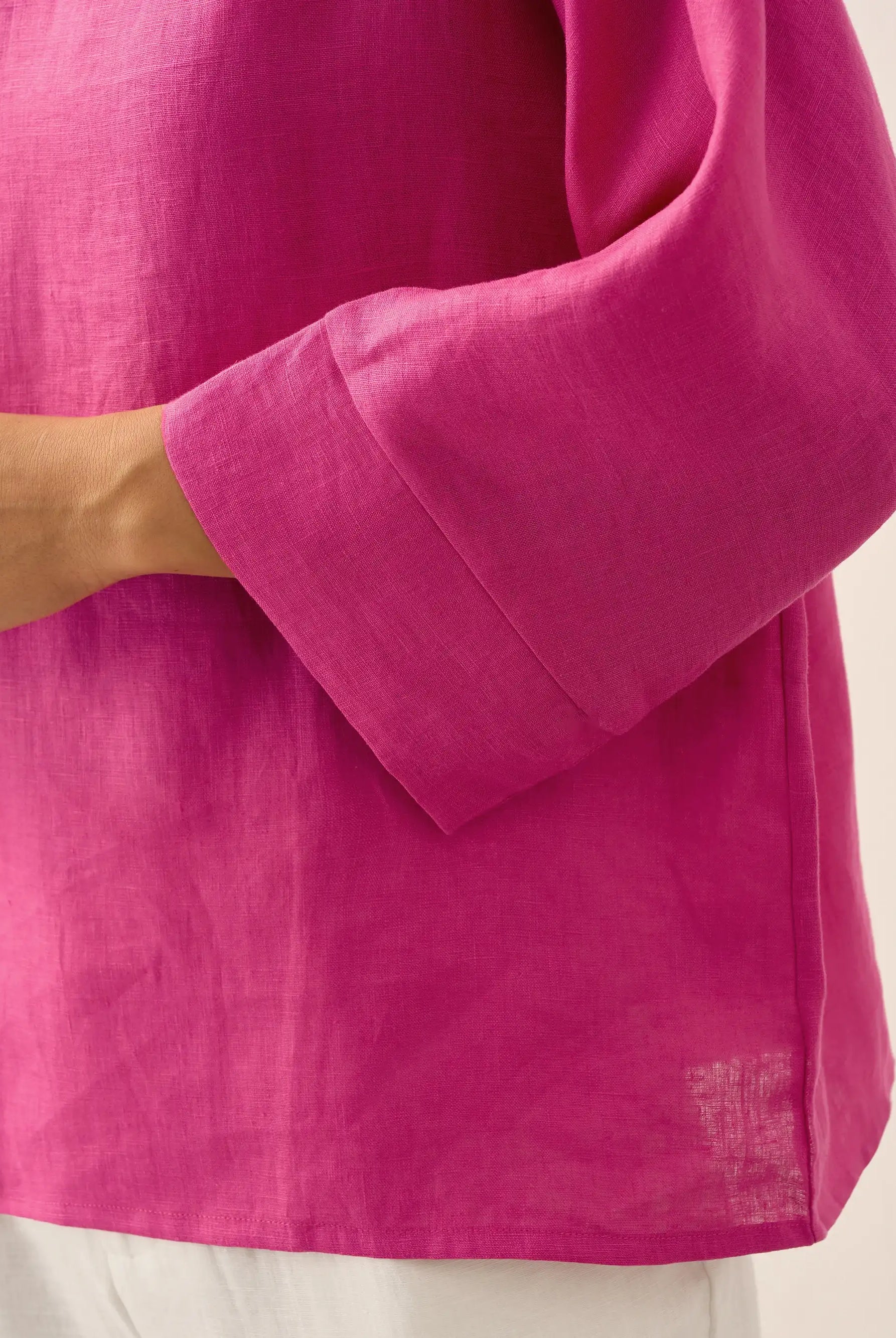 100% Linen Shawl V-Neck Half Sleeve Top JADE