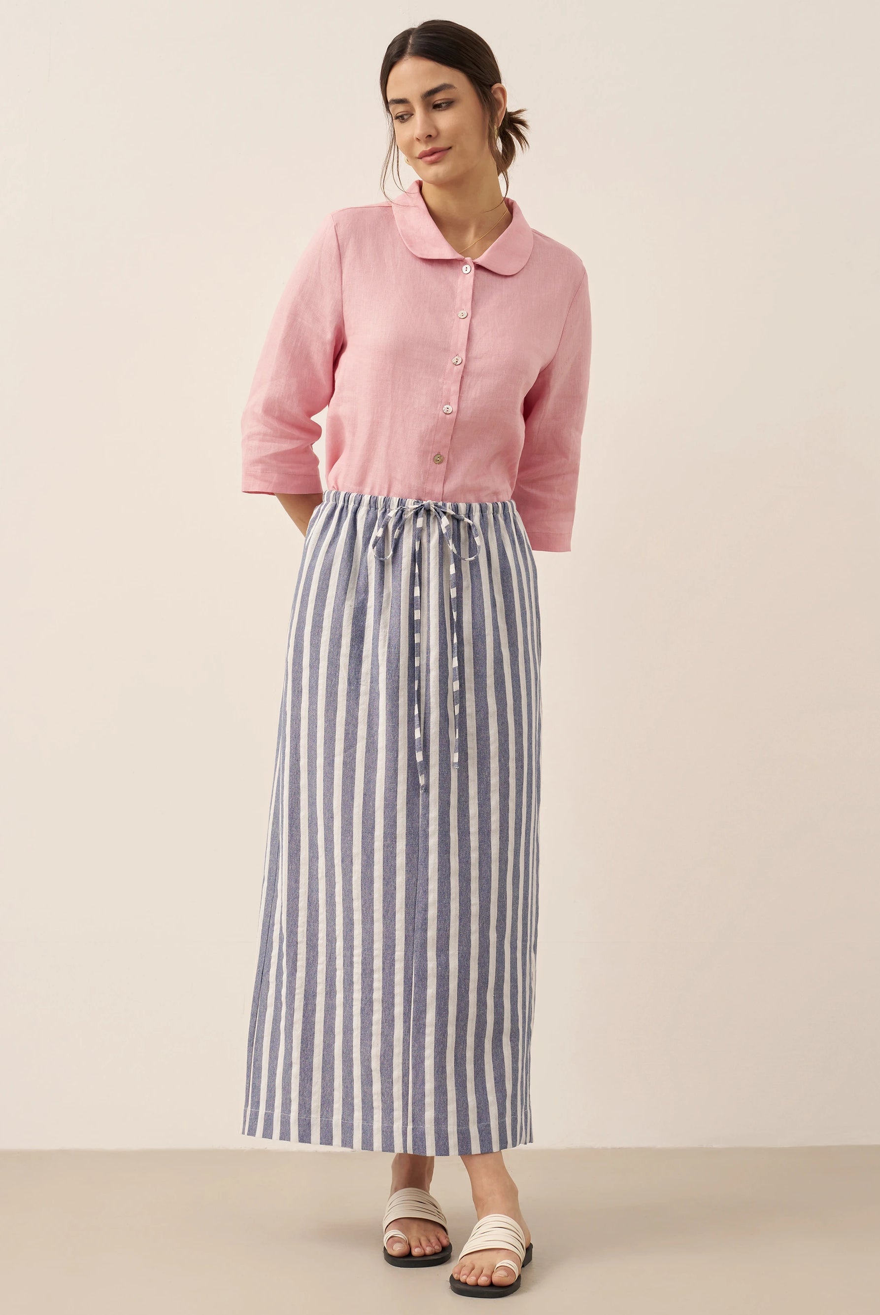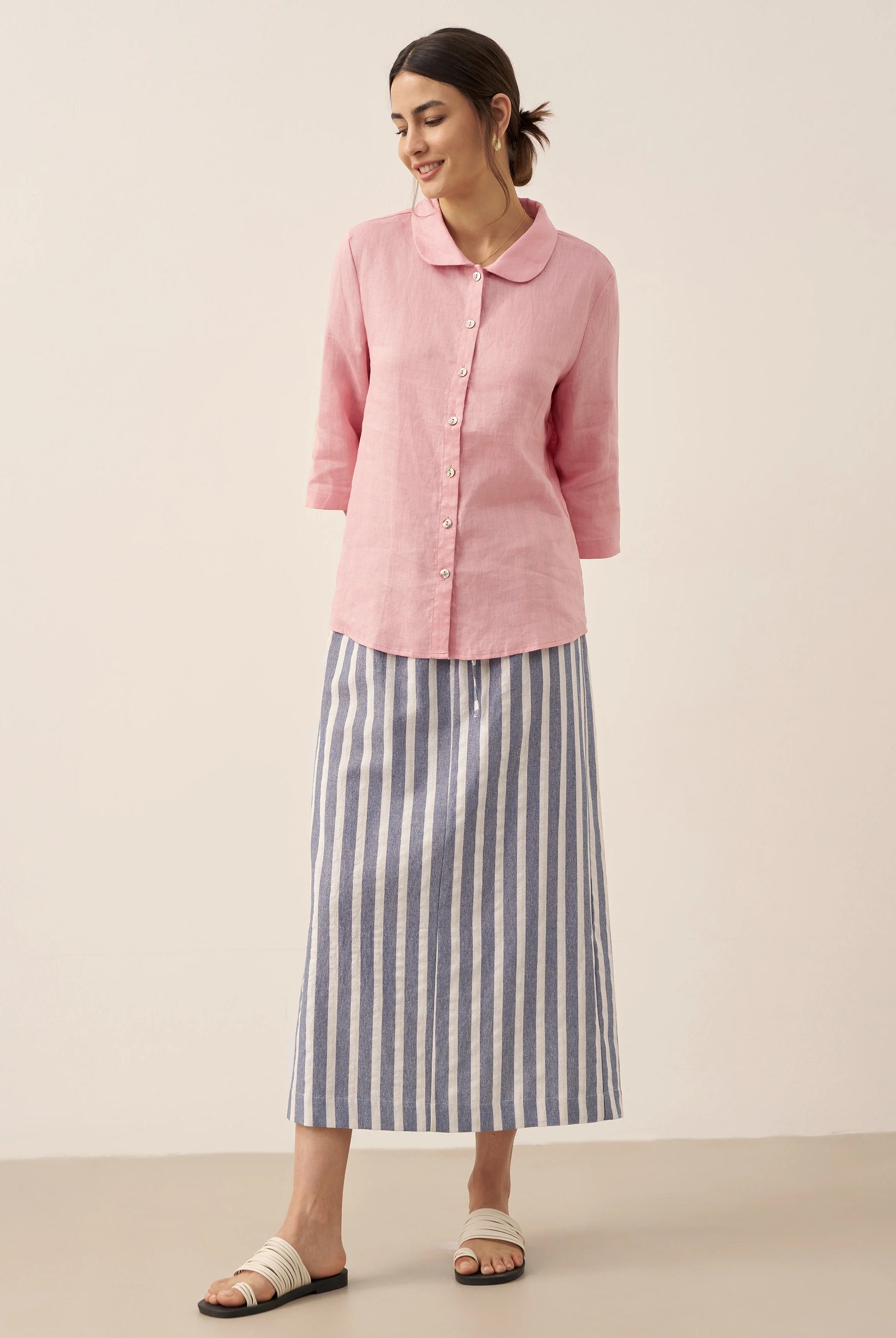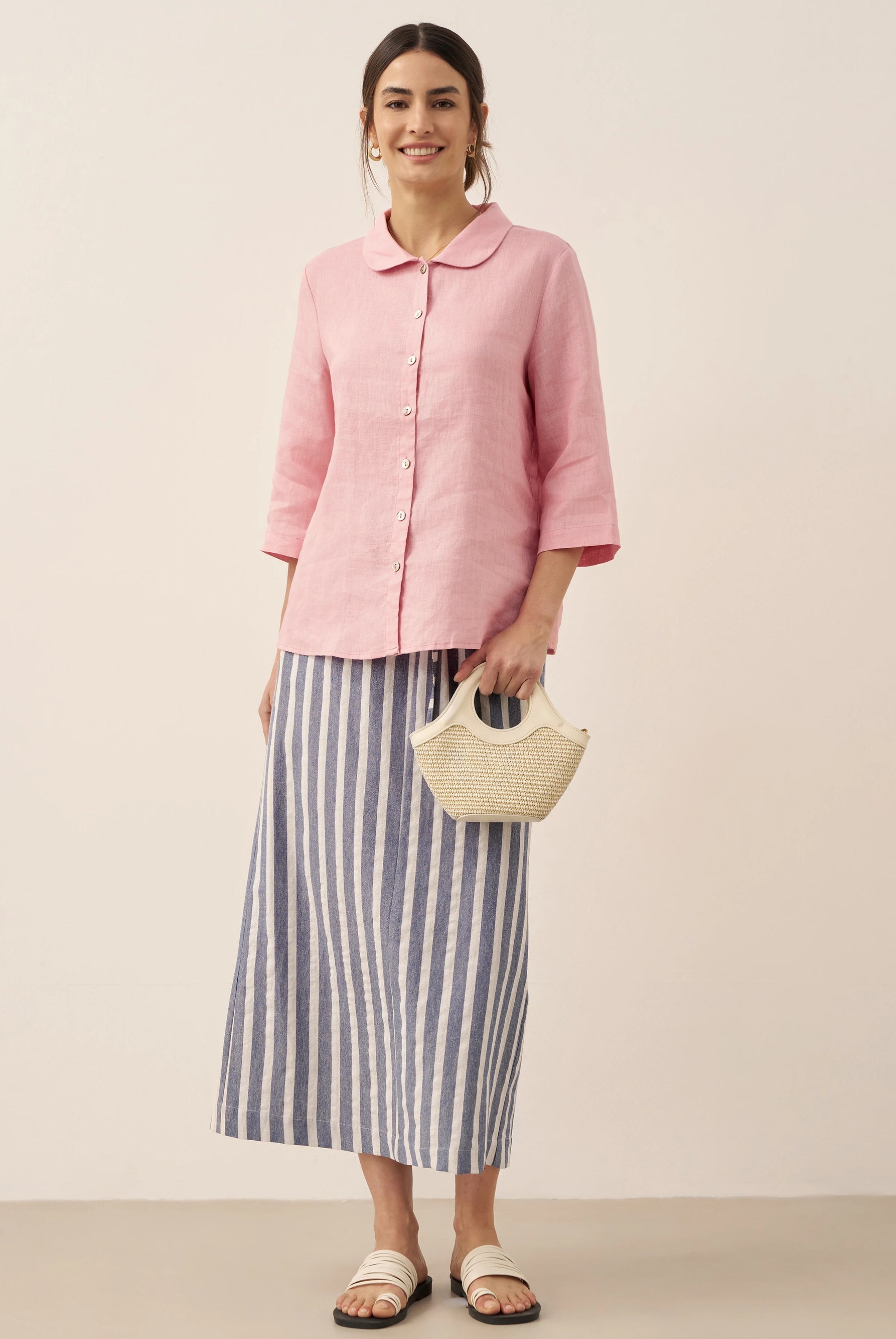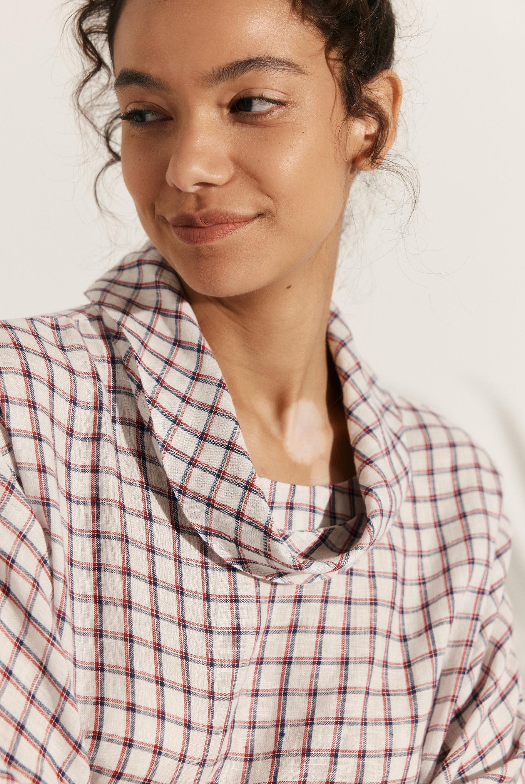 100% Linen Shawl V-Neck Half Sleeve Top JADE