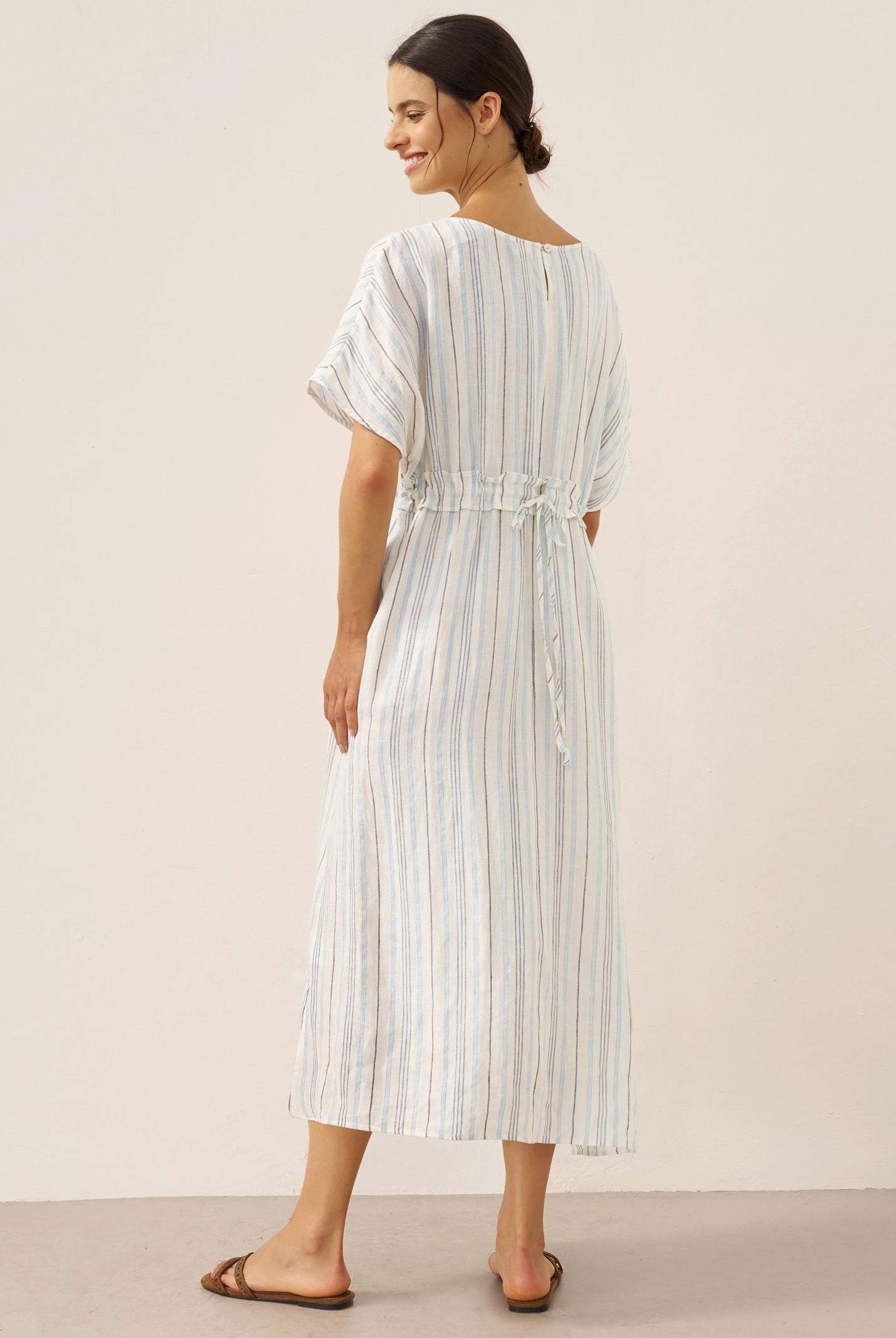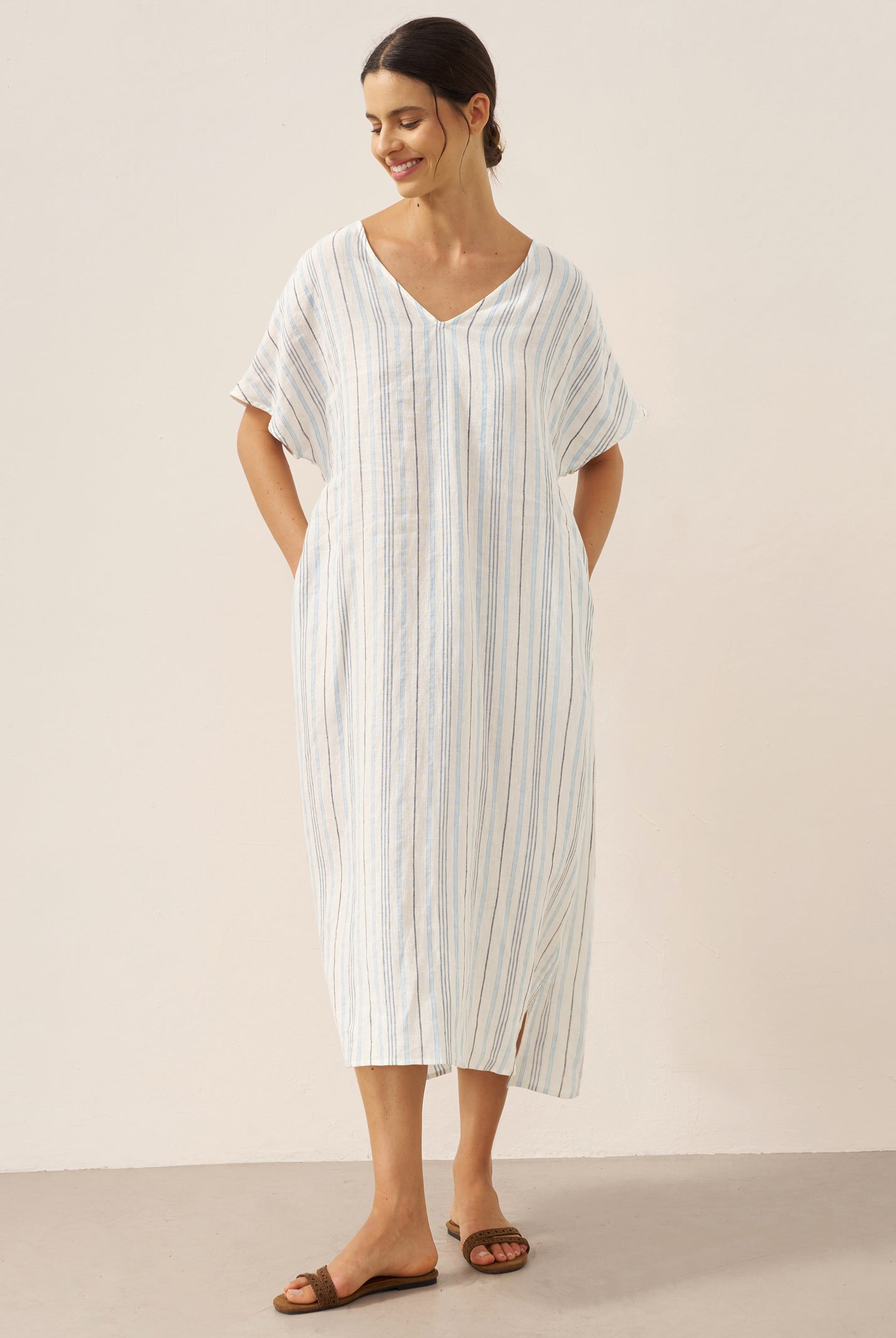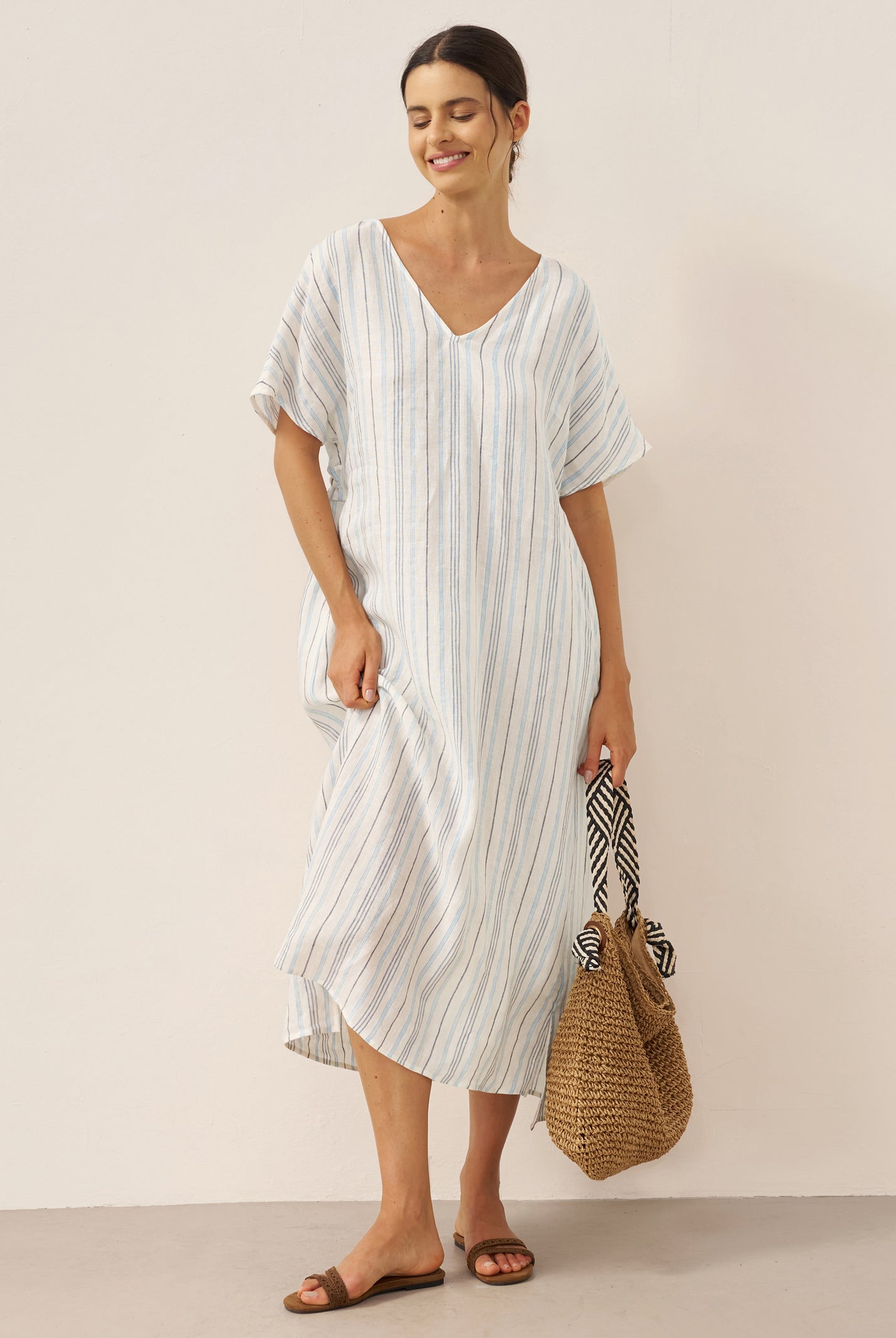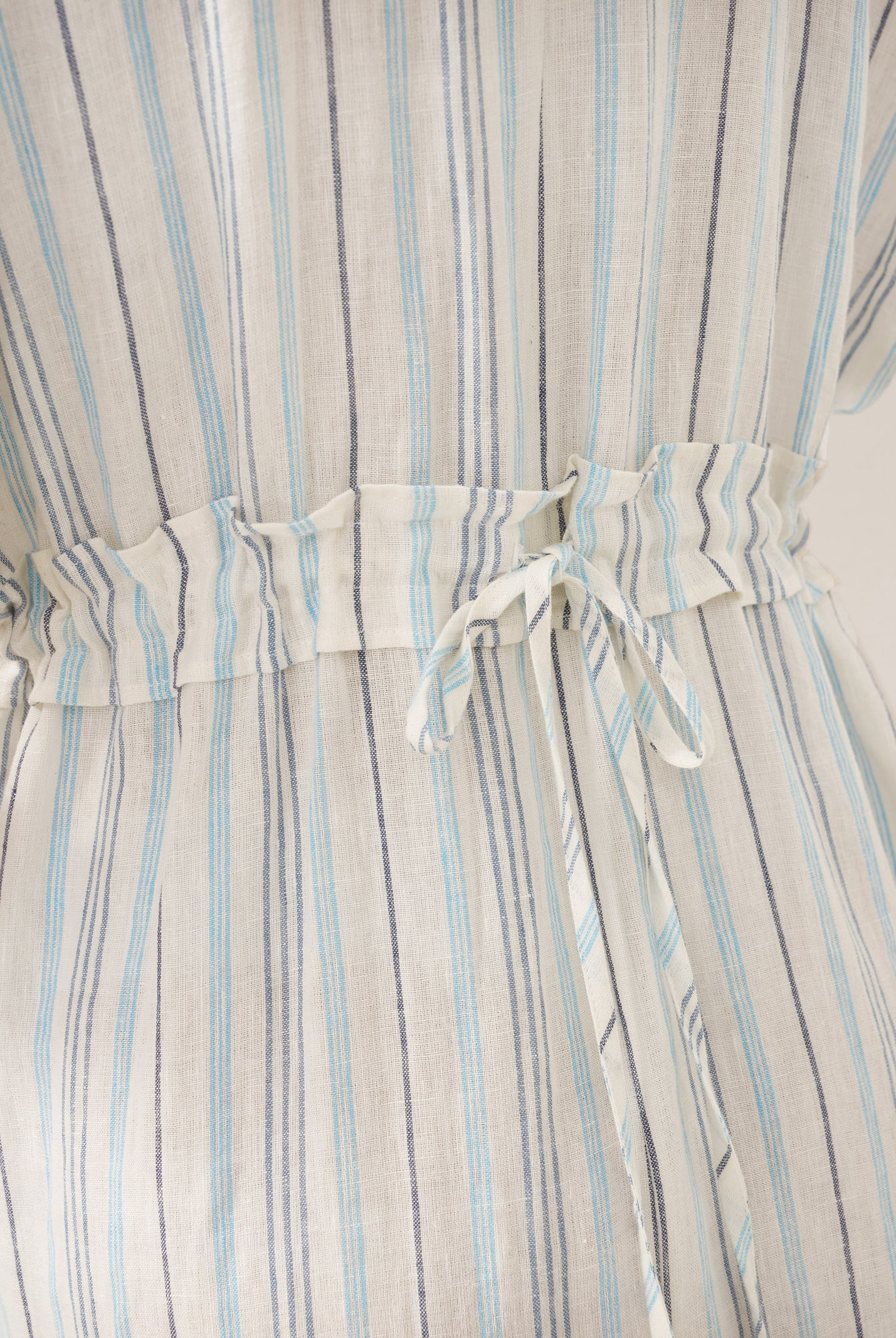 100% Linen Stripe Shawl V-Neck Half Sleeve Top
