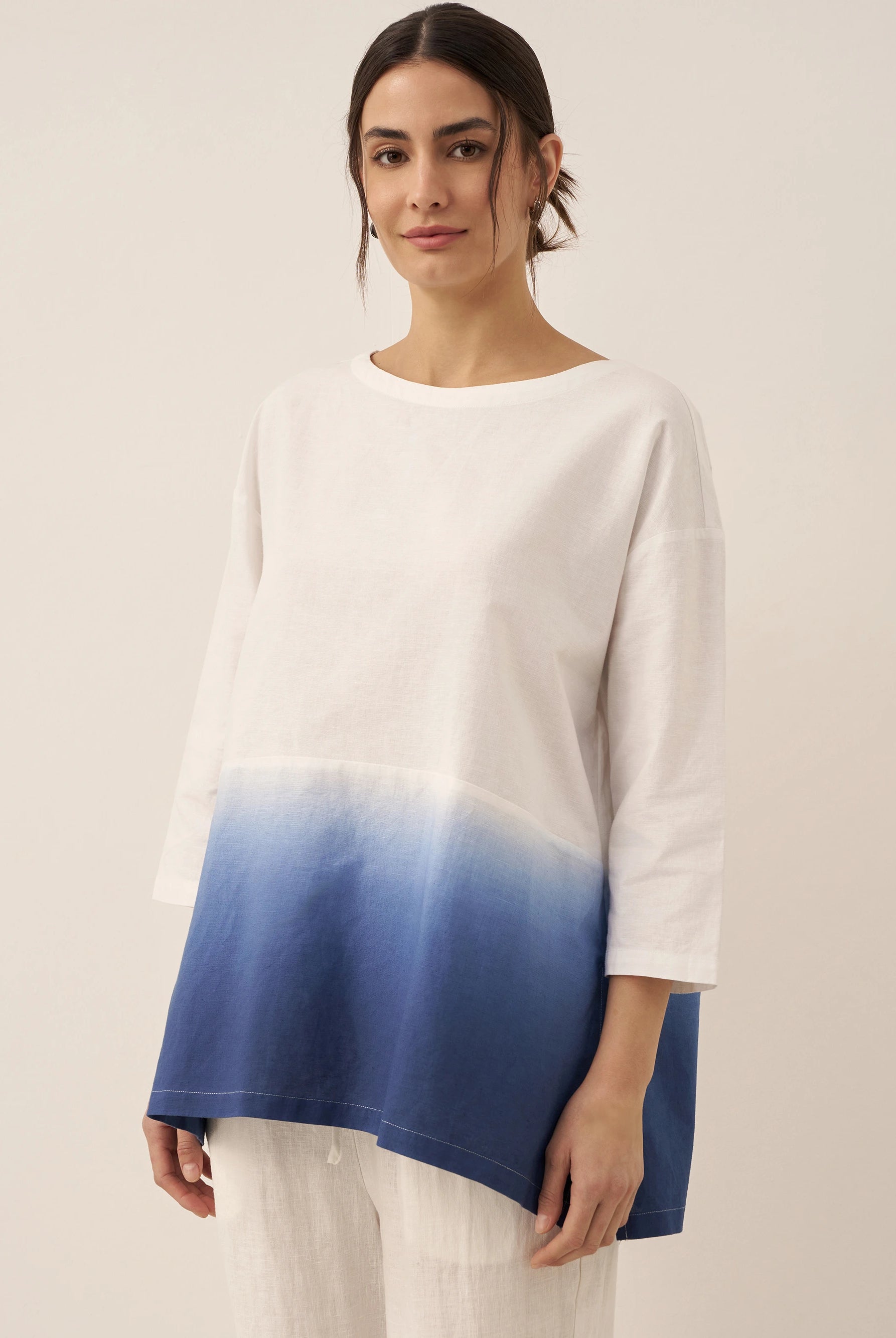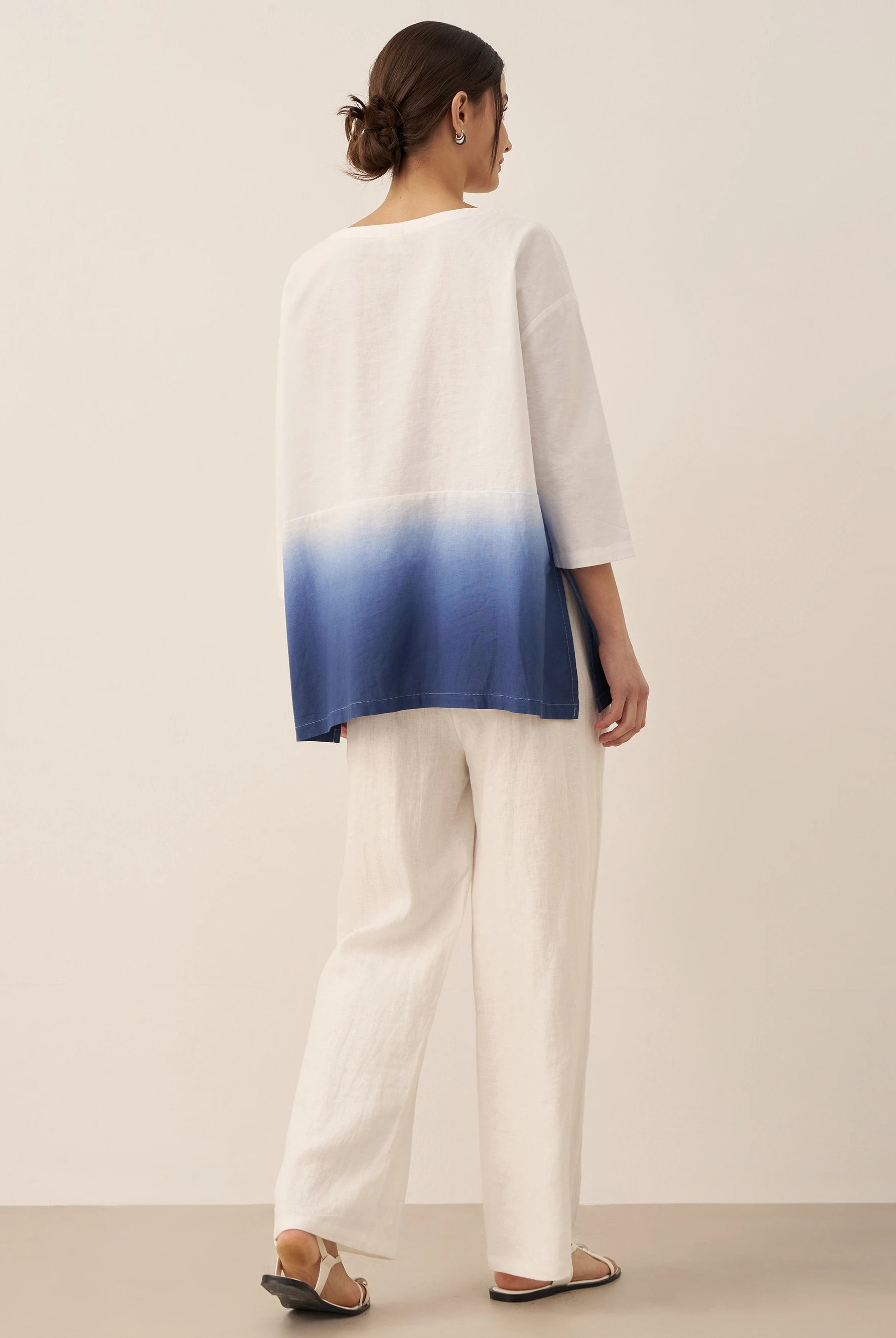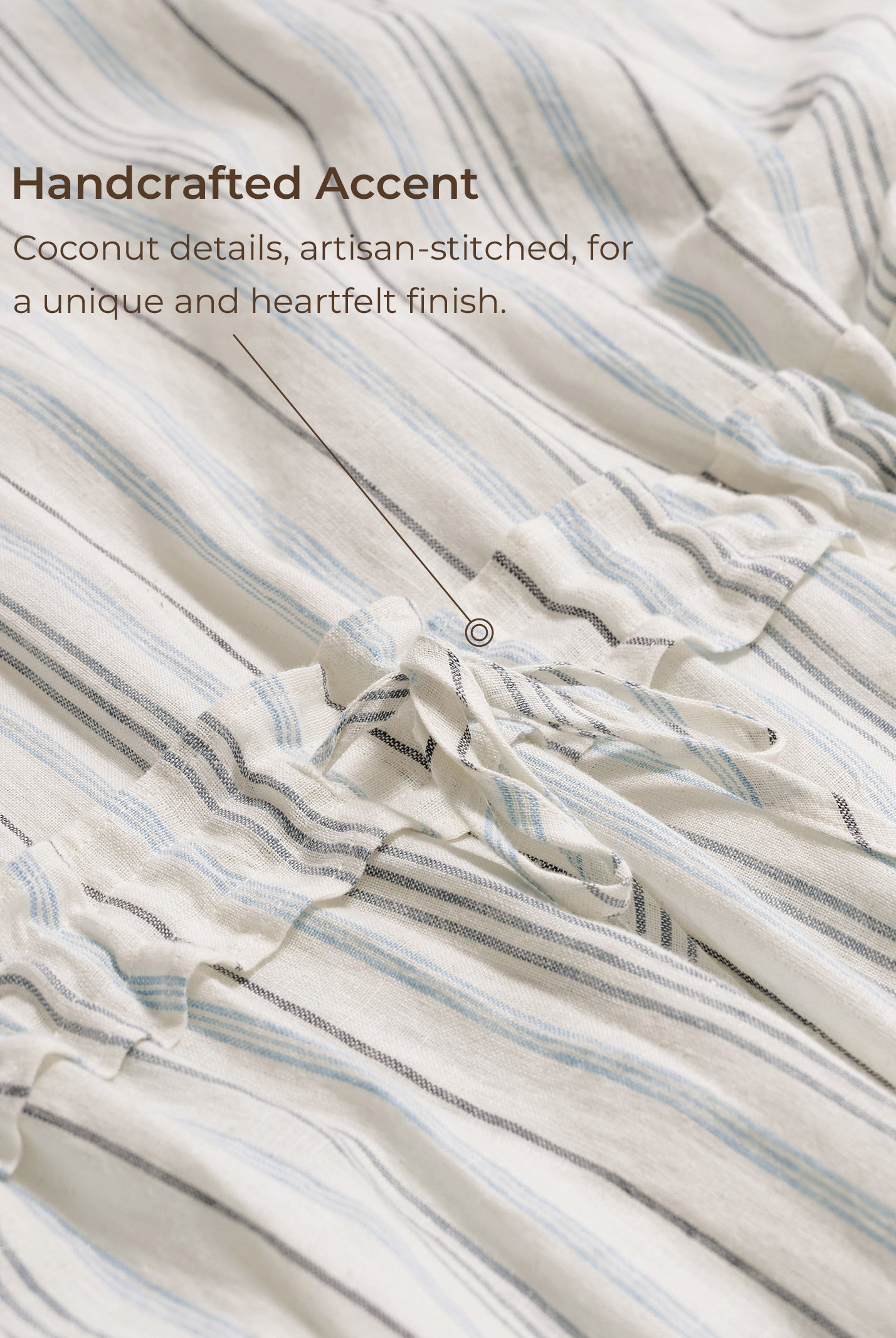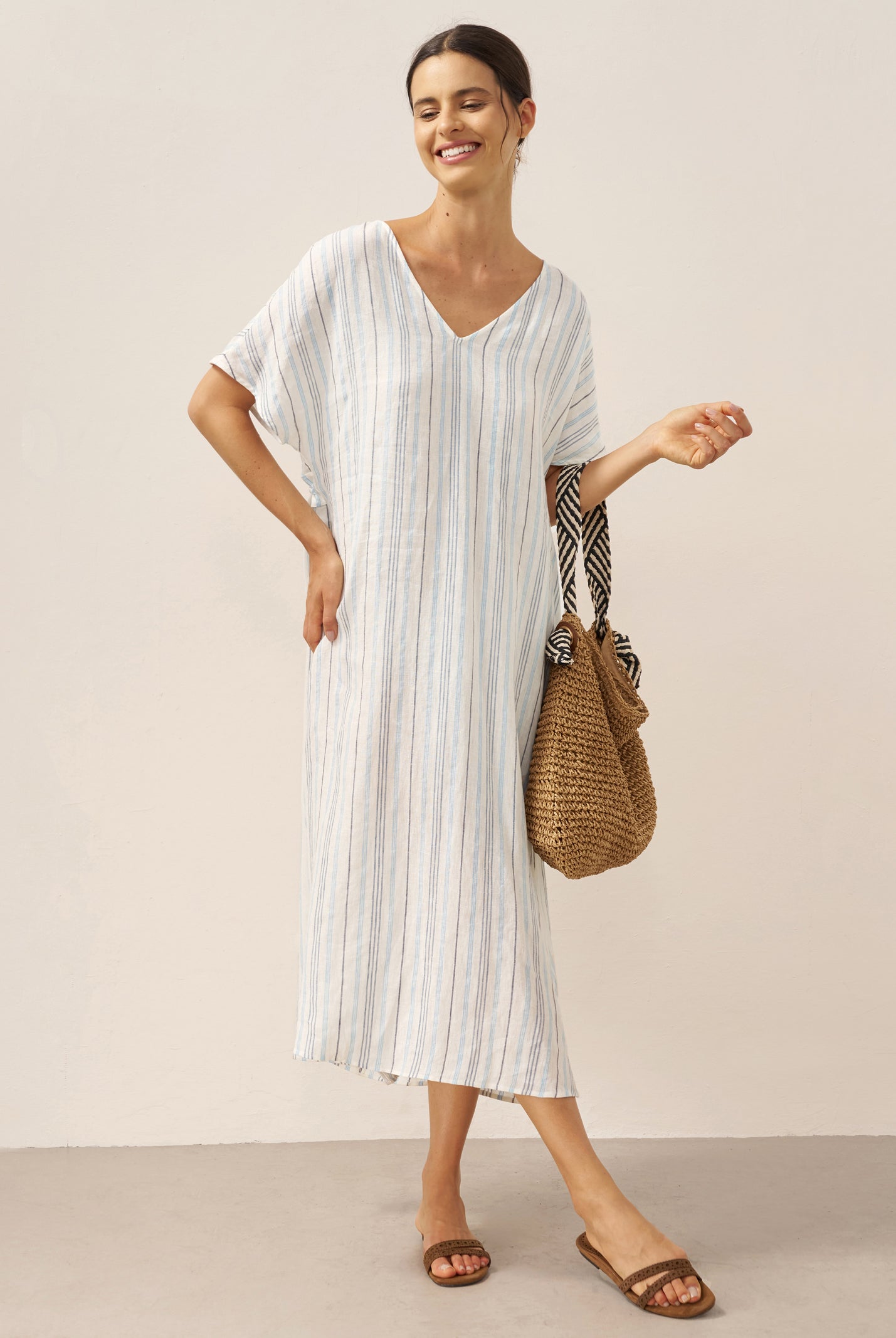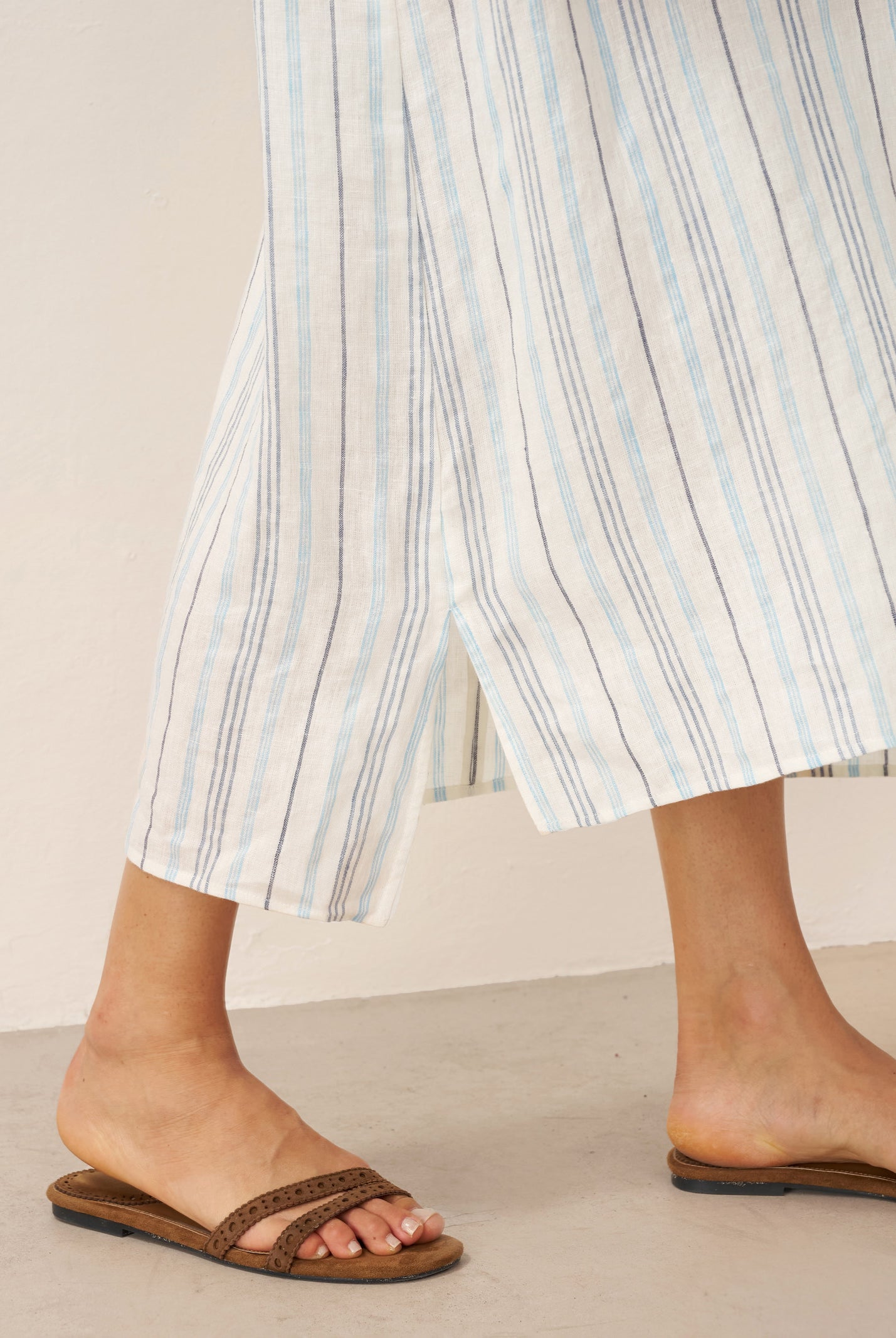100% Linen Stripe Shawl V-Neck Half Sleeve Top