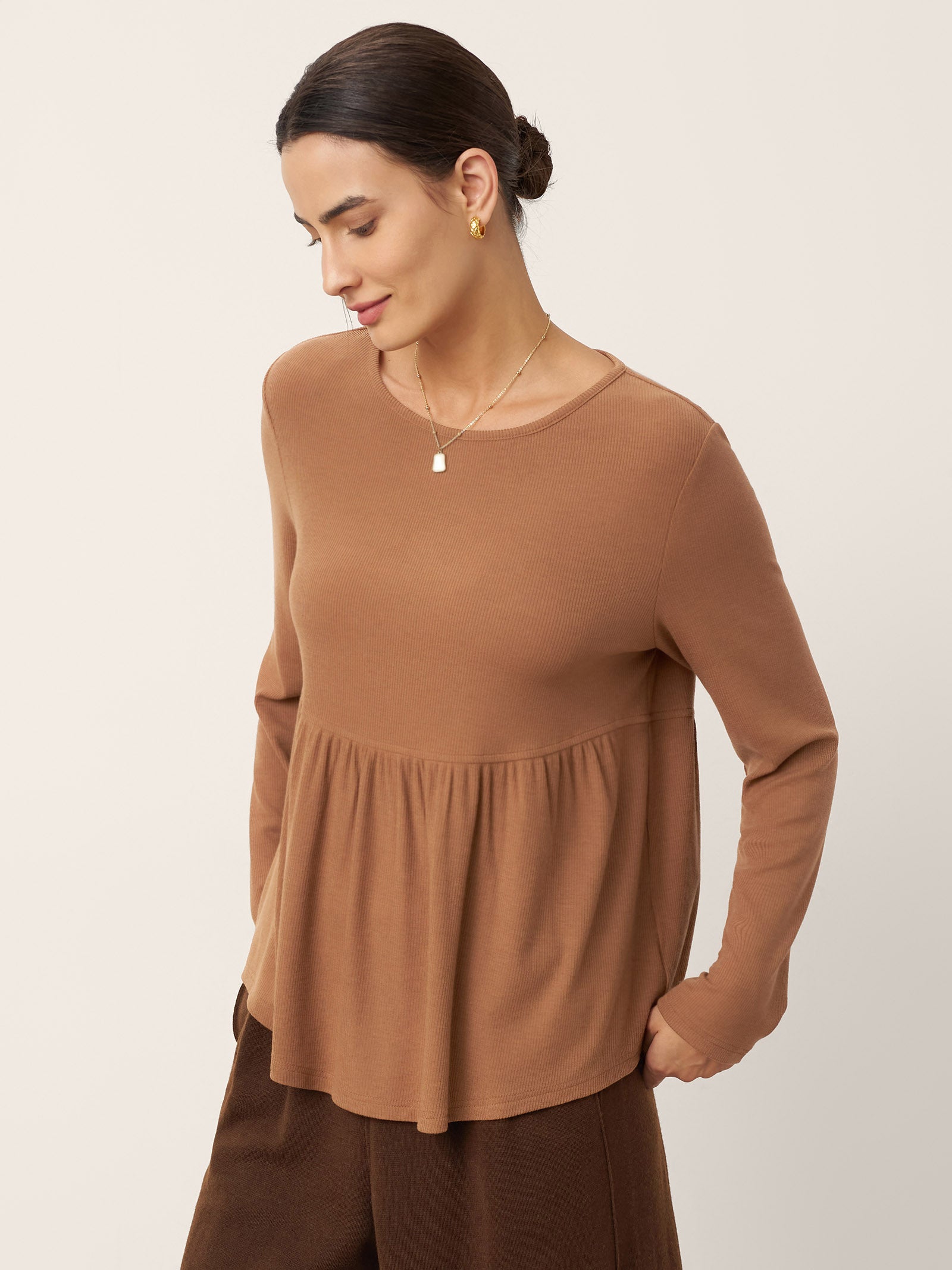 Tencel-Wool Boat Neck Long Sleeve Top CAROLYN