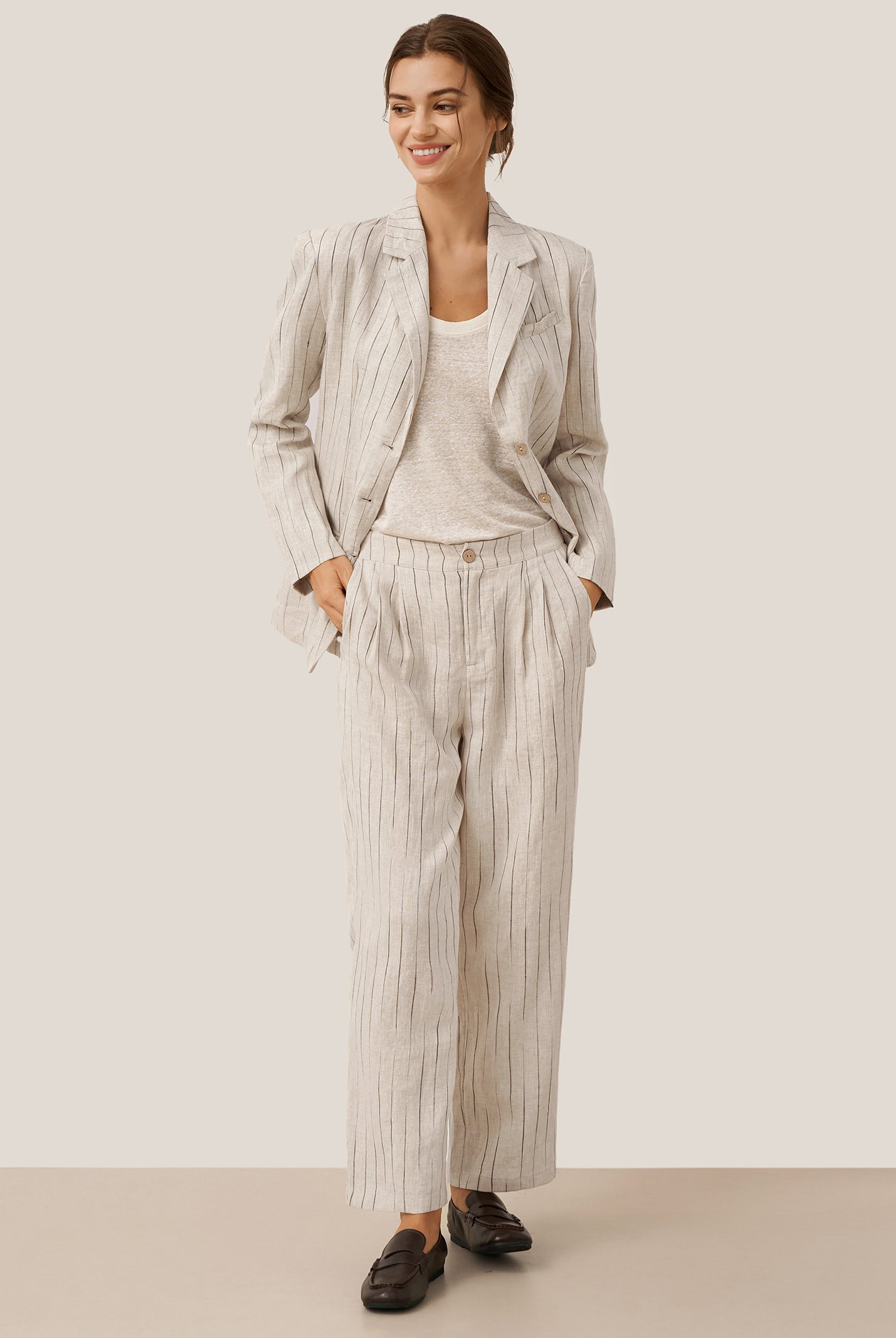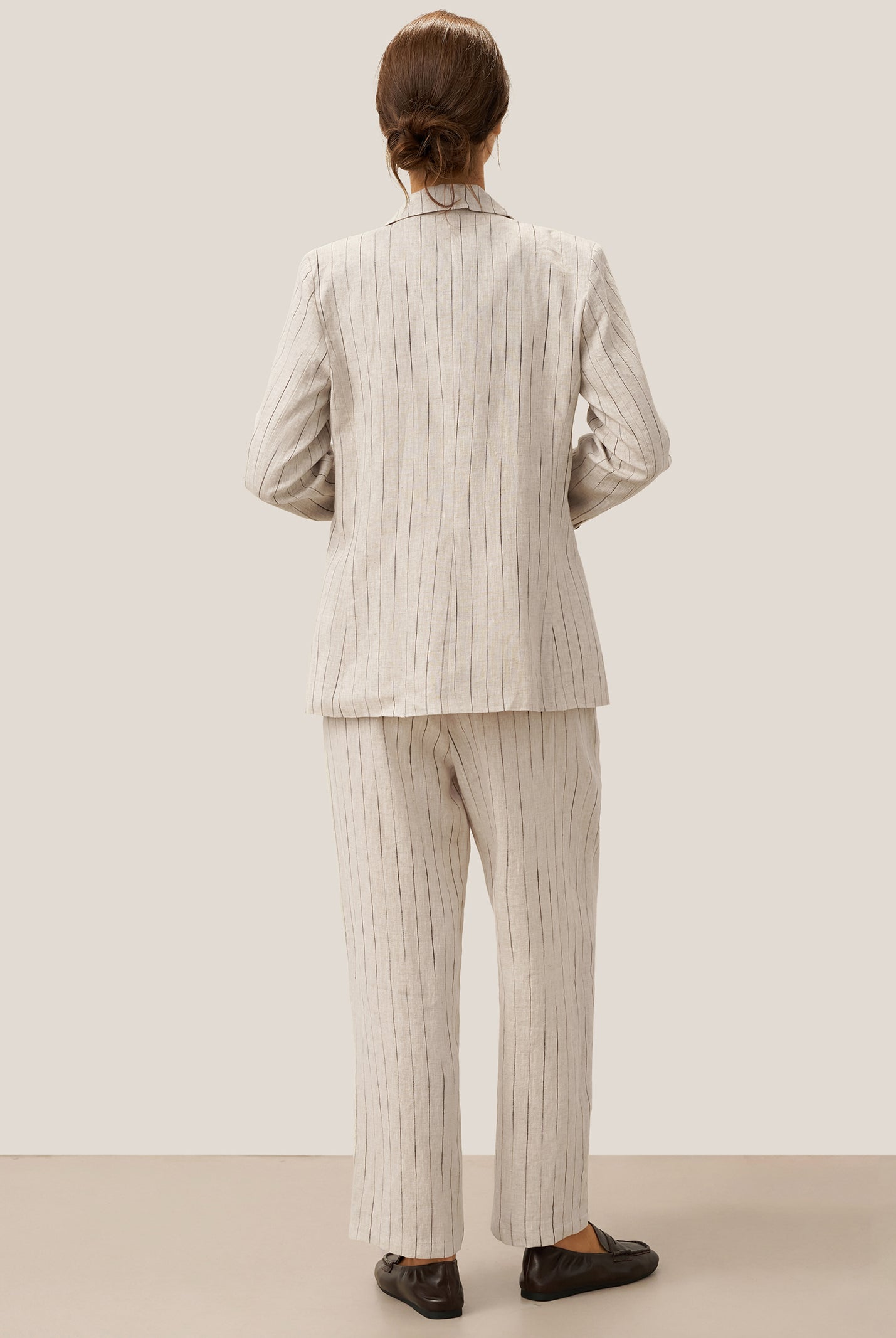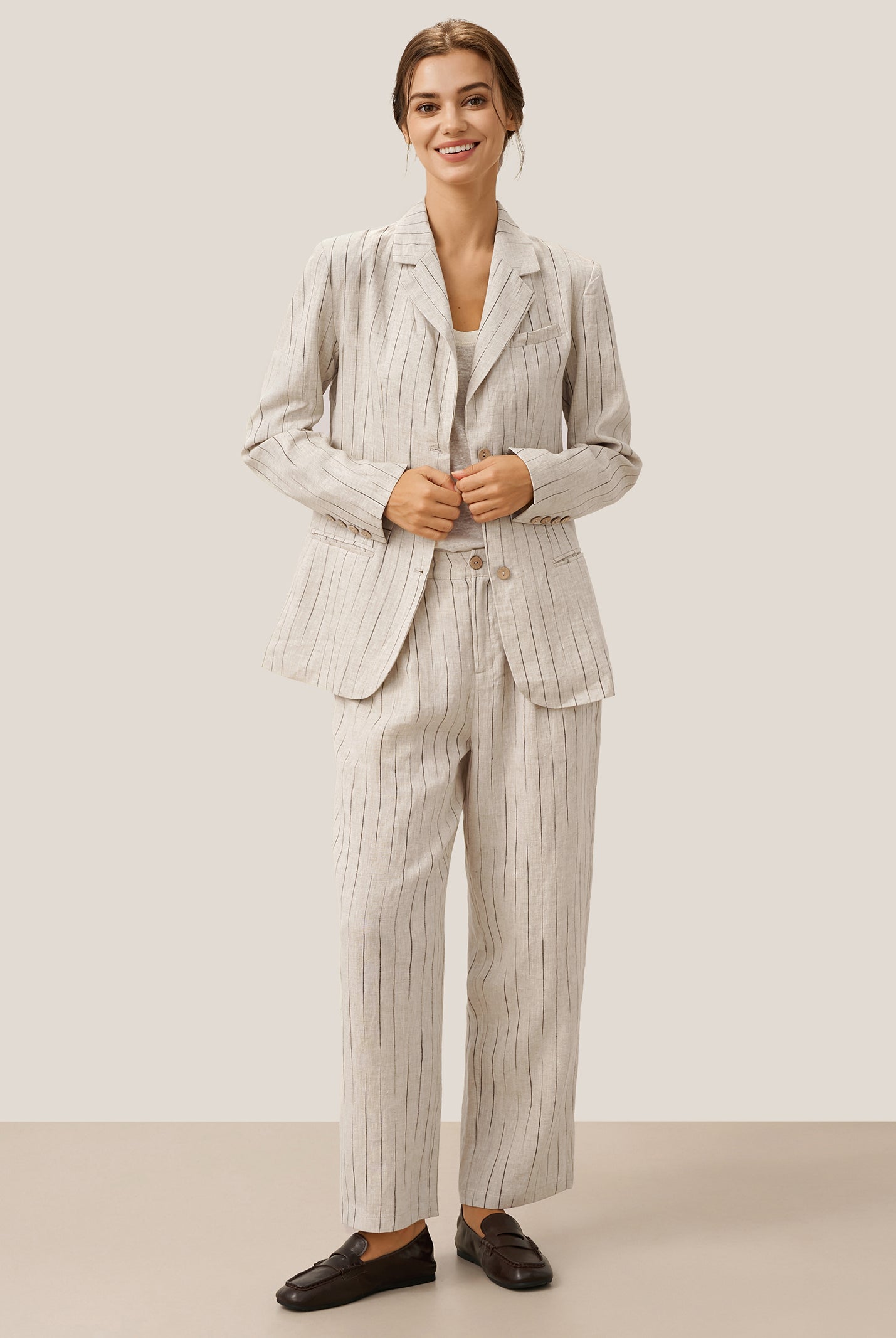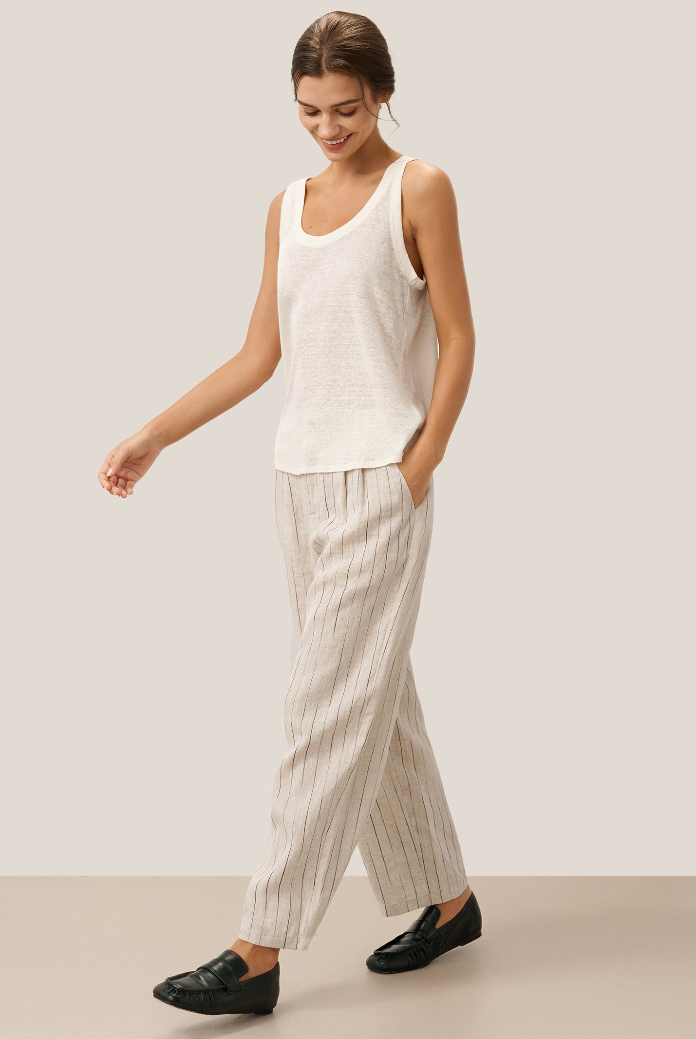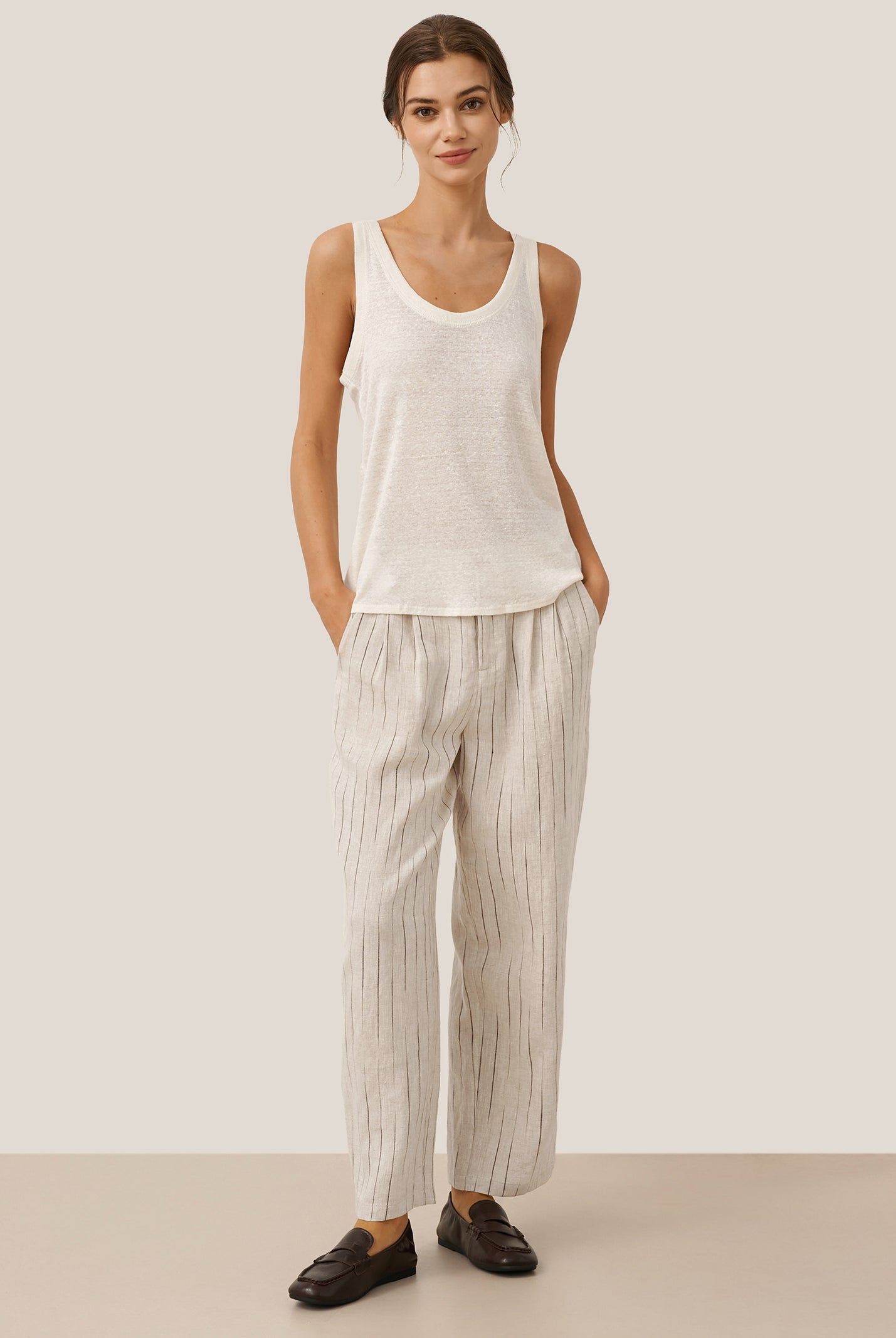 Linen Gingham Checked Round Soft-Fold Collar Top LAURA