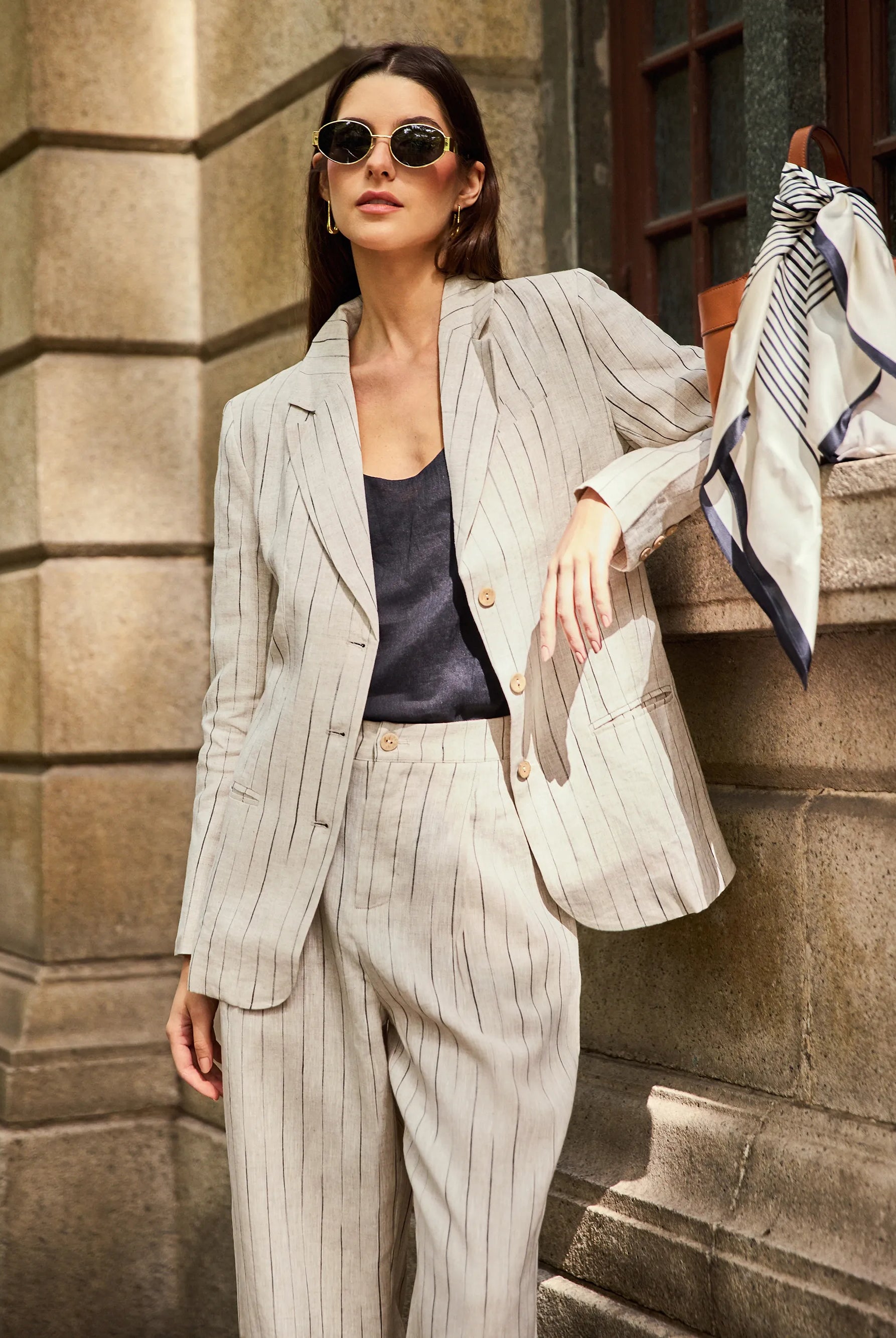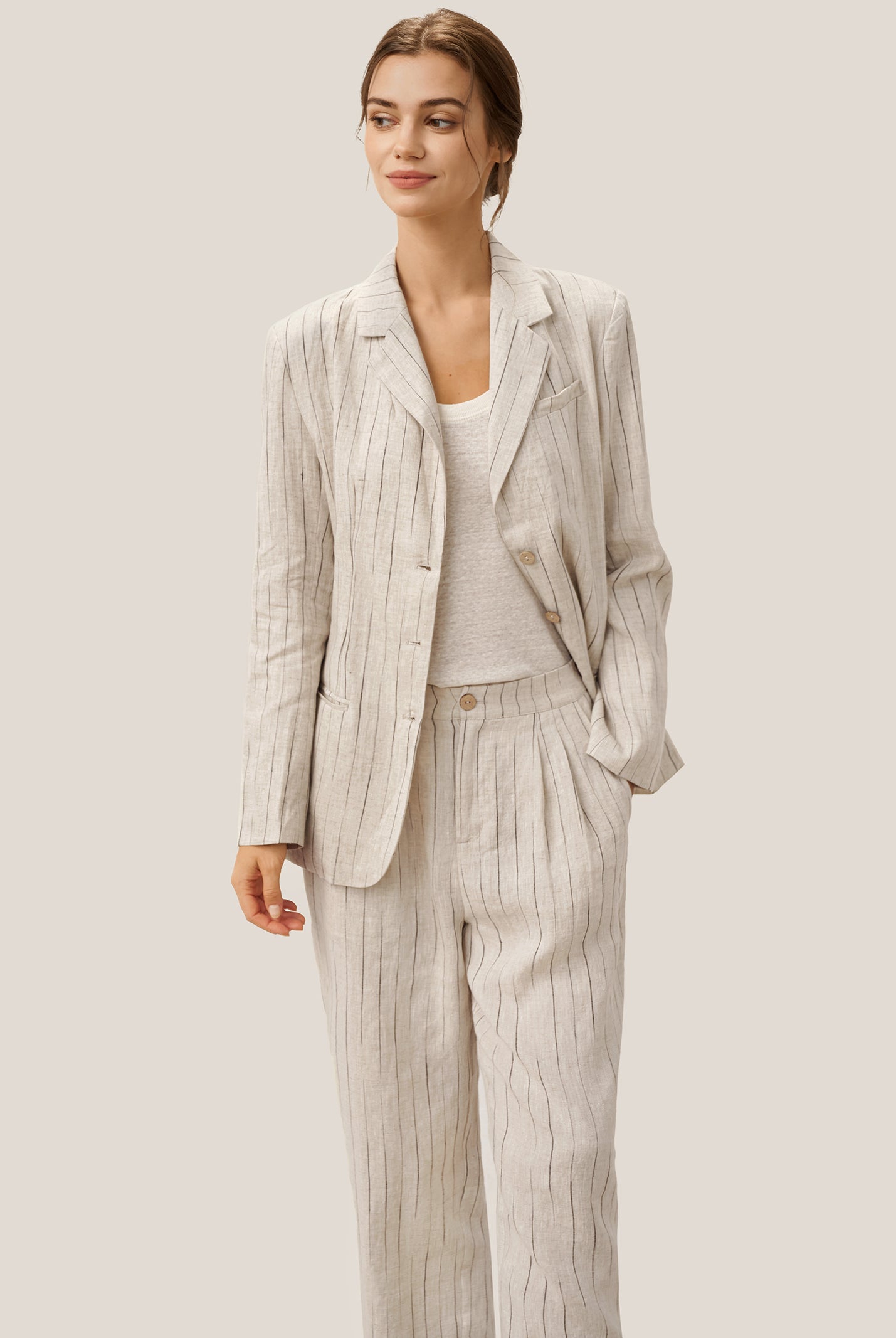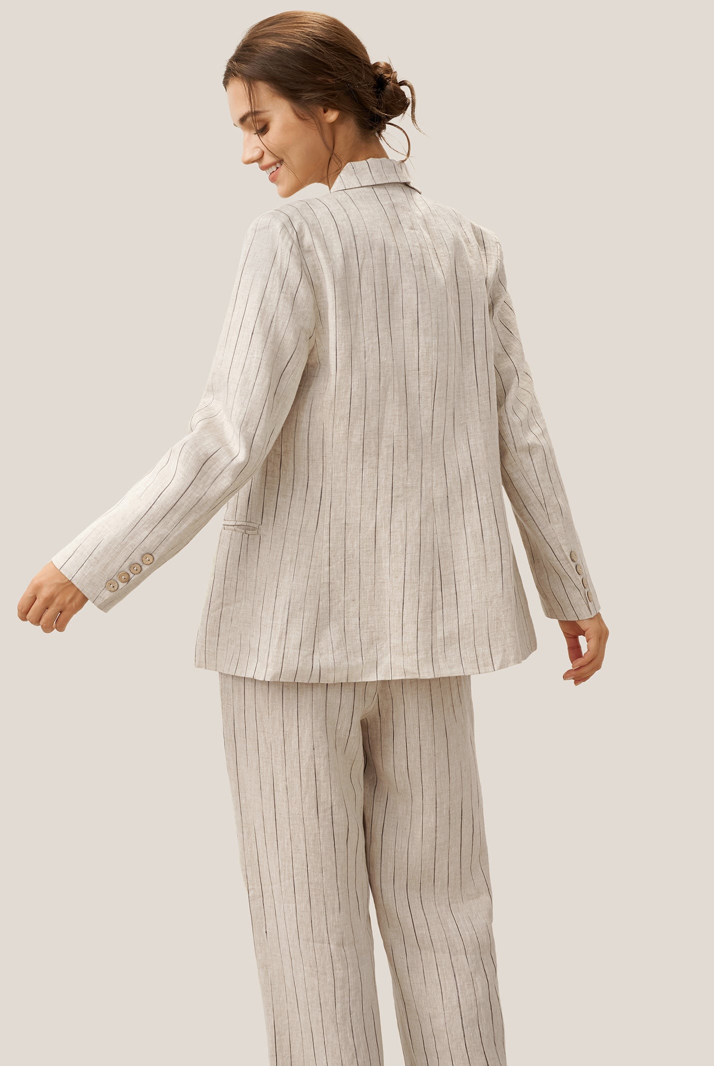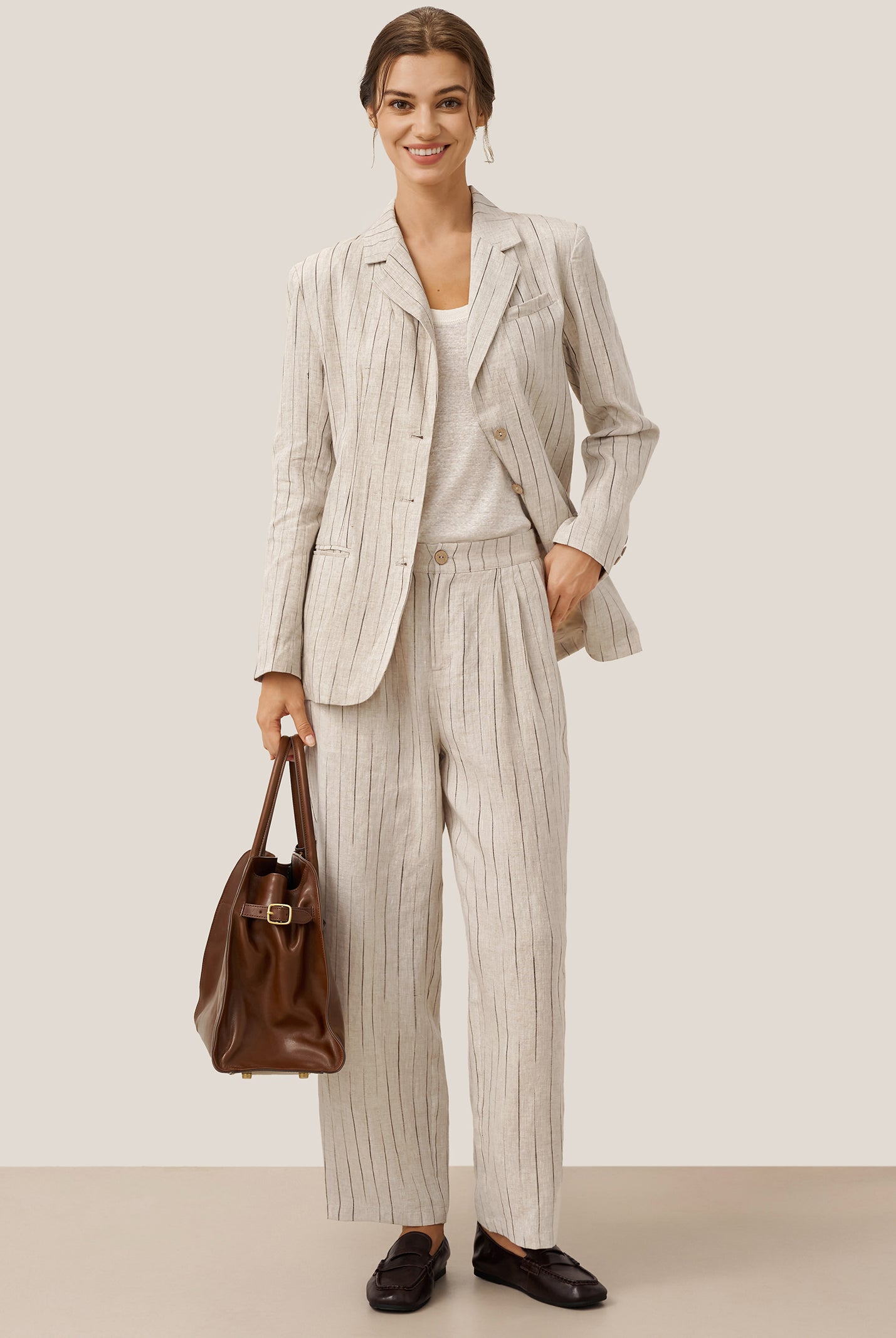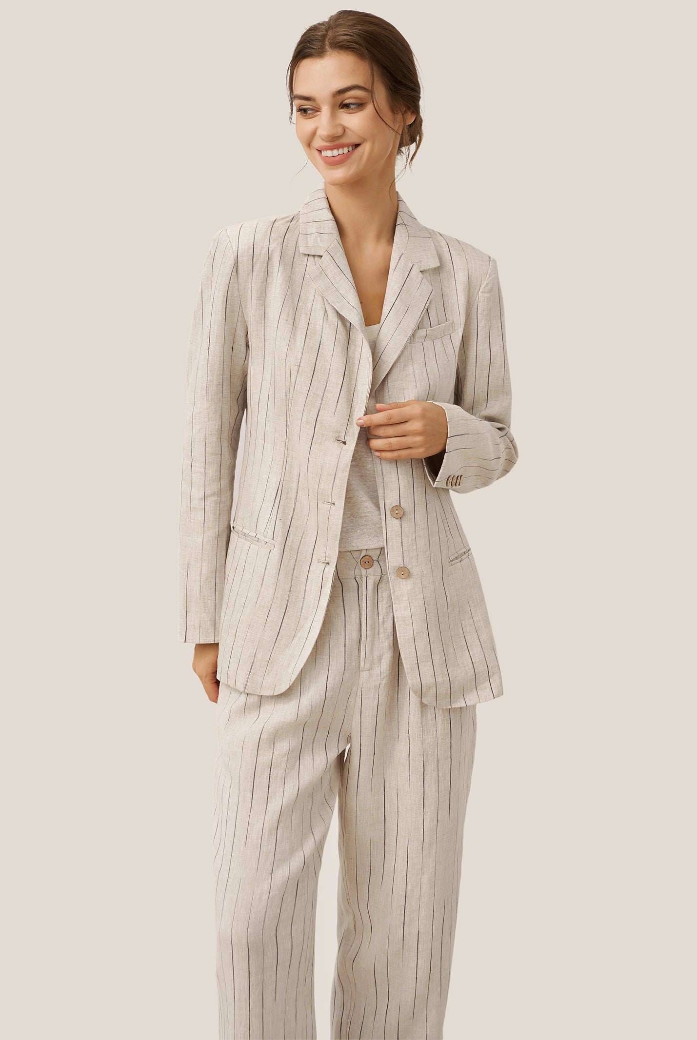 Linen Gingham Checked Round Soft-Fold Collar Top LAURA
