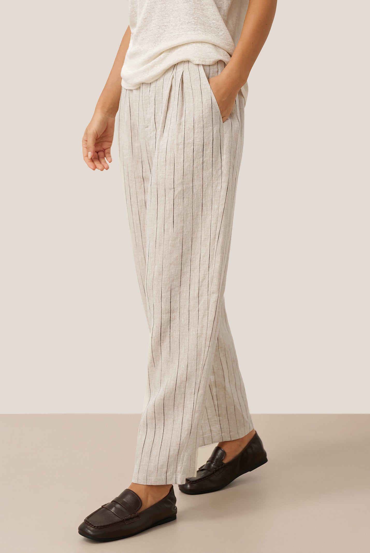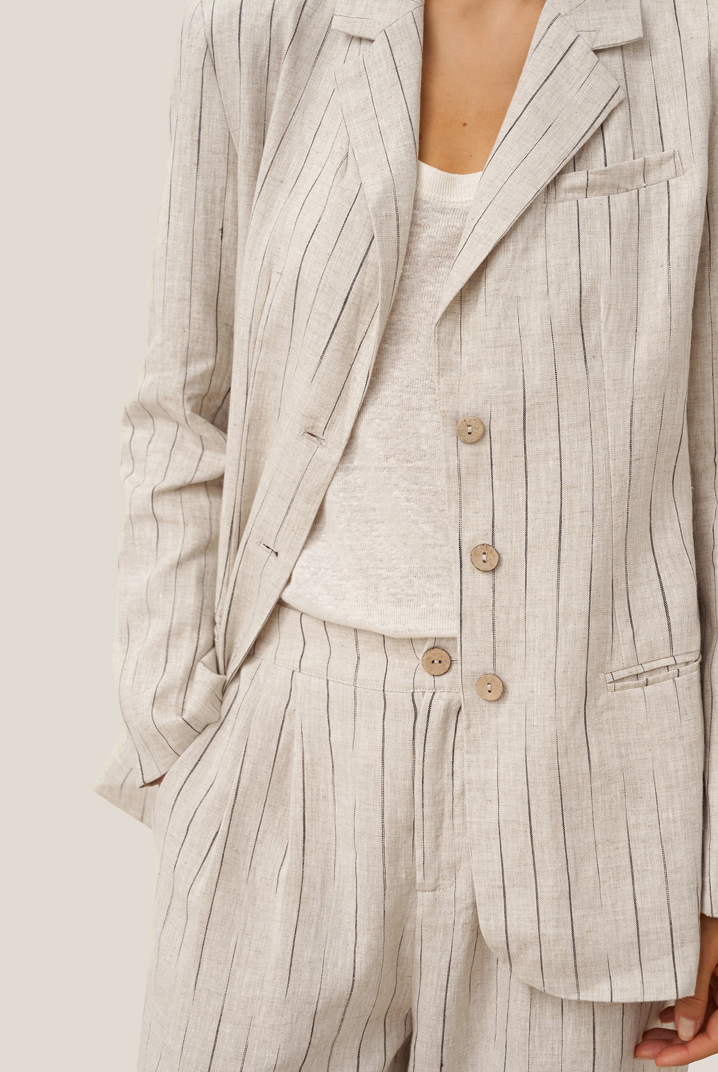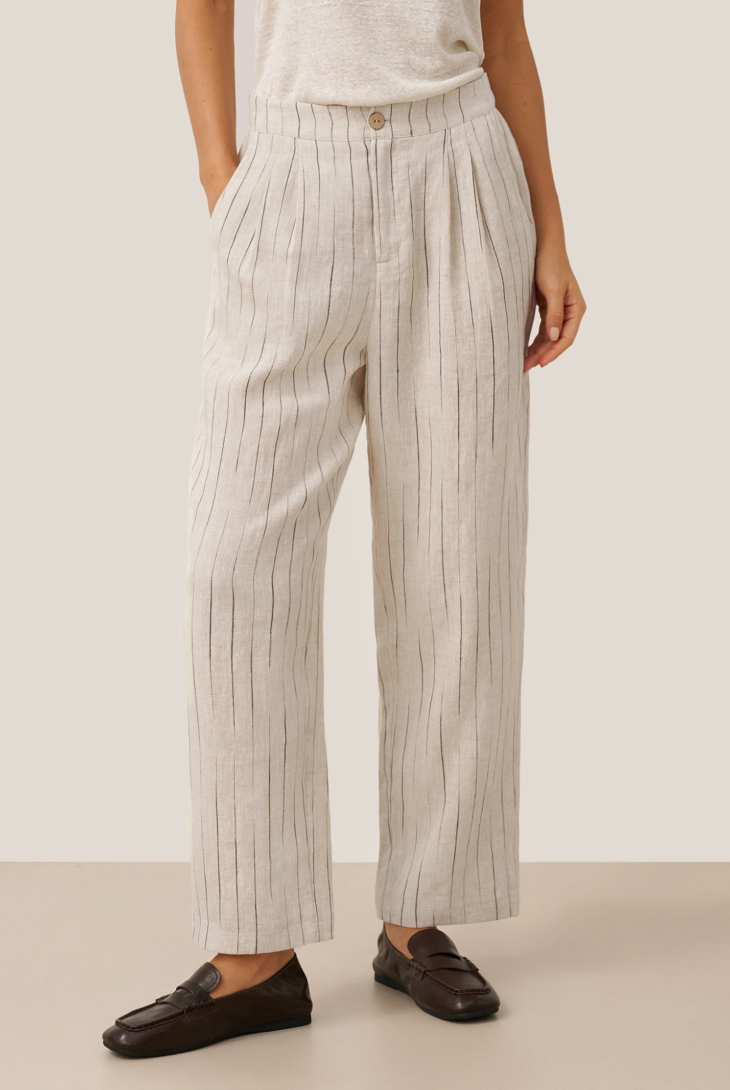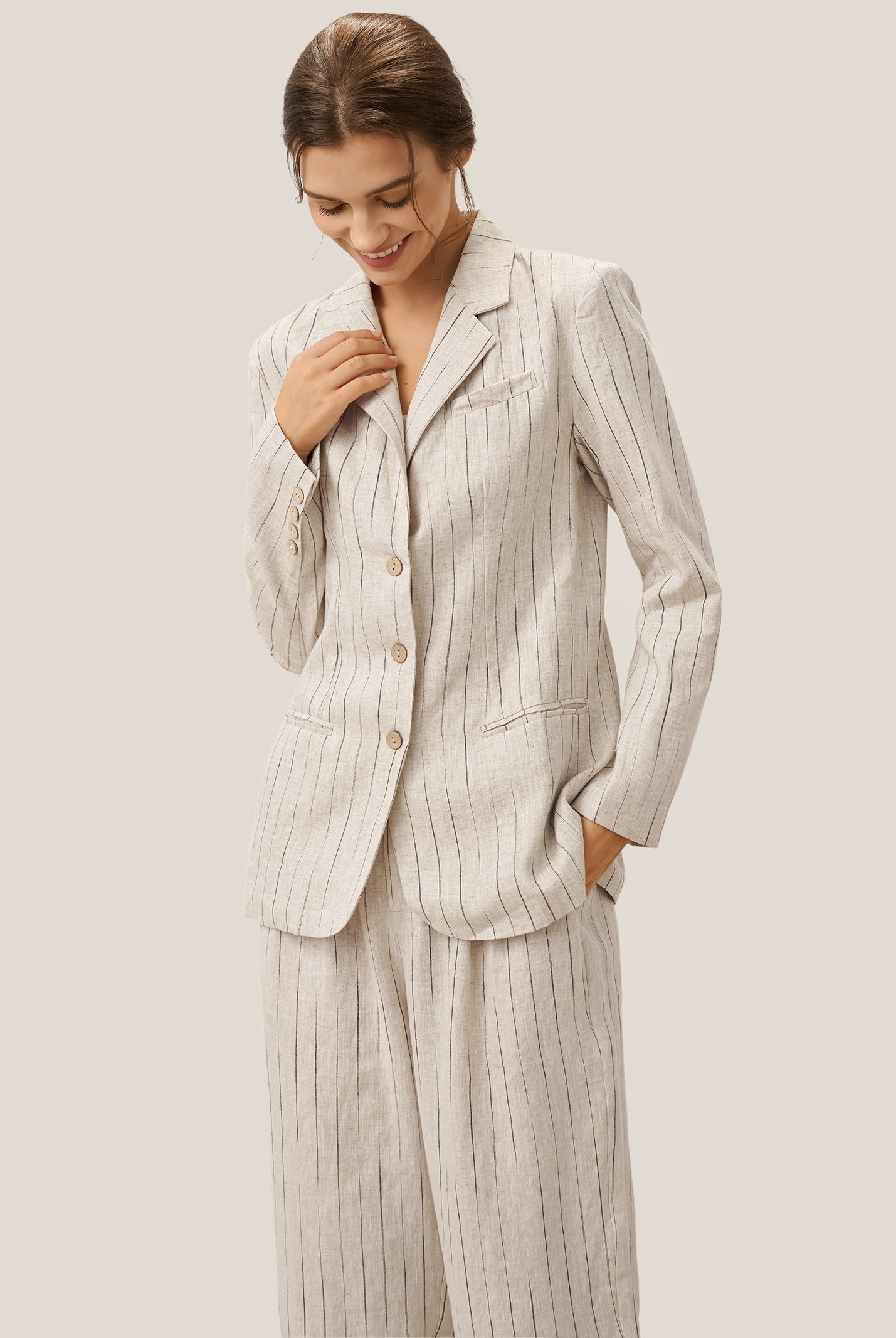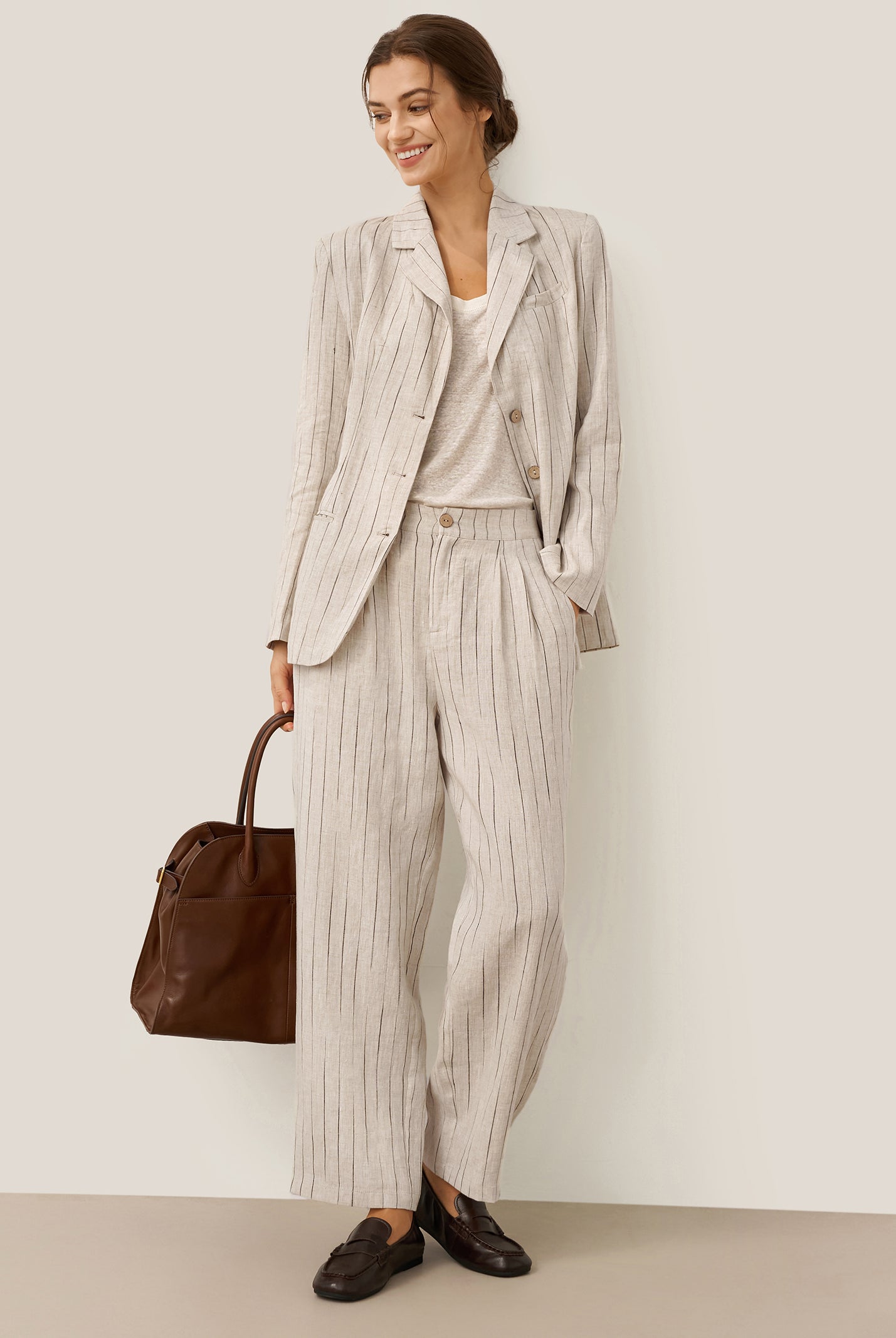 Linen Gingham Checked Round Soft-Fold Collar Top LAURA