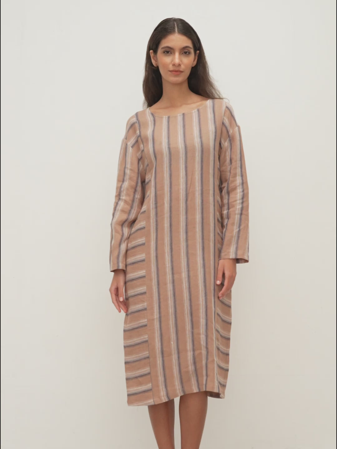 100% Linen Striped Crossweave Midi Dress ELSPETH