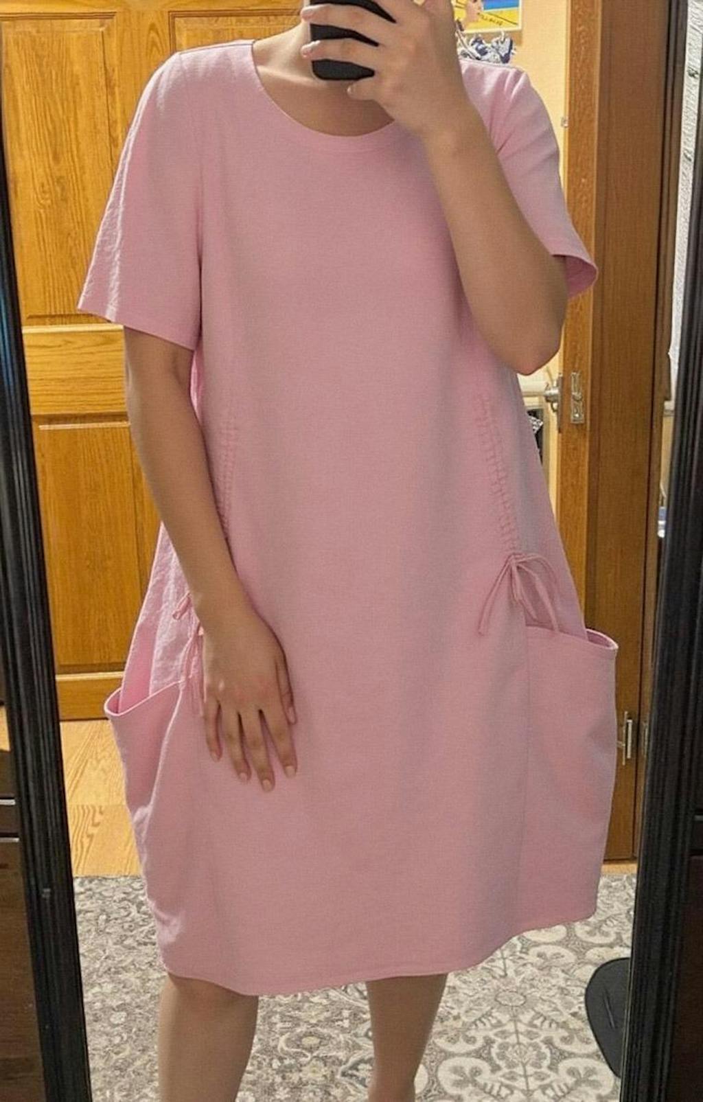 100% Linen Round Neck Patch Pocket Midi Dress XENA