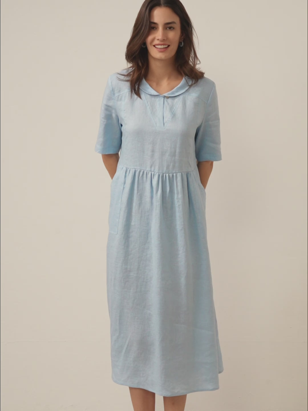 100% Linen Shawl V-Neck Pleated Maxi Dress SUSAN