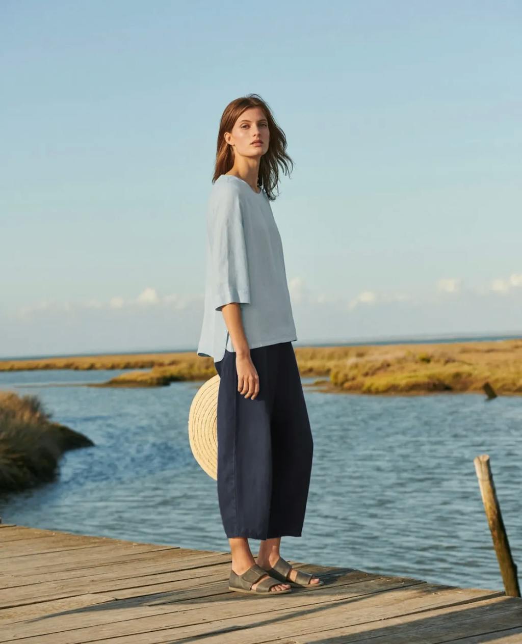 100% Linen Boatneck 3/4 Length Sleeve Top AURORA