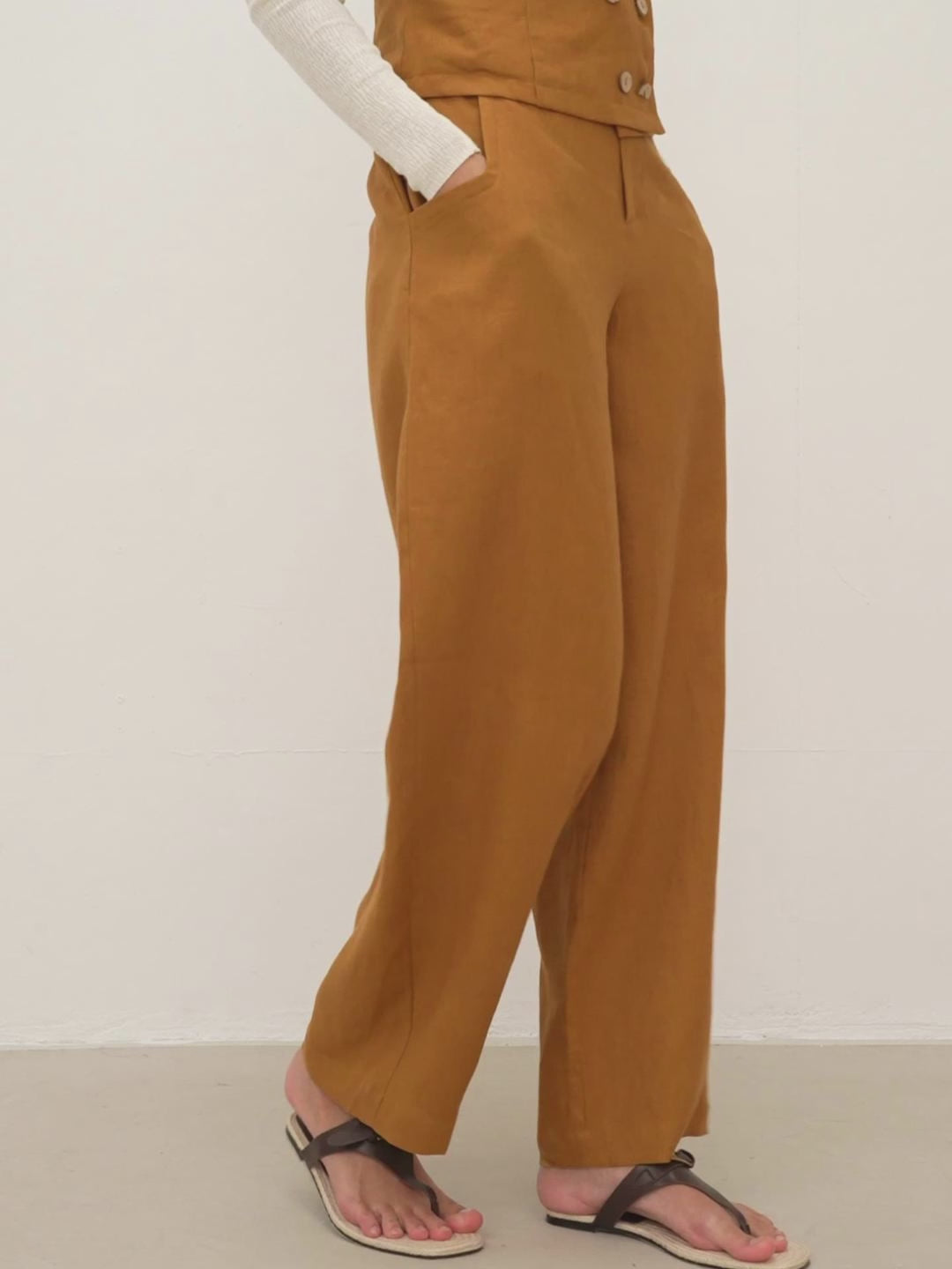 100% Linen Banana Cut Pants with Pockets EDELINE