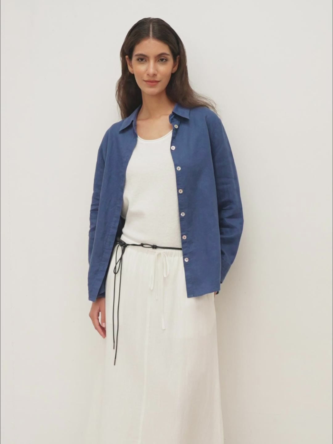 The Nautical Blue is stunning - rich but not too dark. Wore it to a beach wedding and got so many compliments! The natural shell buttons add such a classy touch. Sized up to L for a relaxed fit - perfect over a tank top or alone.