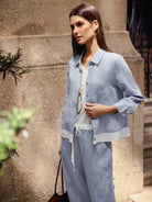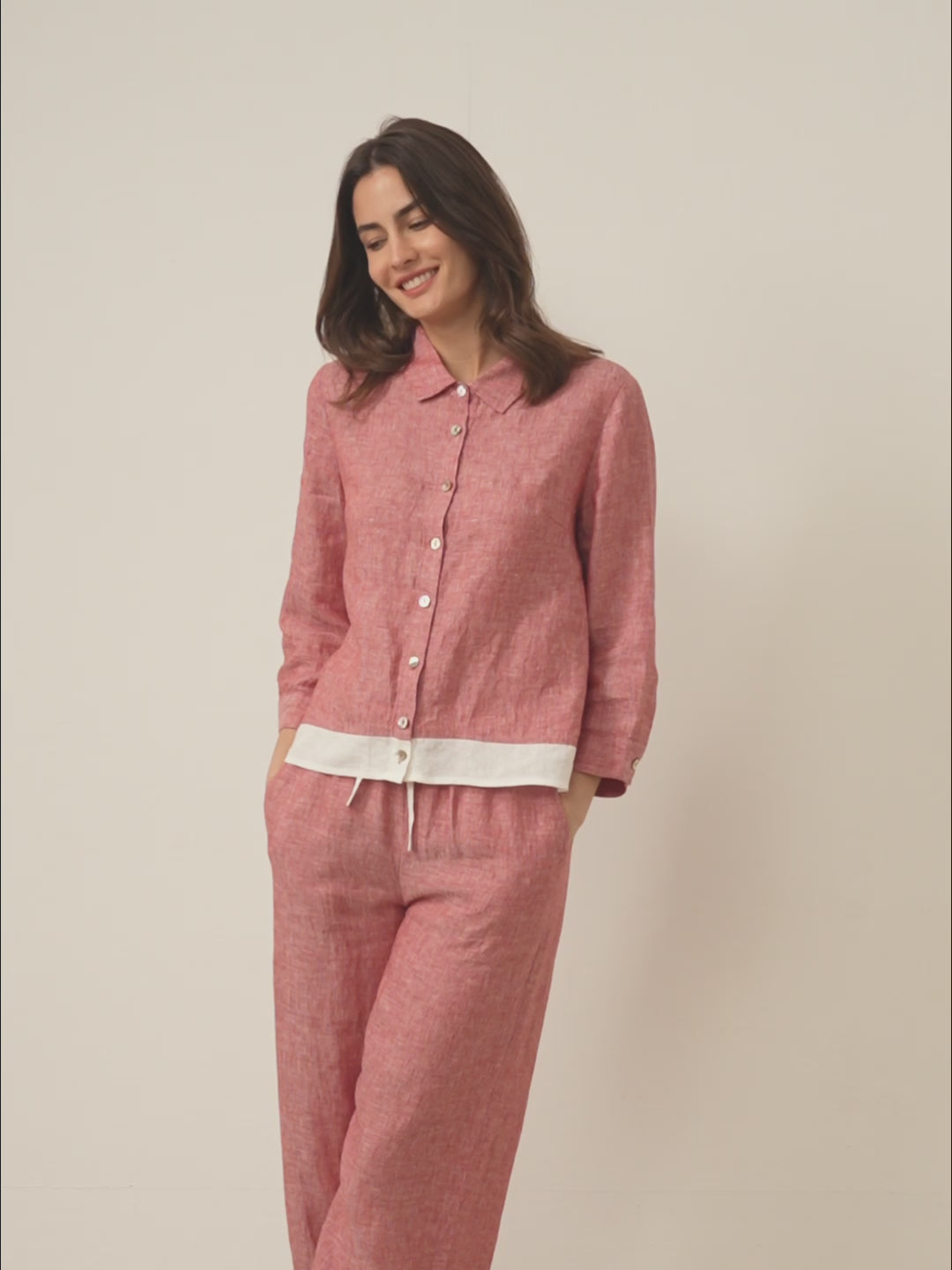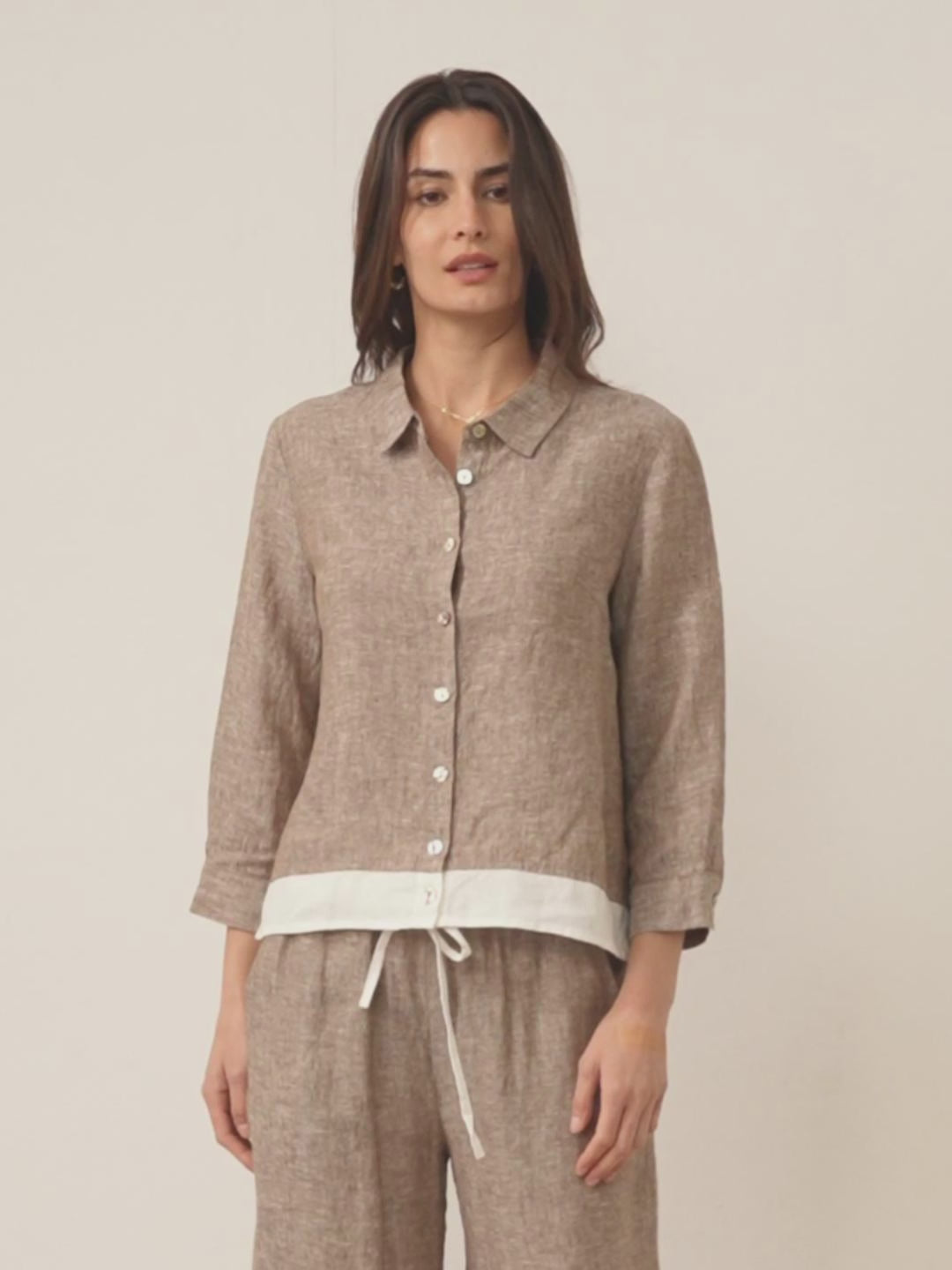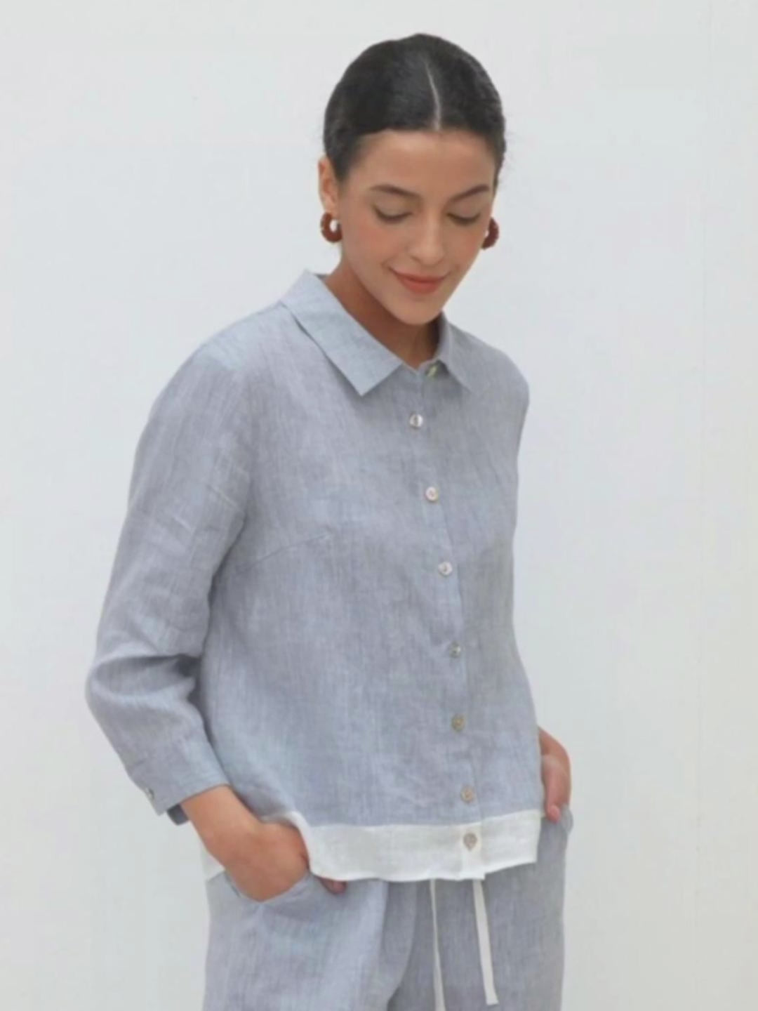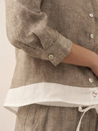 100% Linen Buttoned Closure Color-Blocked Shirt JANICE