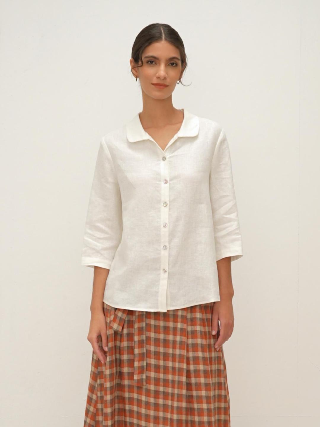 100% Linen Peter Pan Collar 3/4 Sleeve Shirt ASTRID