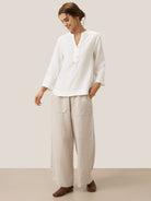 Made from pure flax, our linen lacks elasticity, resulting in natural wrinkles when worn or slept in. Embrace the 'lived-in luxe' aesthetic — a deliberate, carefree rumpled look that exudes quality. Our linen is garment-washed before it gets to you though, so you should experience minimal shrinkage.