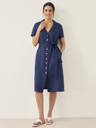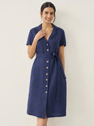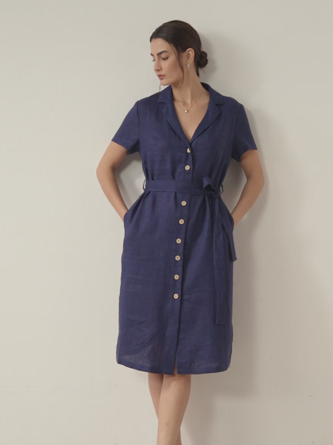 100% Linen V-Neck Button-Front Shirt Dress EILEEN
