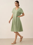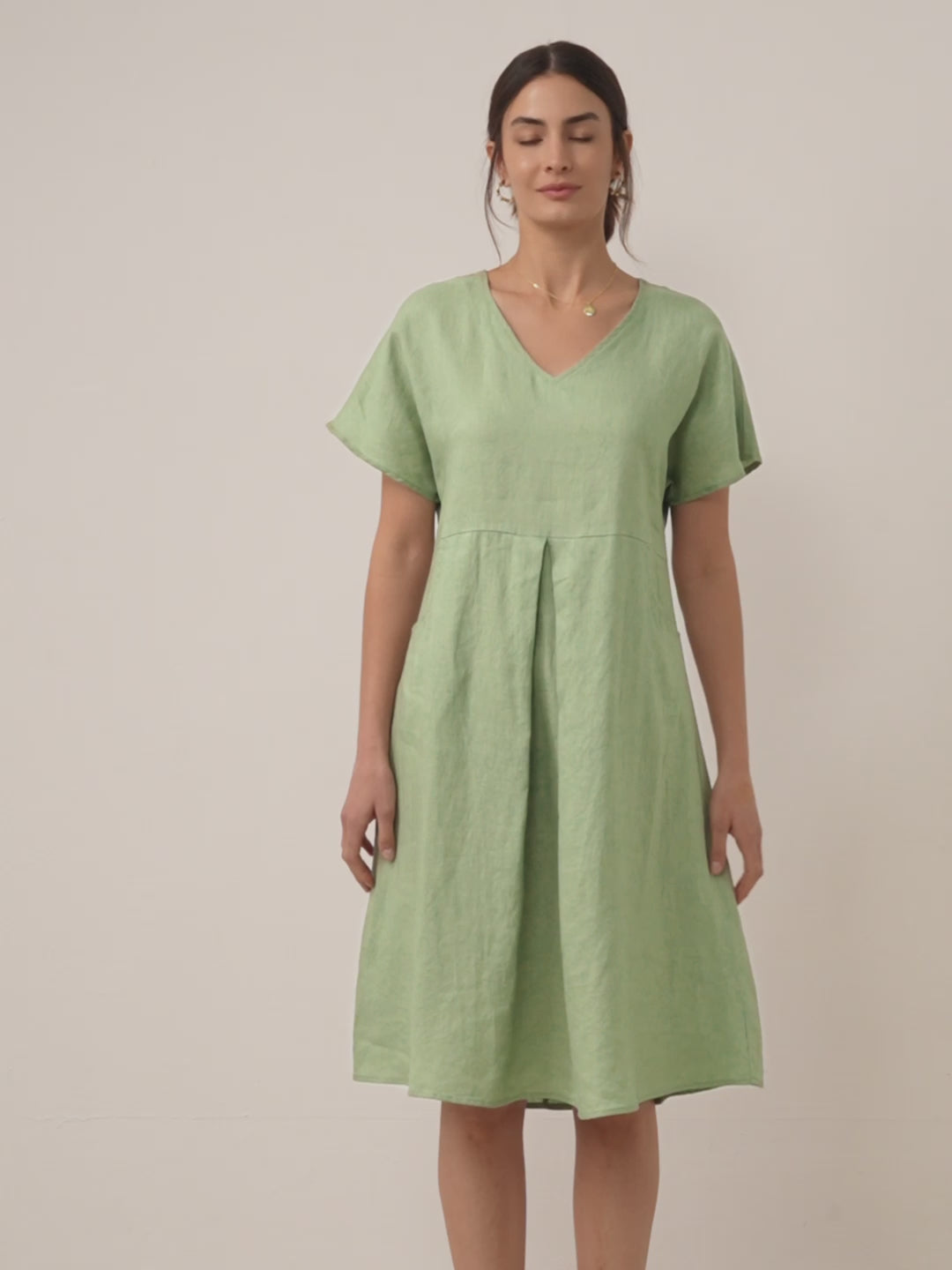 100% Linen V-Neck Pockets Swing Dress AINSLEY