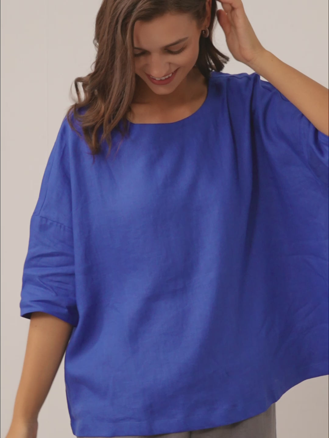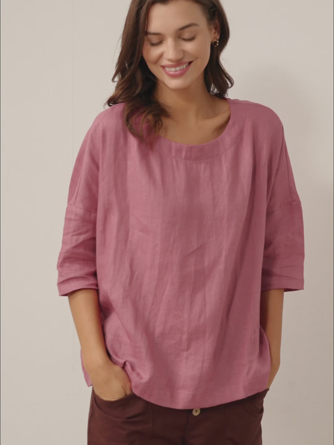 100% Linen Boatneck 3/4 Length Sleeve Top AURORA