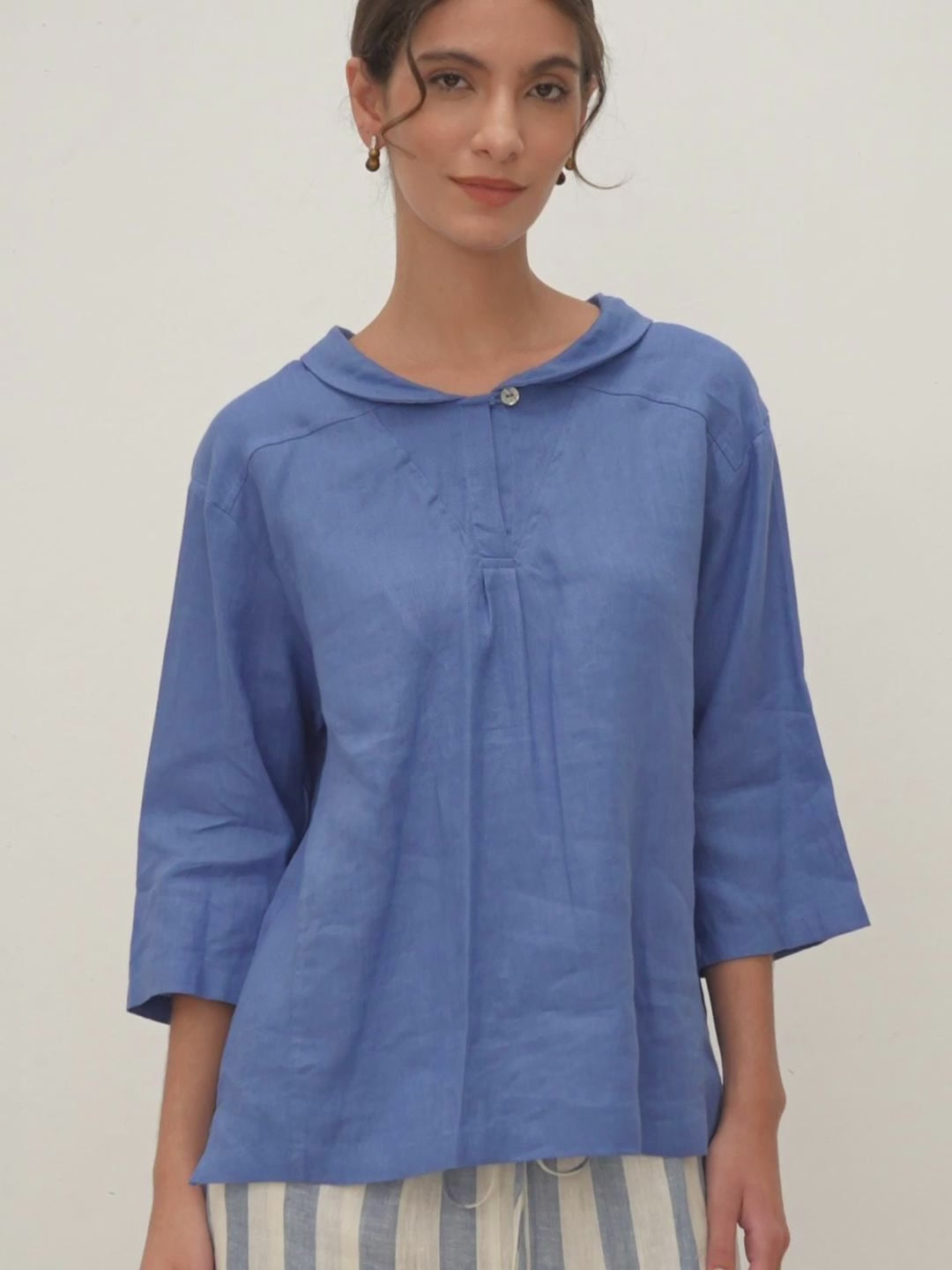 100% Linen Shawl V-Neck Half Sleeve Top JADE