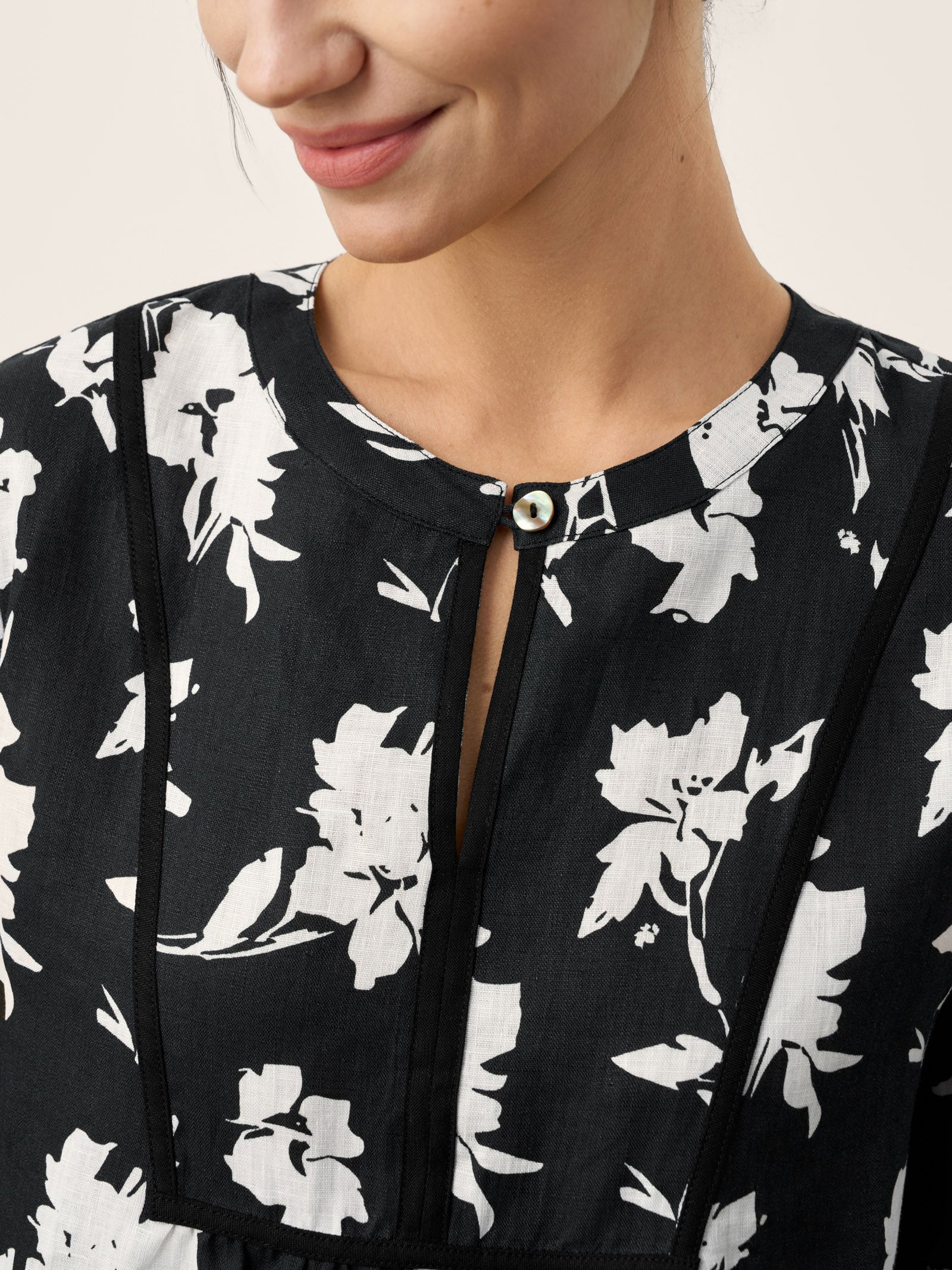 - Natural Shell Button Accent: A single natural shell button at the front neckline adds a subtle sheen and refined texture, bringing a quiet touch of understated luxury.