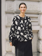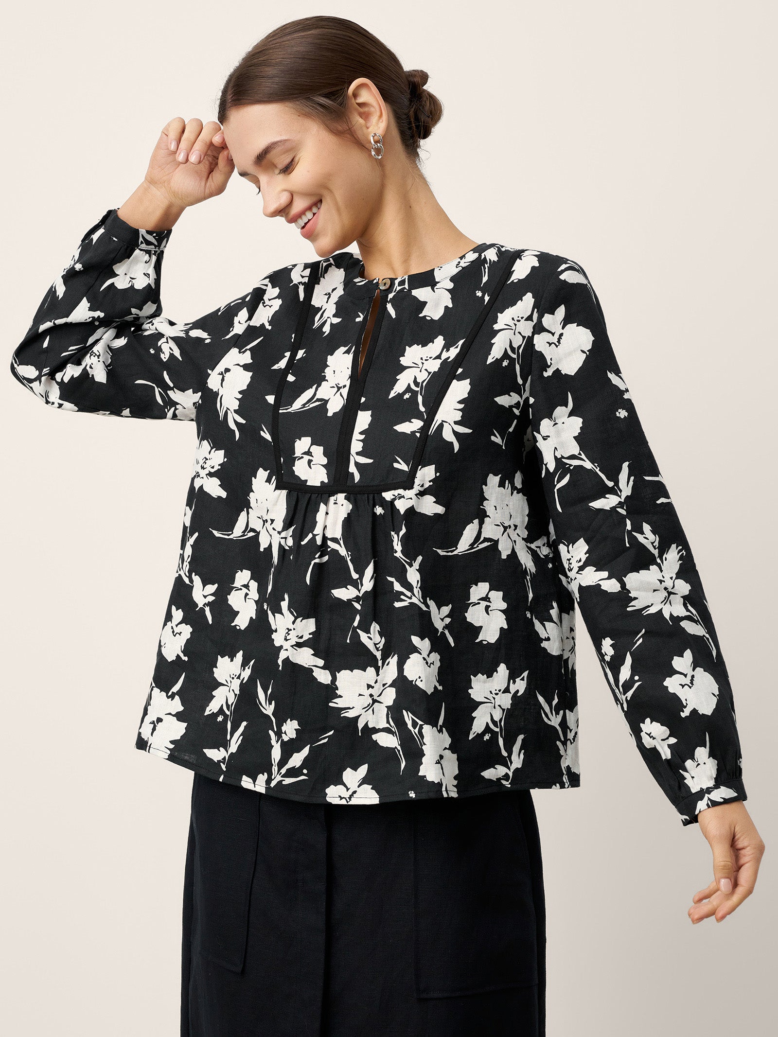 100% Linen Floral Printed Gathered Pullover Top AMIYA
