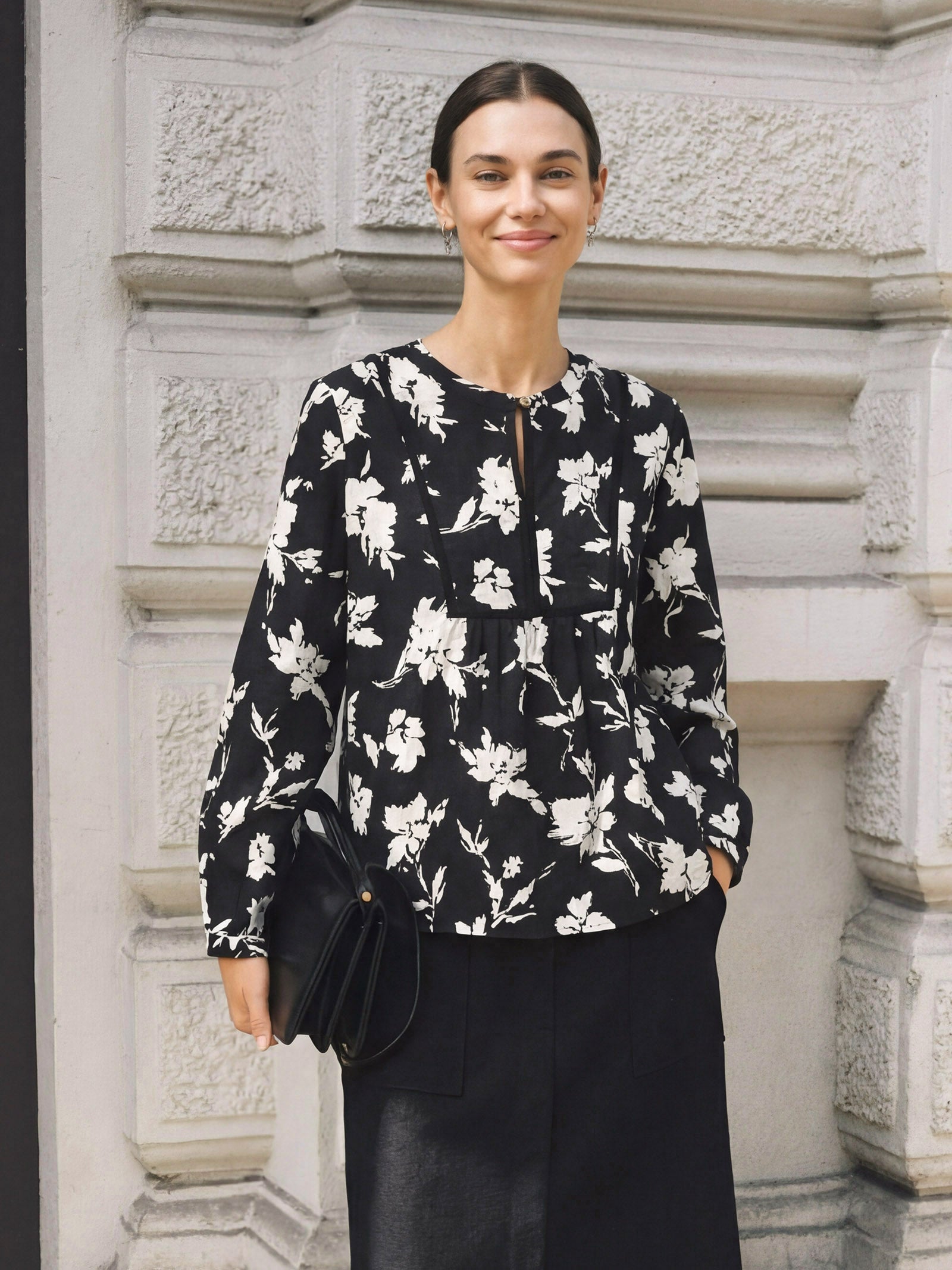 - Pleated Cuffs with Slit Detail: Gentle gathers at the cuffs create an elegant sleeve shape, paired with a small slit for ease of movement, breathability, and added dimension.