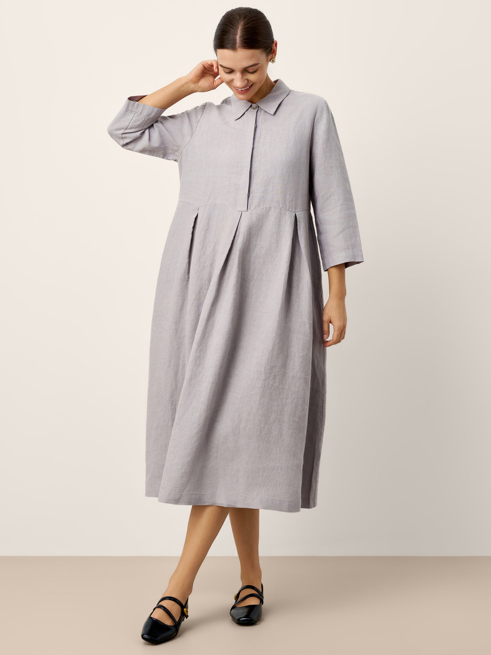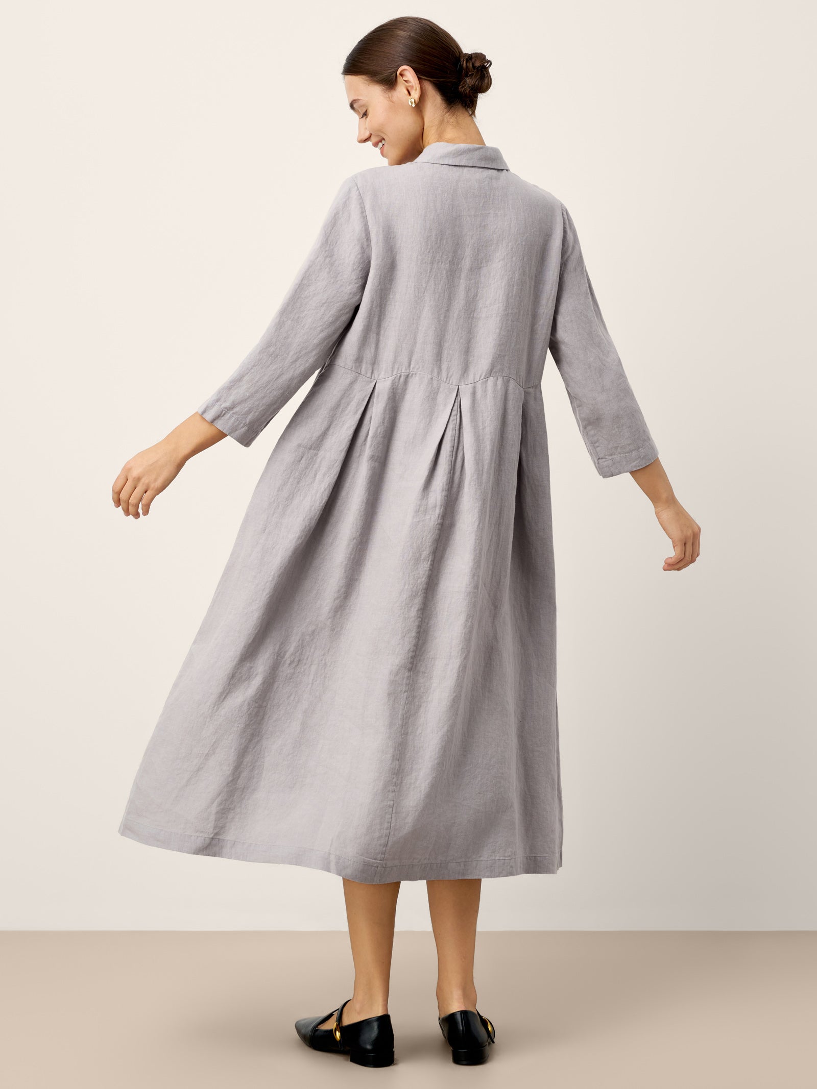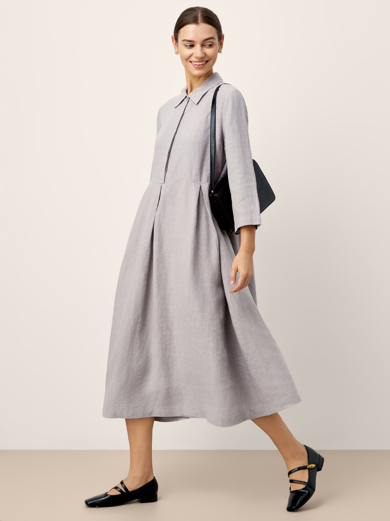 100% Linen Inverted Pleat Curved Seam Maxi Dress VALERIE
