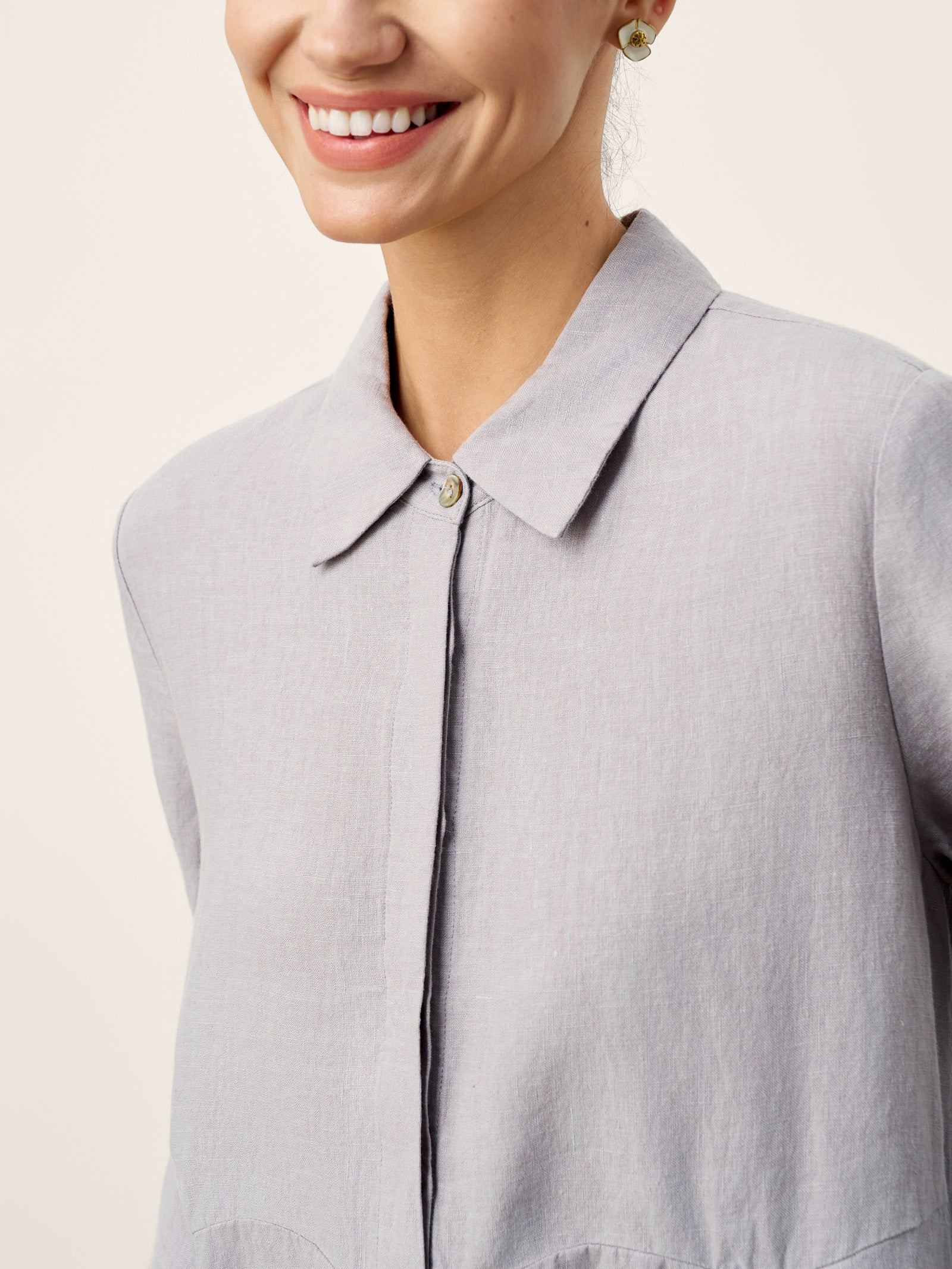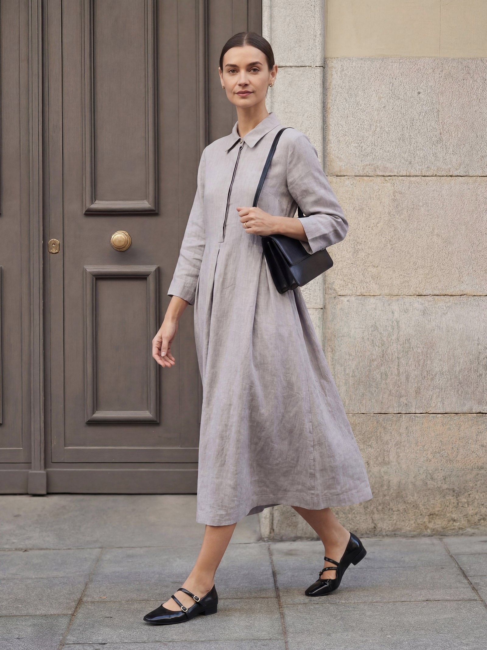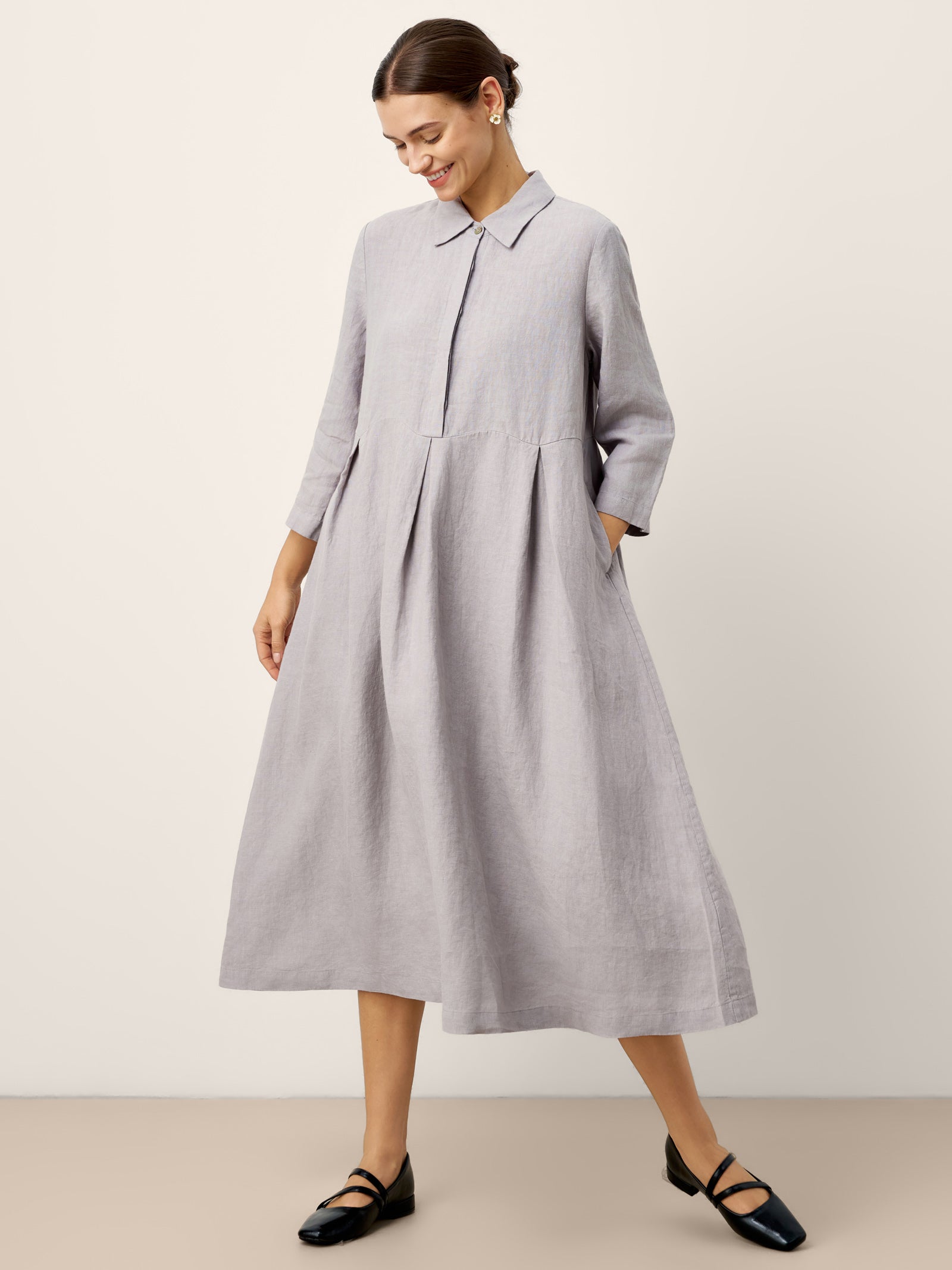 100% Linen Inverted Pleat Curved Seam Maxi Dress VALERIE